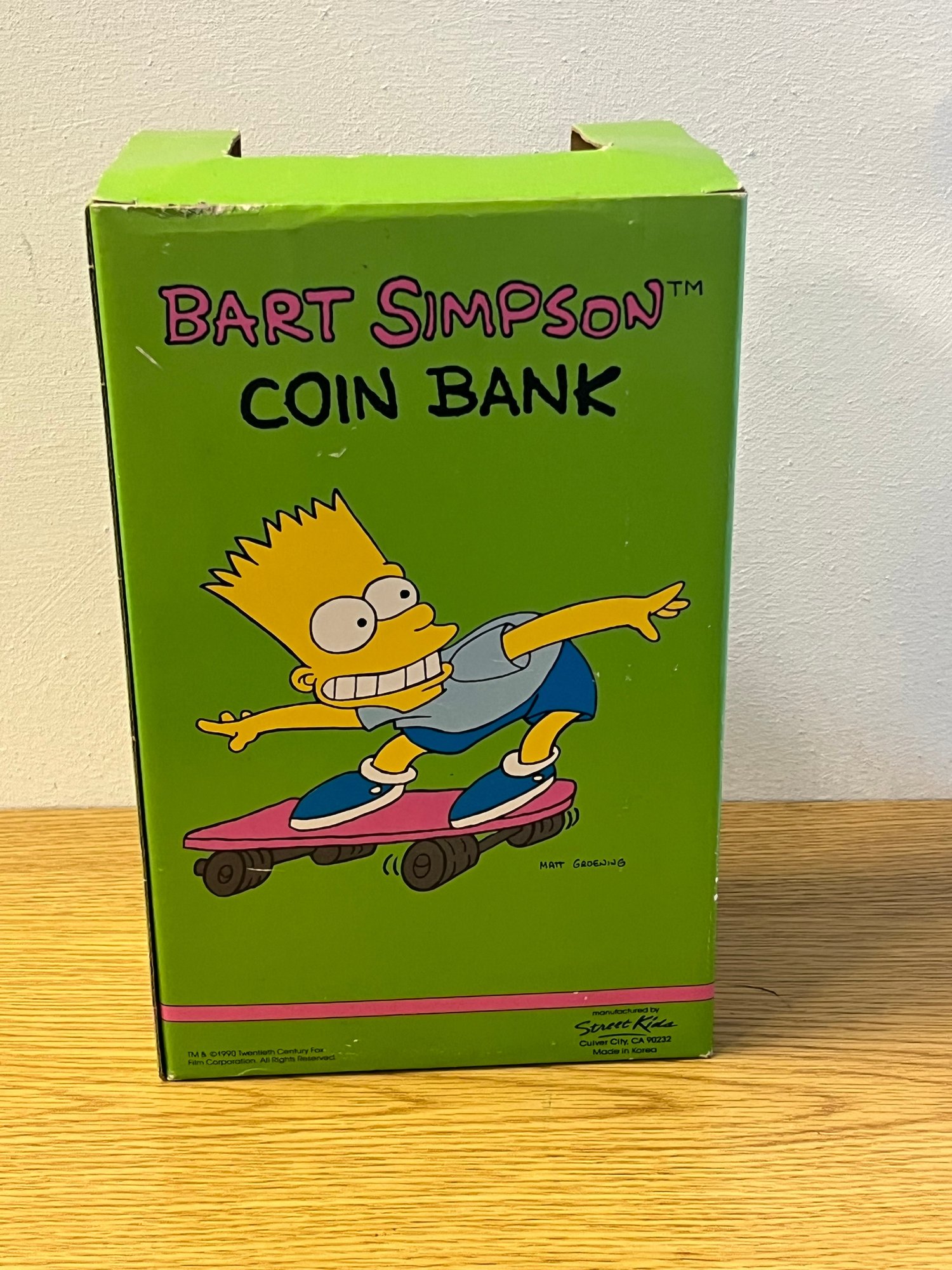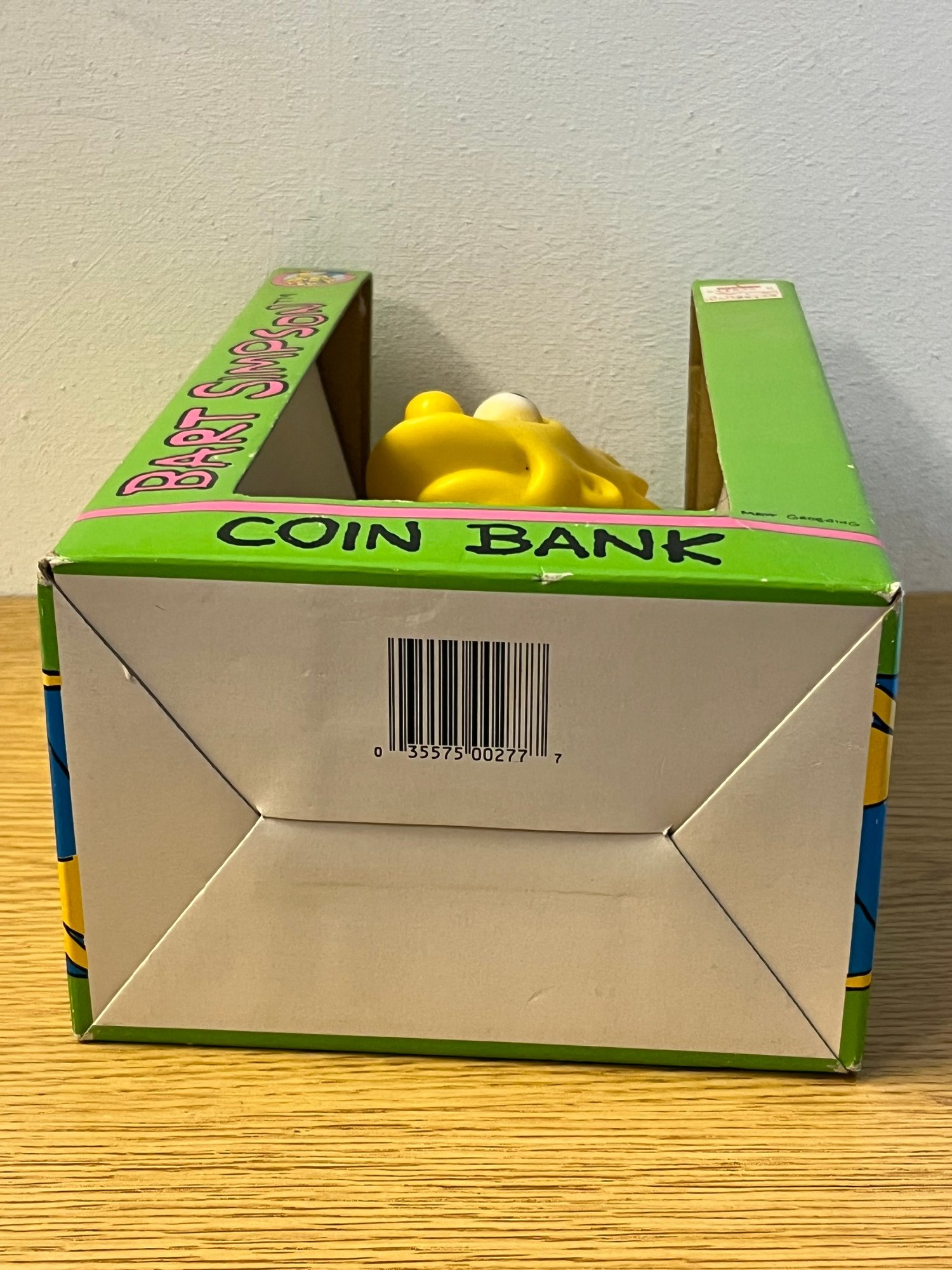 The early 1990s represented peak Simpsons cultural saturation, and licensed merchandise from that inaugural wave commands genuine market attention today. A coin bank in unused condition from that first explosive year of Simpsons merchandise is not something you encounter casually — this is the kind of piece that surfaces once and disappears into a serious collection.