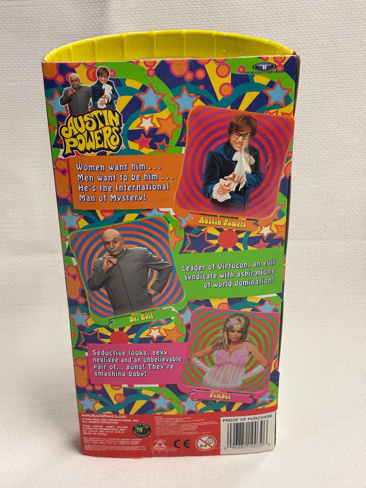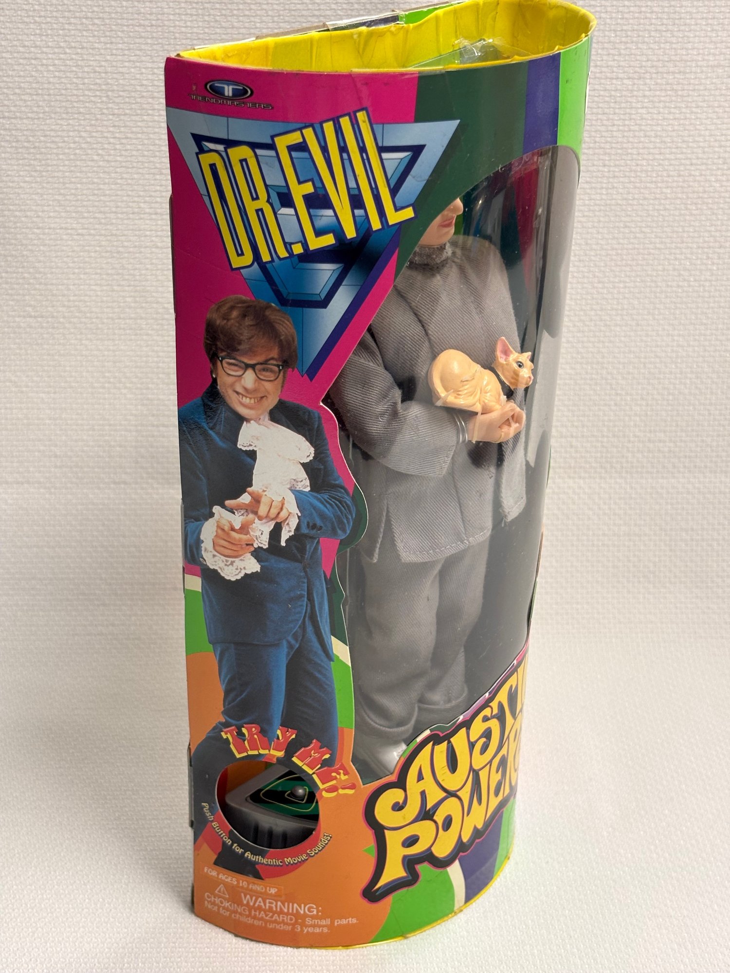 Calling all pop culture collectors and Austin Powers fans! This pristine 1998 Dr. Evil talking doll is your ticket to comedic memorabilia gold. Straight from the height of late 90s movie merchandise, this sealed collectible captures the iconic character in all his miniature, villainous glory. This isn't just a toy – it's a time capsule of comedy history! The doll remains in its original packaging, preserving the pristine condition that serious collectors dream about. Every detail screams authenticity, from the crisp packaging to the potential electronic talking feature that made Dr. Evil's merchandise so memorable.