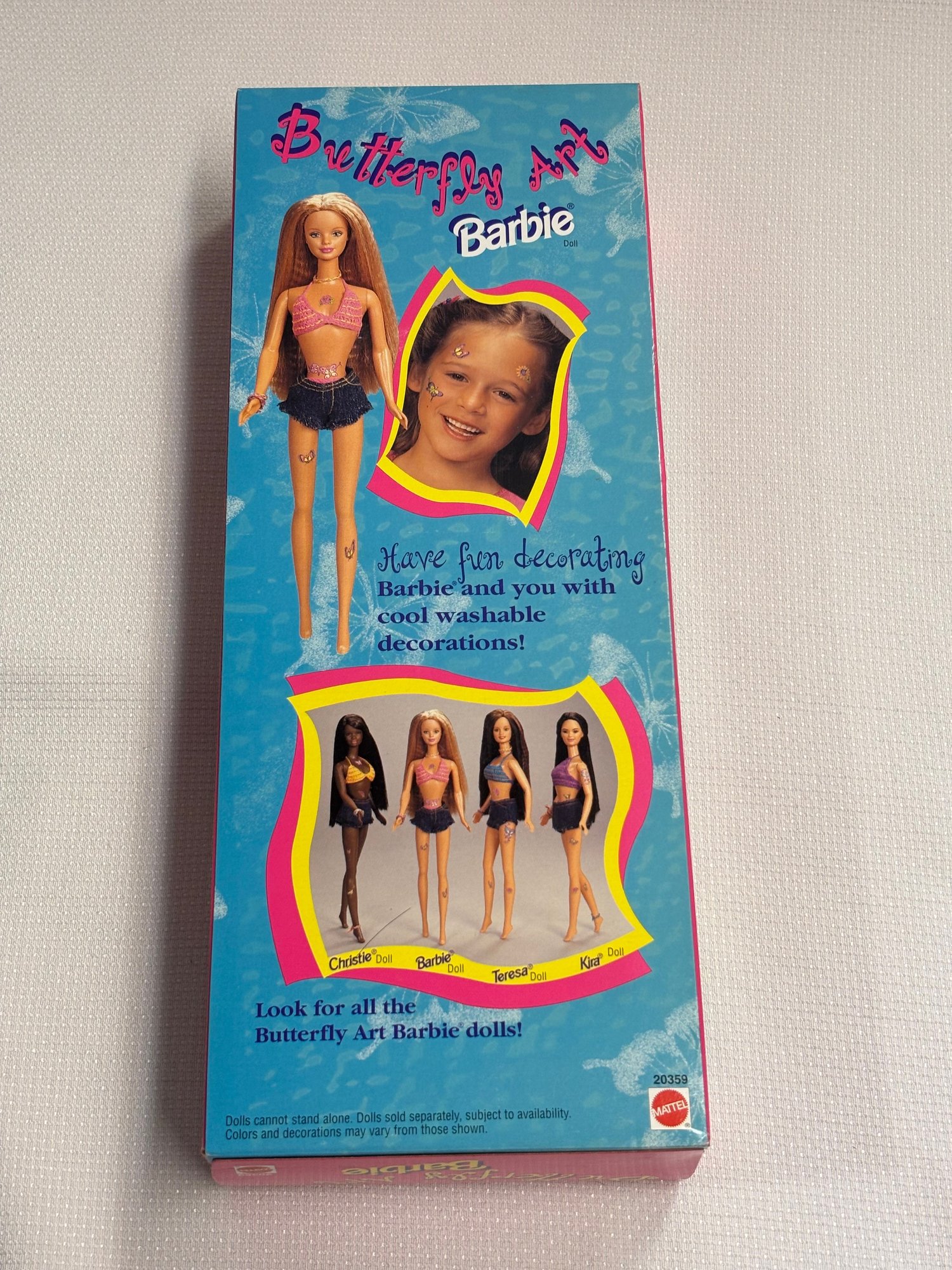 Calling all Barbie collectors and vintage doll enthusiasts! This pristine 1998 Butterfly Art Barbie represents a stunning moment in Mattel's artistic collectible series, perfectly preserved and waiting to become the crown jewel of your collection. This exquisite Barbie captures the delicate elegance of butterfly-inspired design, showcasing Mattel's commitment to creating wearable art through their iconic doll line. The pristine, unopened packaging ensures this piece maintains its maximum collectible value, making it a must-have for serious Barbie enthusiasts and vintage toy collectors. Rare collectibles like this 1998 Butterfly Art Barbie represent more than just a doll - they're a snapshot of late 90s design aesthetic and Barbie's evolving artistic expression. Whether you're a dedicated collector or looking to add a unique piece to your display, this Barbie promises to be a conversation starter.