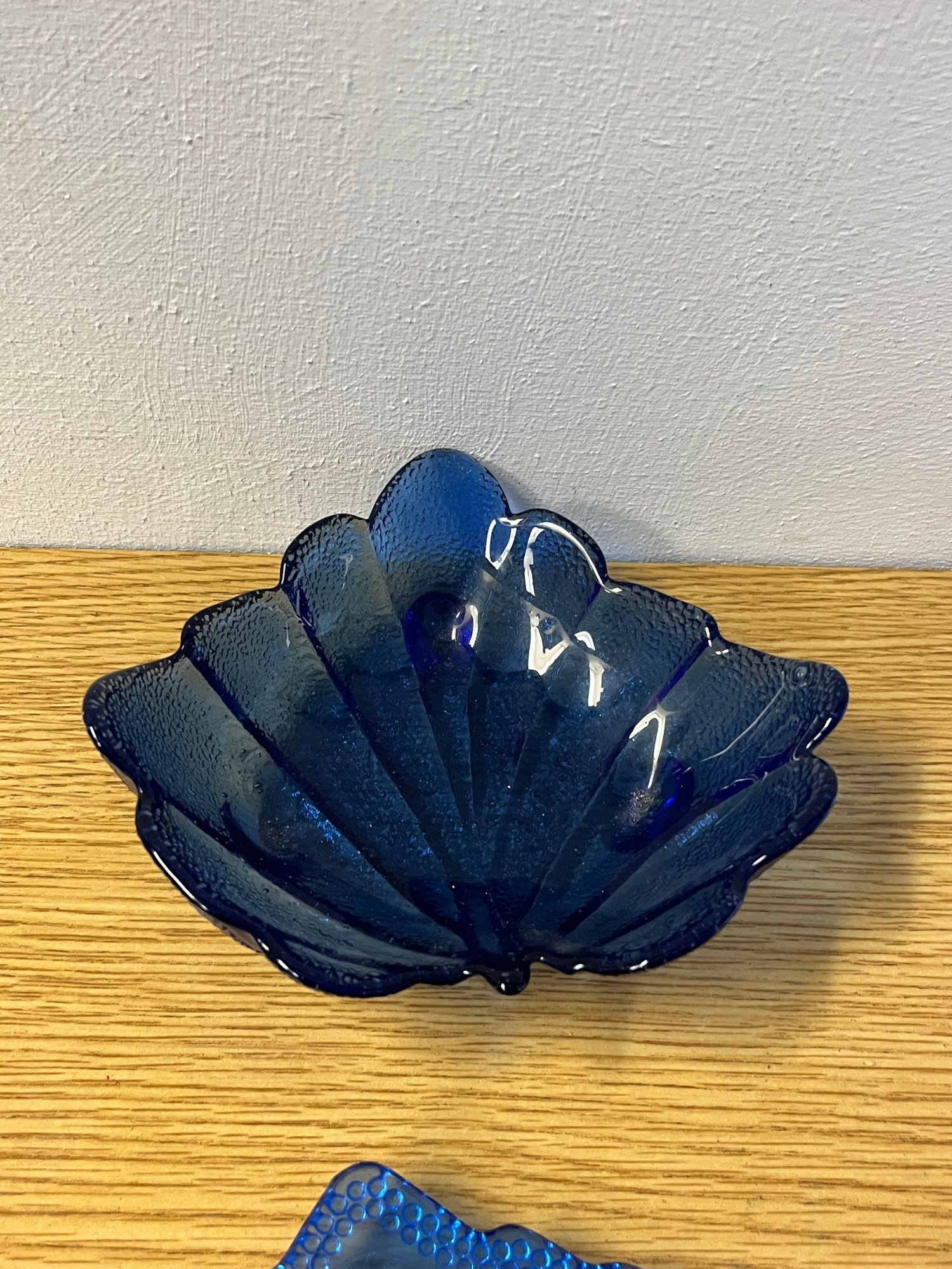 Nature's elegance captured in glass — this enchanting pair of blue glass leaf plates brings organic artistry to any tabletop or display. Each plate is sculpted in the graceful form of a leaf, its surface catching light with that luminous, cool-toned depth that only quality art glass can achieve. The rich blue hue shifts beautifully depending on the light source, ranging from serene sky tones to deeper, more mysterious cobalt depths.
