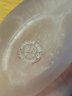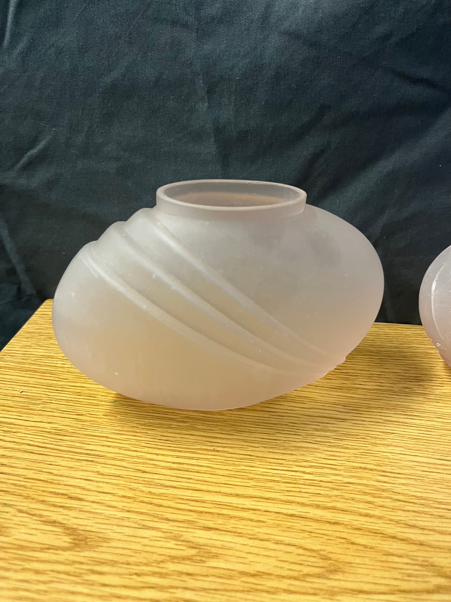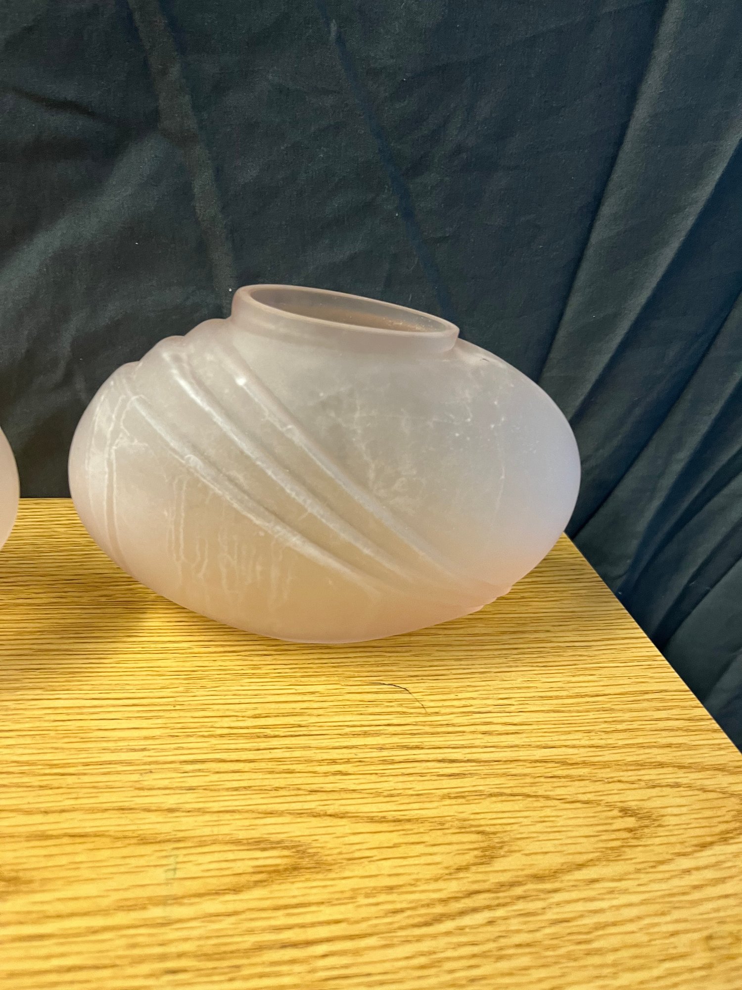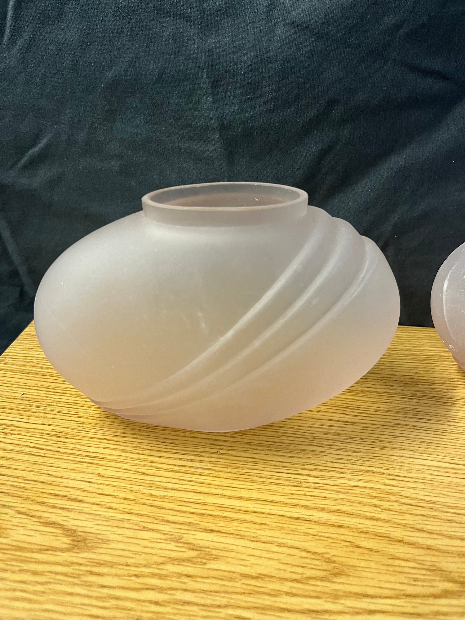 Offered here is a charming pair of small frosted pink flower bowls — delicate vessels that carry the quiet elegance of a bygone era of domestic refinement. Each bowl presents a soft, diffused blush tone achieved through the frosting process, lending the glass a luminous, almost ethereal quality that catches light with understated grace. The floral motif speaks to a tradition of decorative glassware crafted not merely for function, but for the pleasure of the eye. Whether displayed as a coordinated pair on a mantle, sideboard, or vanity, or repurposed as charming catchalls for jewelry and keepsakes, these bowls possess an effortless versatility that collectors and decorators alike will appreciate. Their modest scale makes them ideal accent pieces — easy to style, impossible to overlook. Pairs in matched condition are increasingly difficult to source, and the soft pink palette ensures they complement a wide range of interior aesthetics, from cottage and vintage to modern maximalist. A sweet, collectible find worthy of any curated home.
