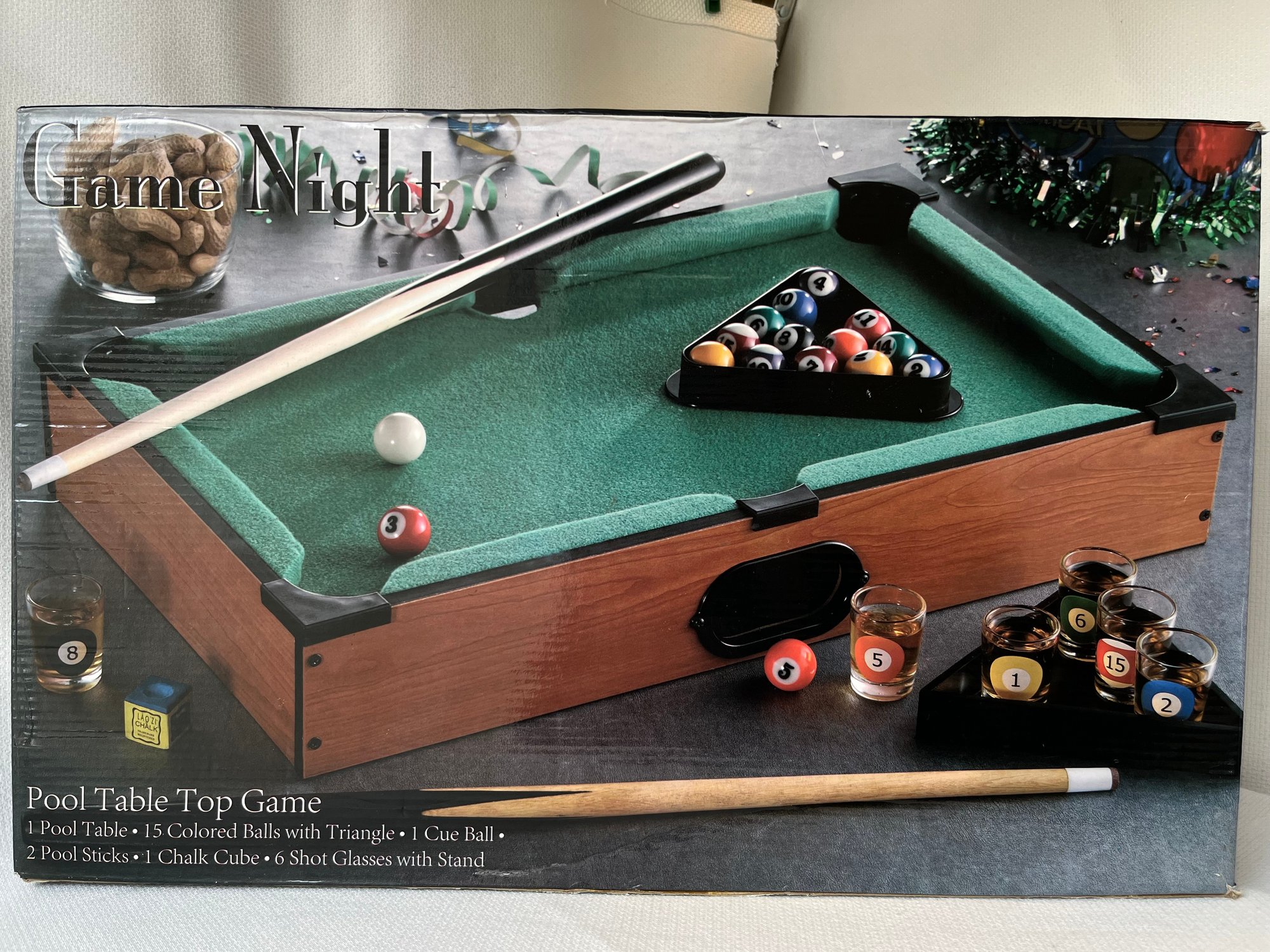 Get ready to transform any gathering into an epic game night with this exceptional Game Night Pool Table Top Game! Designed for entertainment enthusiasts and social butterflies, this versatile tabletop marvel brings the excitement of billiards directly to your living room, game room, or family space. Whether you're a casual player or a budding pool shark, this Game Night Pool Table Top Game delivers professional-level fun without the commitment of a full-sized billiards table. Its excellent condition ensures you'll be racking up memories and points in no time!