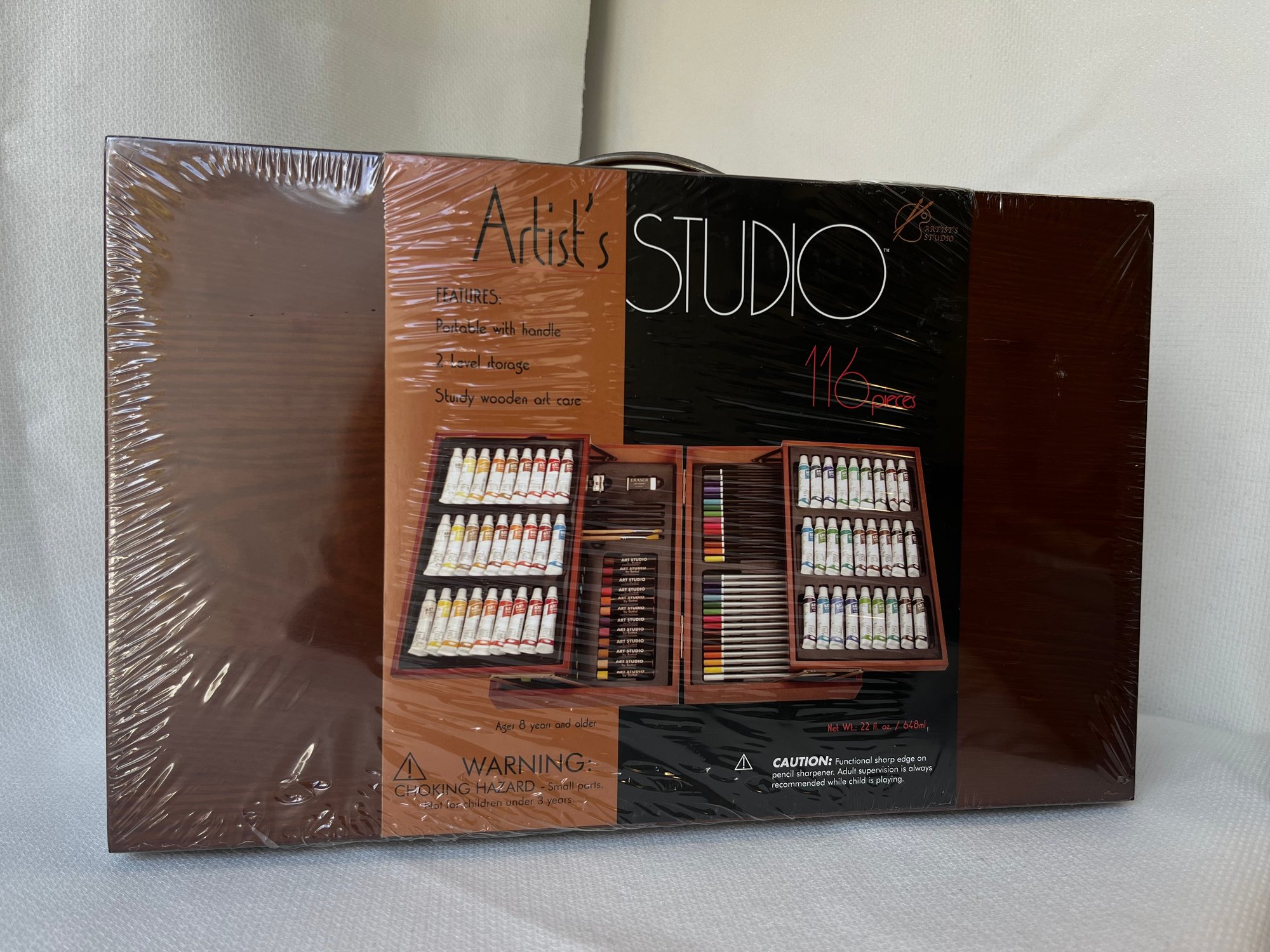 Calling all artists, hobbyists, and creative souls! This extraordinary Artist's Studio Paint Box is your ultimate portable creative companion, waiting to transform blank canvases into masterpieces. Meticulously crafted with a sturdy wooden core and featuring an impressive 116-piece collection, this paint box represents the perfect fusion of professional quality and artistic mobility.