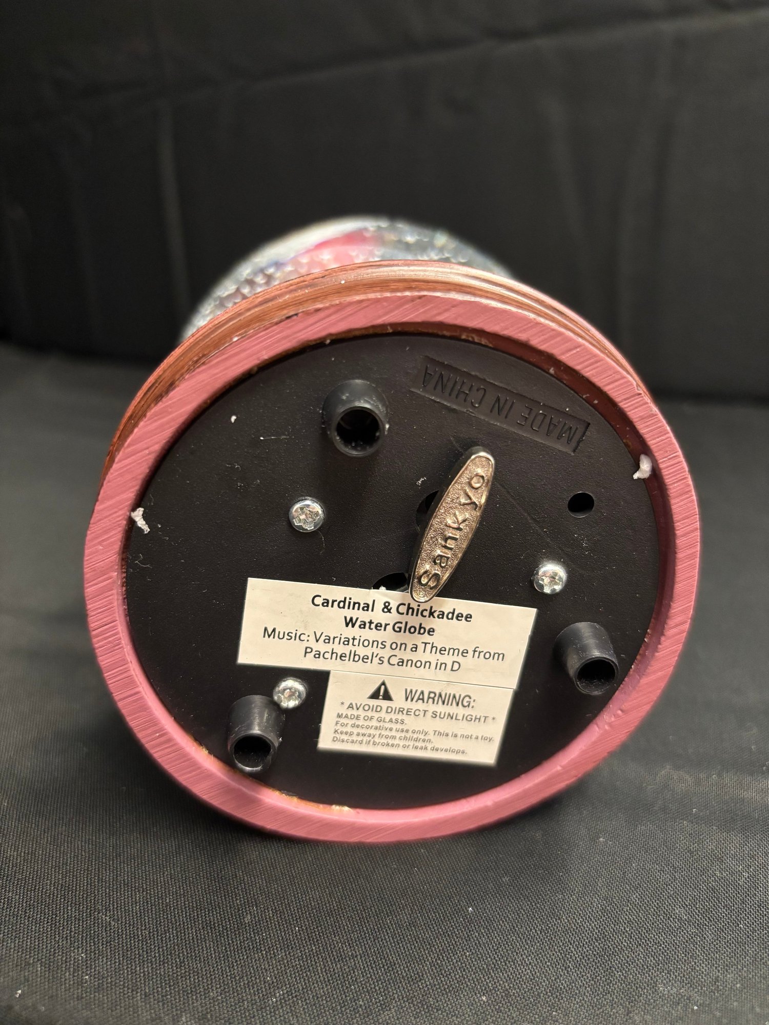 Immerse yourself in the delicate beauty of this exquisite Cardinal and Chickadee Water Globe, a true collector's treasure that brings the tranquil world of nature and music together in one enchanting piece. Meticulously crafted to capture the vibrant spirit of these beloved birds, this water globe is a symphony of visual and auditory delight that will elevate any display collection.