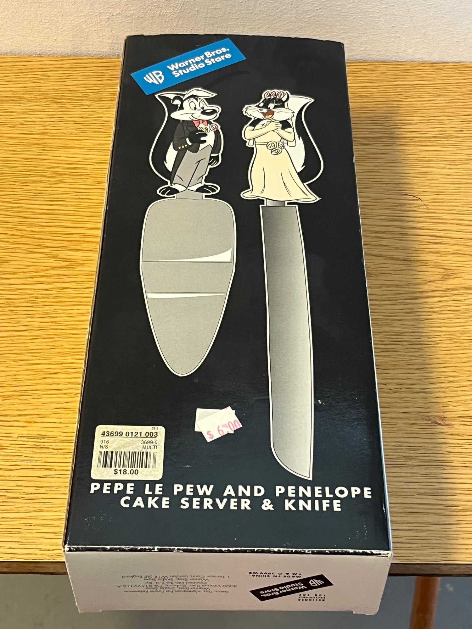 Few animated romances have endured with the charm and comic devotion of Pepe Le Pew and his beloved Penelope Pussycat — and this delightful cake server and knife set brings that iconic Looney Tunes courtship straight to your table. A whimsical marriage of collectible kitchenware and Warner Bros. nostalgia, this character cake set is equal parts functional serveware and display-worthy treasure.