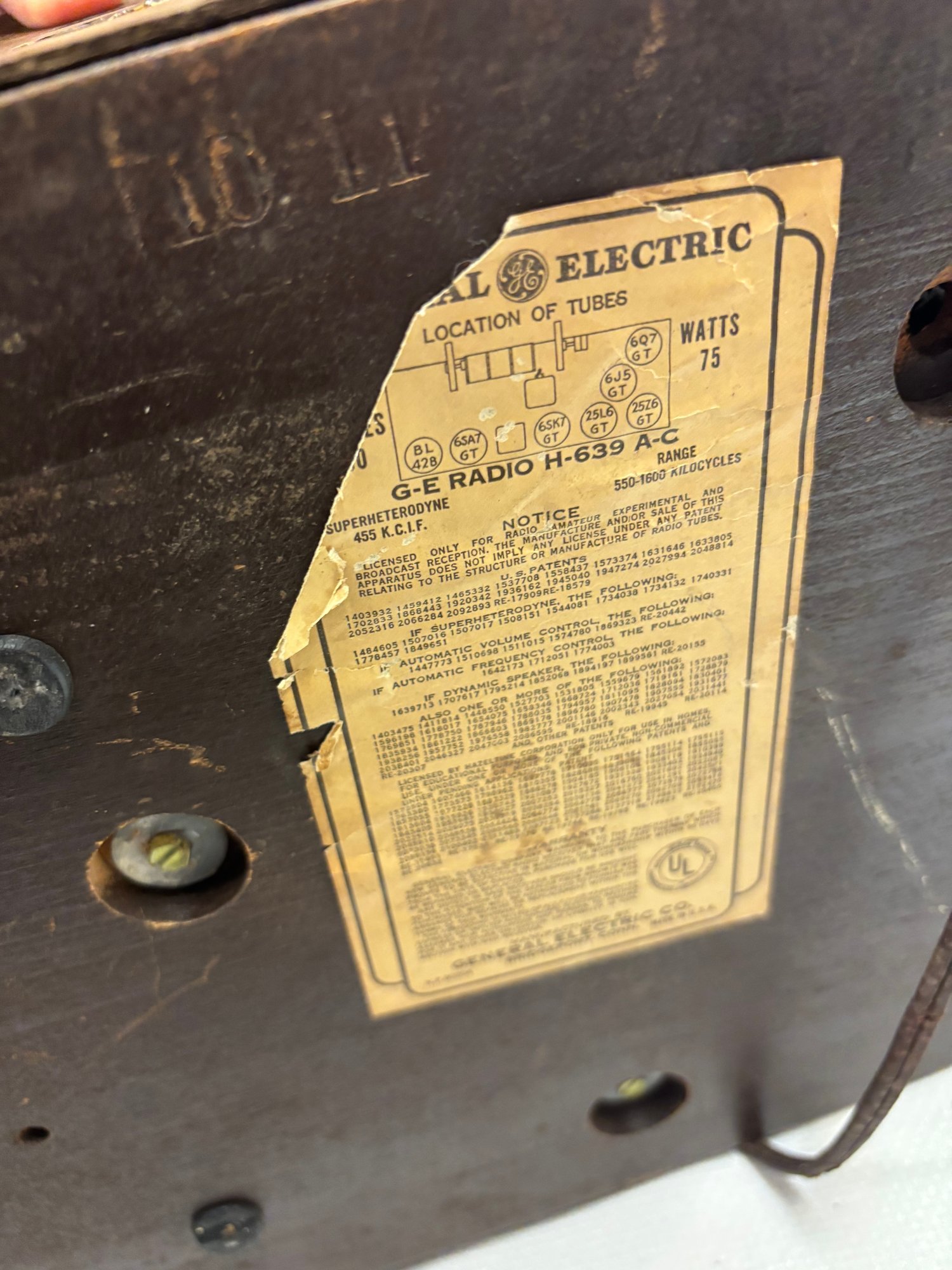 Step back in time with this remarkable H-639 AC Radio from General Electric, a true gem for vintage electronics enthusiasts and audio restoration collectors! This classic piece represents a fascinating era of American home entertainment, promising both historical value and a rewarding restoration project for the right collector. This vintage radio shows its age with character, presenting an exciting opportunity for audio restoration experts or passionate collectors. While the radio needs thorough cleaning and potential electrical system repair, its core structure remains intact – a promising canvas for bringing mid-century audio technology back to life.