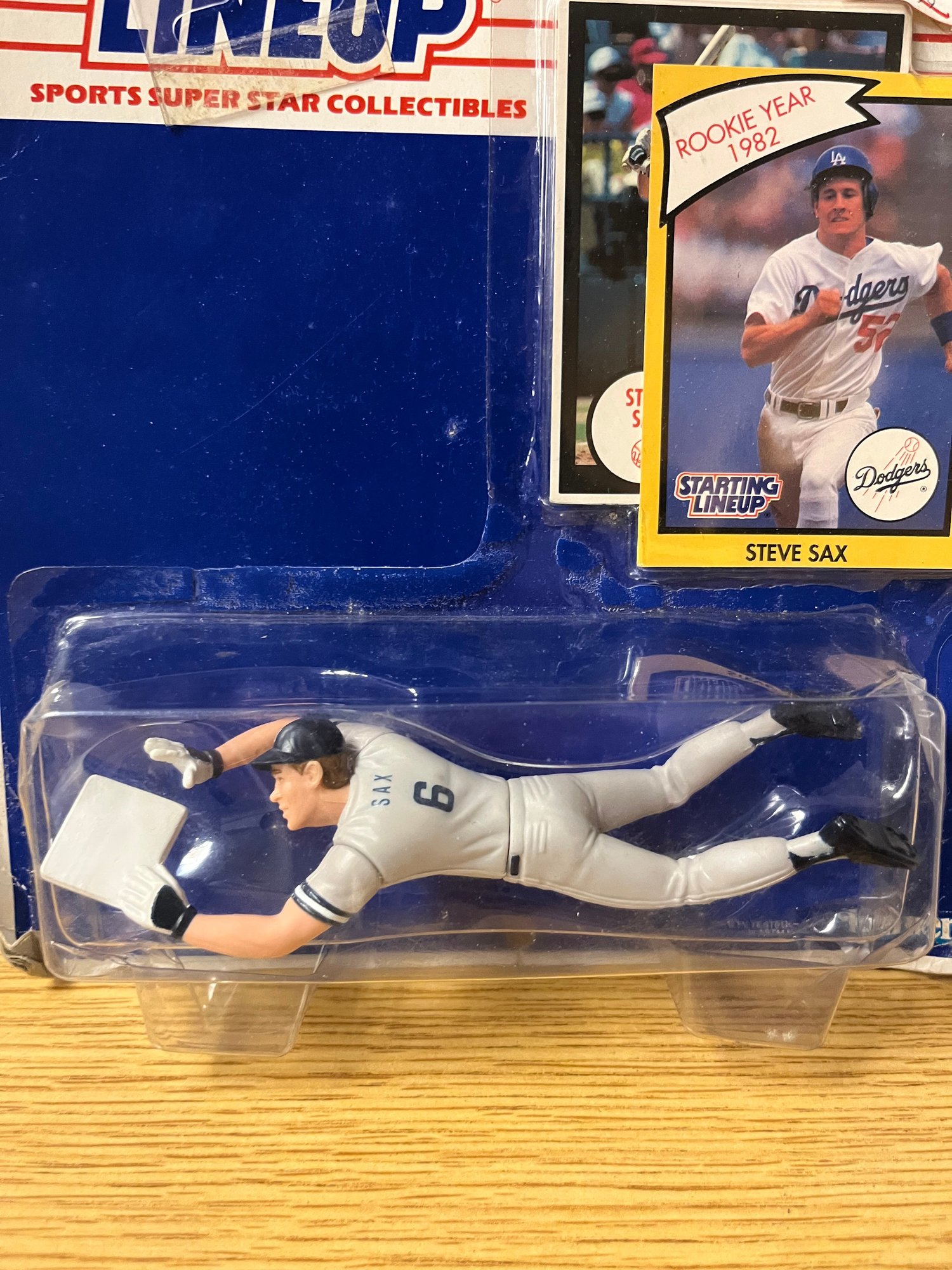 Few artifacts capture the golden age of baseball card culture quite like the Kenner Starting Lineup series — and this Steve Sax figure stands as a compelling testament to that era's enduring appeal. Immortalized in classic Los Angeles Dodgers livery, Sax is rendered in the characteristically detailed plastic sculpt that made the 1988 SLU lineup an instant obsession among collectors young and old.