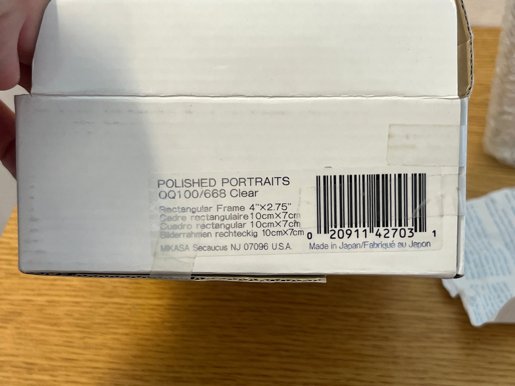 Mikasa Crystal Frame — a study in refined elegance that transforms any portrait into a centerpiece worthy of the finest interior. This 4×3 crystal frame bears the unmistakable hallmarks of Mikasa's celebrated craftsmanship: brilliantly polished surfaces that catch and scatter light with the quiet authority of fine crystal, clean architectural lines that elevate without overpowering, and a weight in hand that speaks to genuine quality. Whether displayed on a mantelpiece, a writing desk, or a curated shelf, it commands attention with understated confidence. Mikasa has long been synonymous with heirloom-grade housewares, and this frame is no exception — a collectible as functional as it is beautiful. Condition presents exceptionally well, with the crystal retaining its full luminous polish. For the discerning collector of Mikasa glassware or the buyer seeking a decorative crystal frame that transcends the ordinary, this is a rare opportunity to acquire a piece that will only grow more cherished with time. Bid with confidence.
