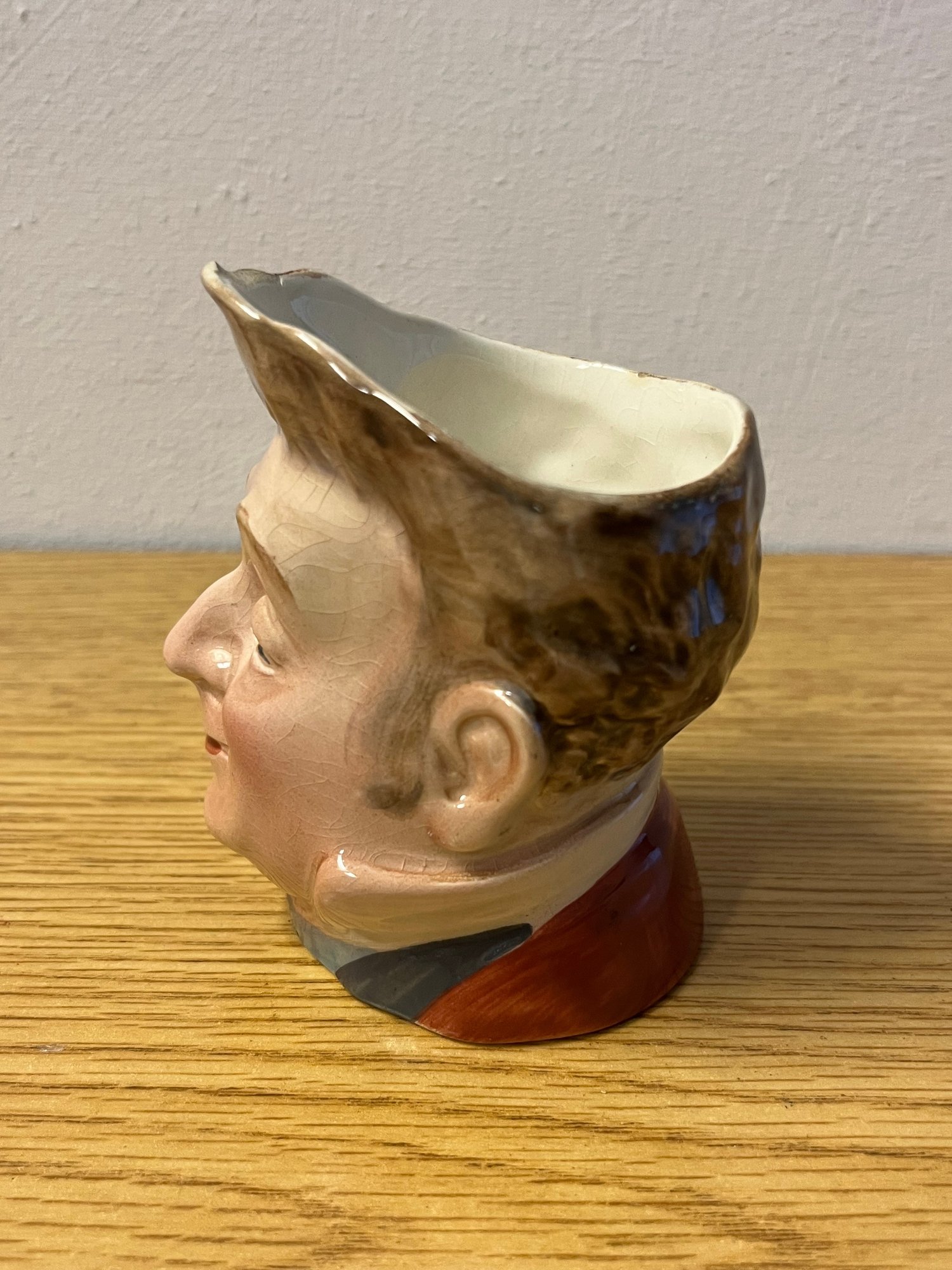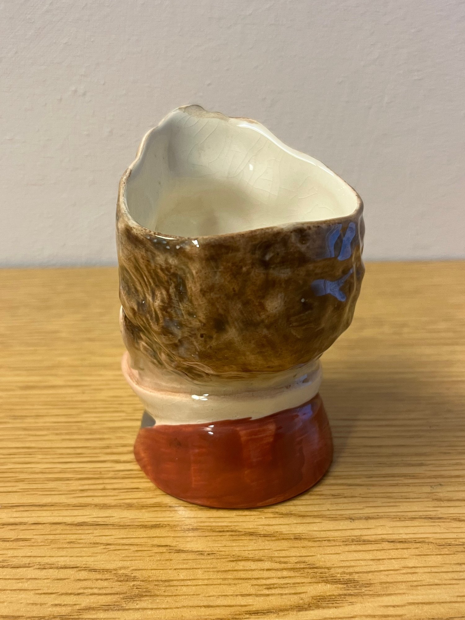 Porcelain of this character — figural, expressive, and unapologetically individual — has long drawn the eye of collectors who prize personality over production. Whether displayed as a standalone curiosity or anchored within a broader assemblage of ceramic art, this cup brings narrative weight and visual charm in equal measure.