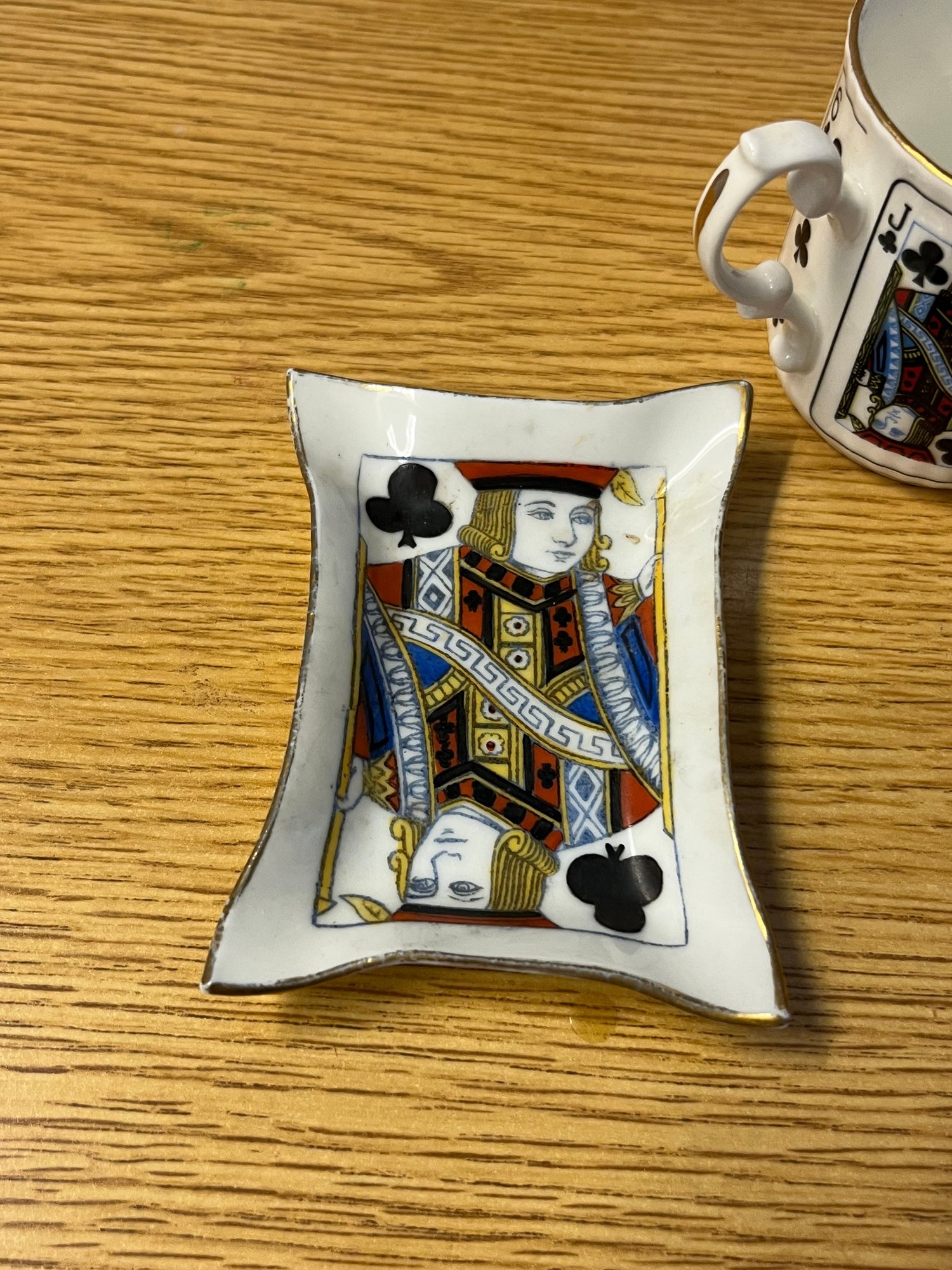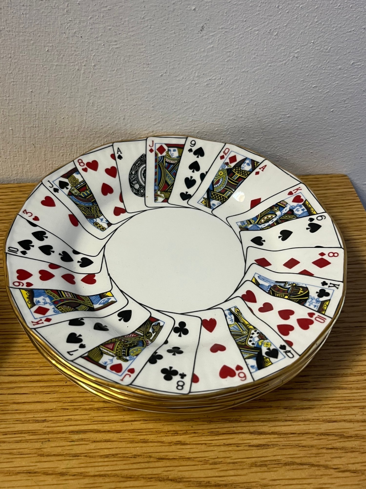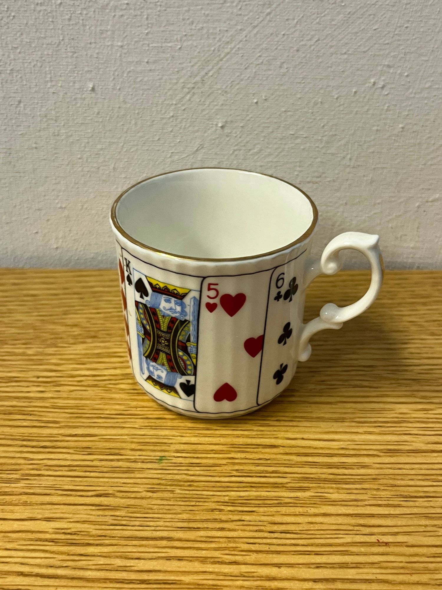 Few table settings command a second glance quite like this enchanting Elizabethan Staffordshire fine bone china coffee service, dressed in the timeless iconography of the card table. Hearts, diamonds, clubs, and spades adorn each translucent, featherlight piece — a whimsical yet thoroughly refined motif that speaks equally to the collector and the devoted entertainer.