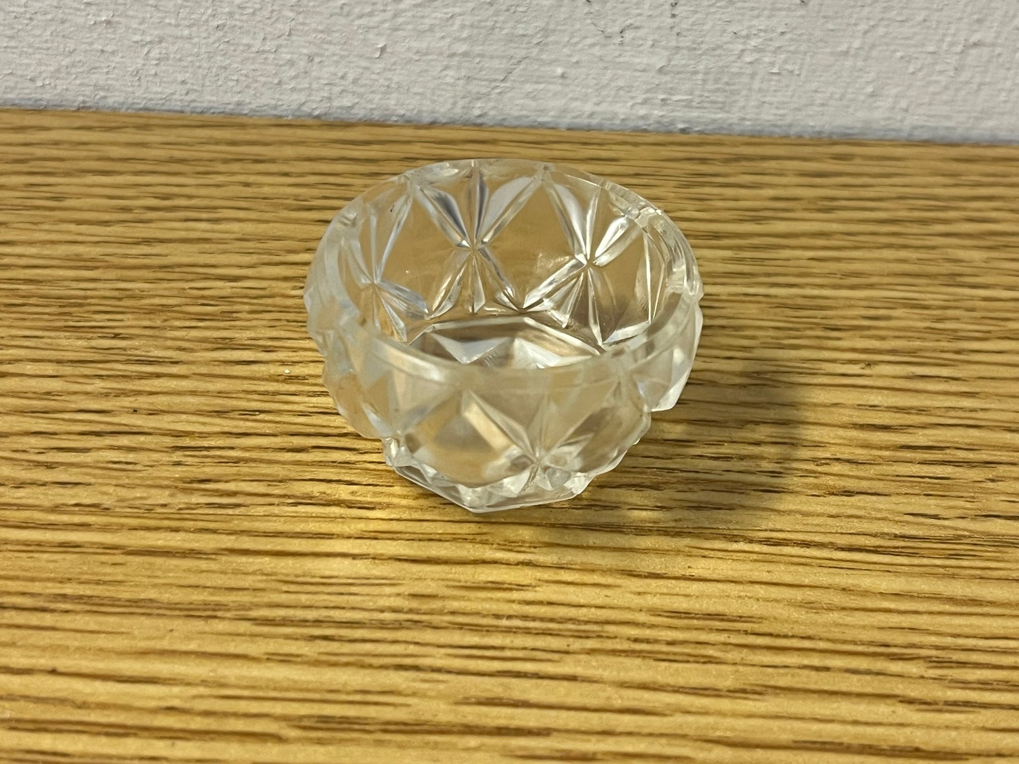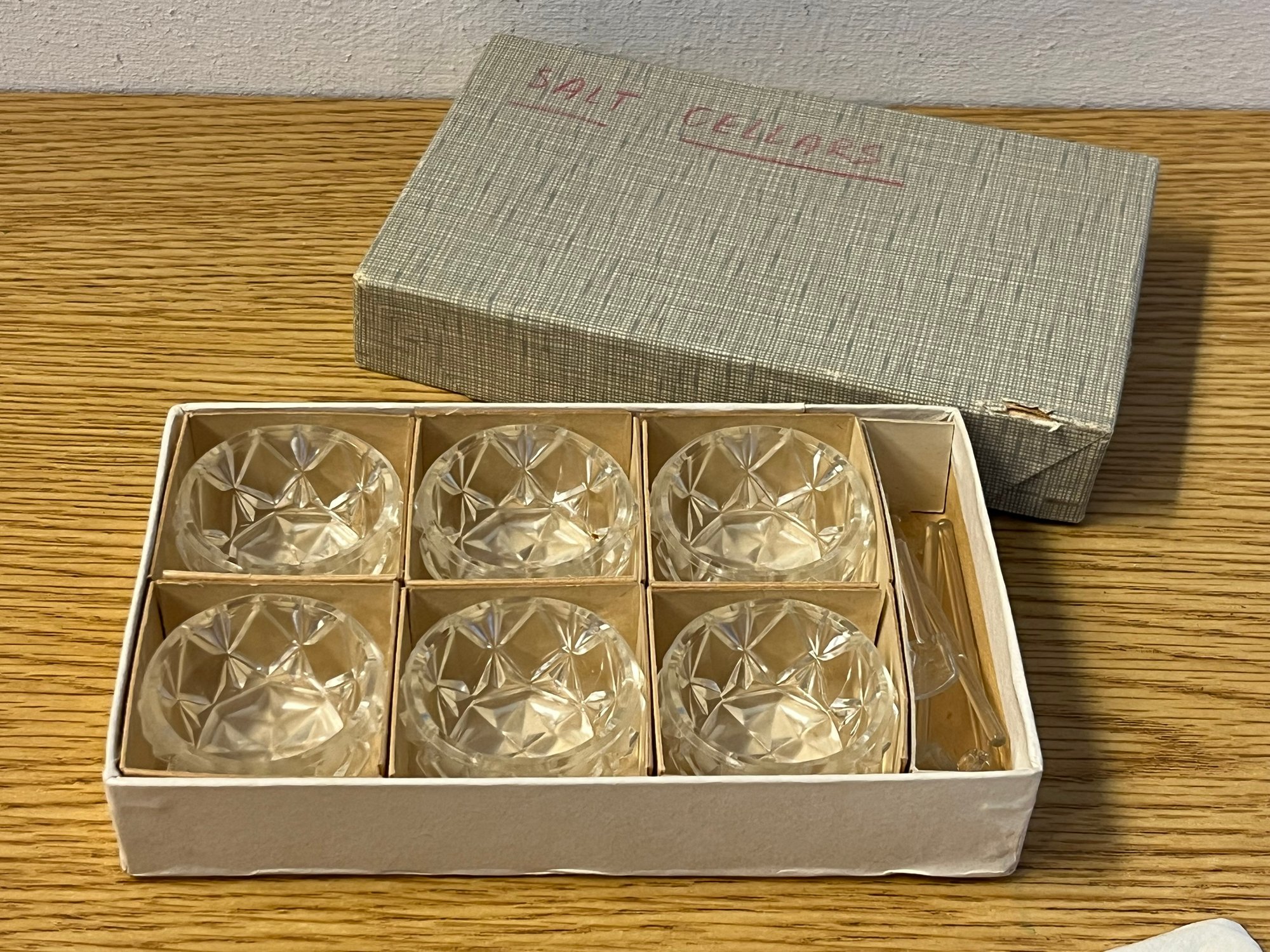Open salt cellars of this type predate the shaker entirely, and their presence on a table once signaled both hospitality and discernment. Whether displayed as a curated vignette on a sideboard or returned to active use for intimate dinner parties, this set carries the kind of understated charm that collectors of vintage glassware and dining collectibles find irresistible.