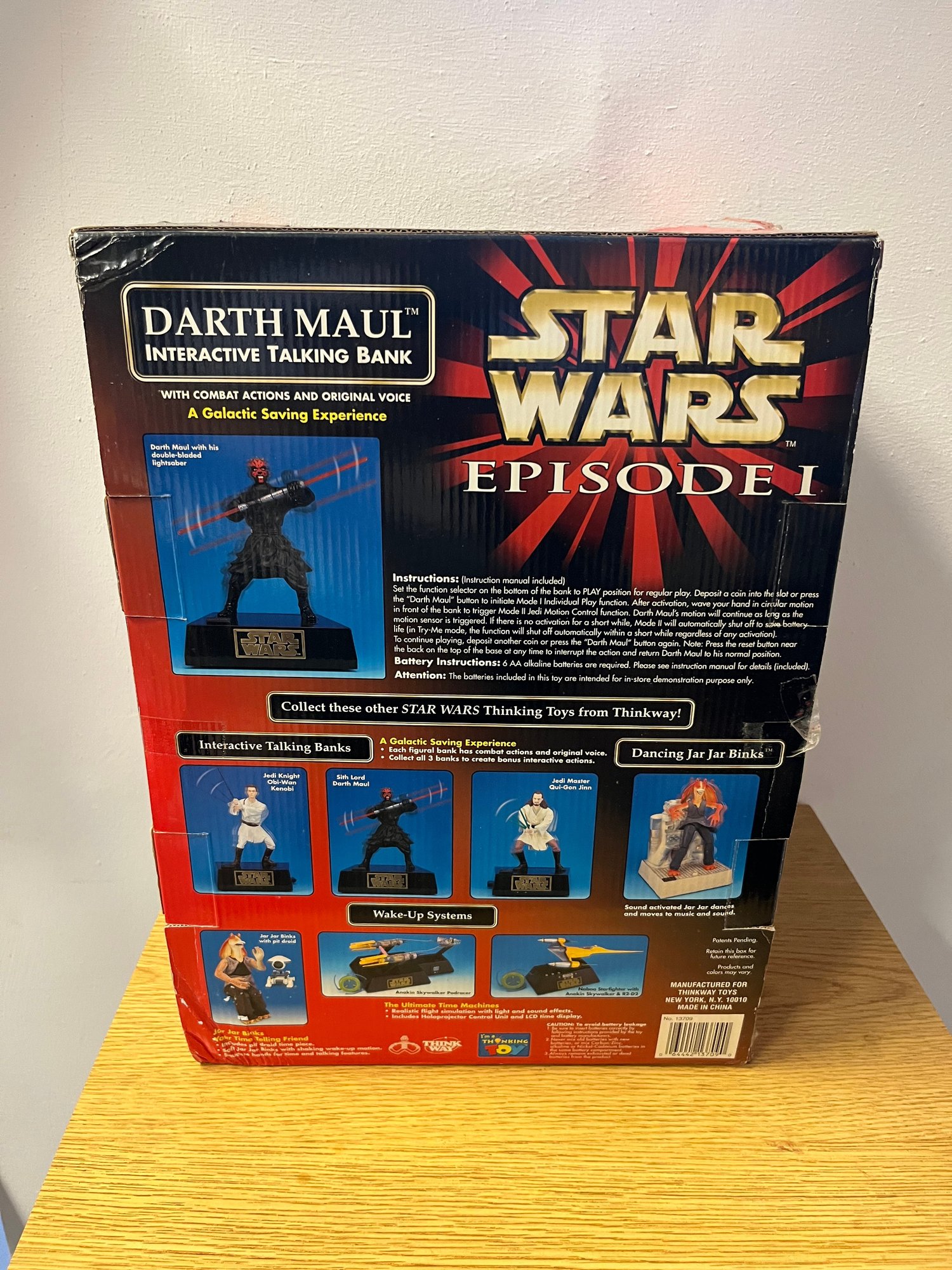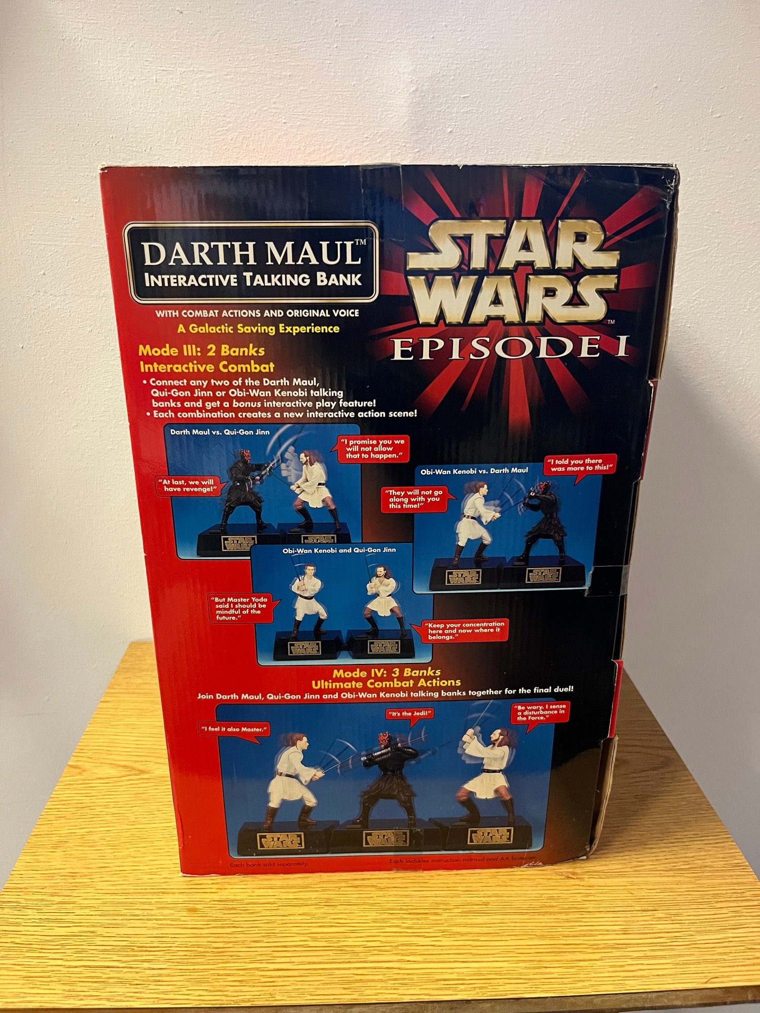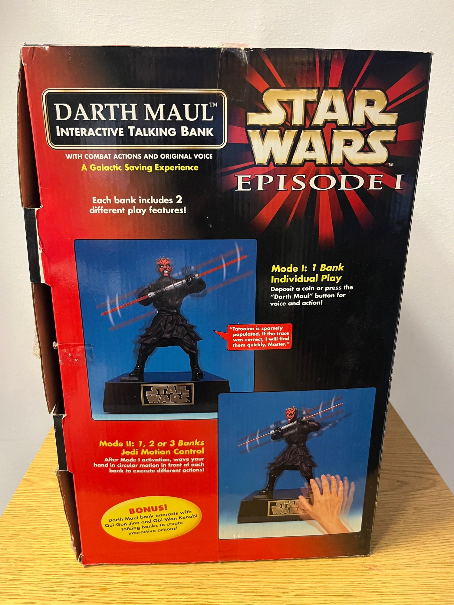 Released alongside the cultural phenomenon that was The Phantom Menace, this piece represents the apex of late-1990s Star Wars merchandising — a moment when the galaxy far, far away roared back to life after a sixteen-year silence. The interactive talking feature places Maul's menacing presence front and center, making this far more than a coin bank — it's a conversation piece, a time capsule, and a trophy for the serious collector.