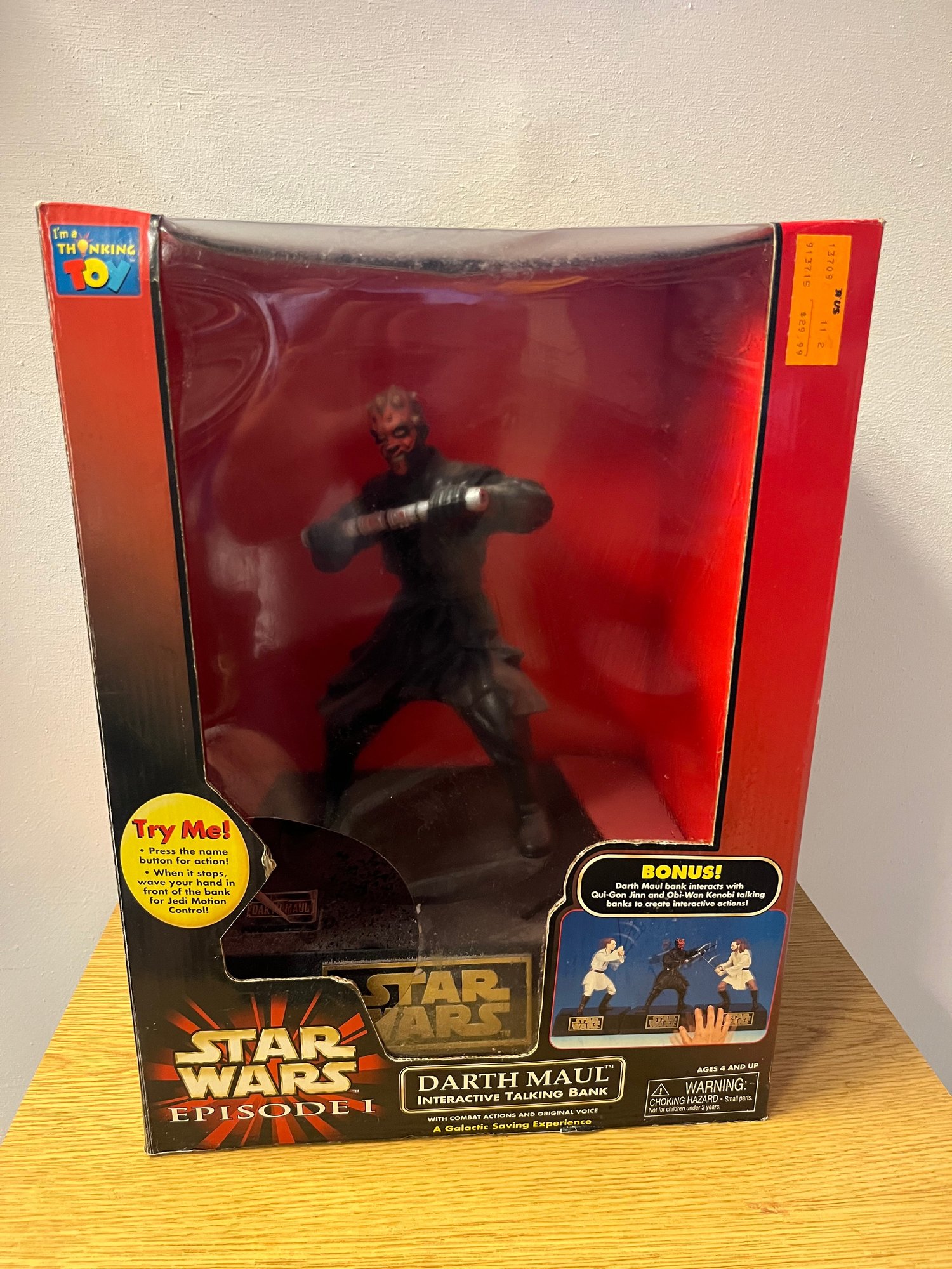 Few villains captured the imagination of a generation quite like Darth Maul — and this Star Wars Episode 1 Interactive Talking Bank arrives exactly as collectors dream: still sealed in its original box, untouched by time.