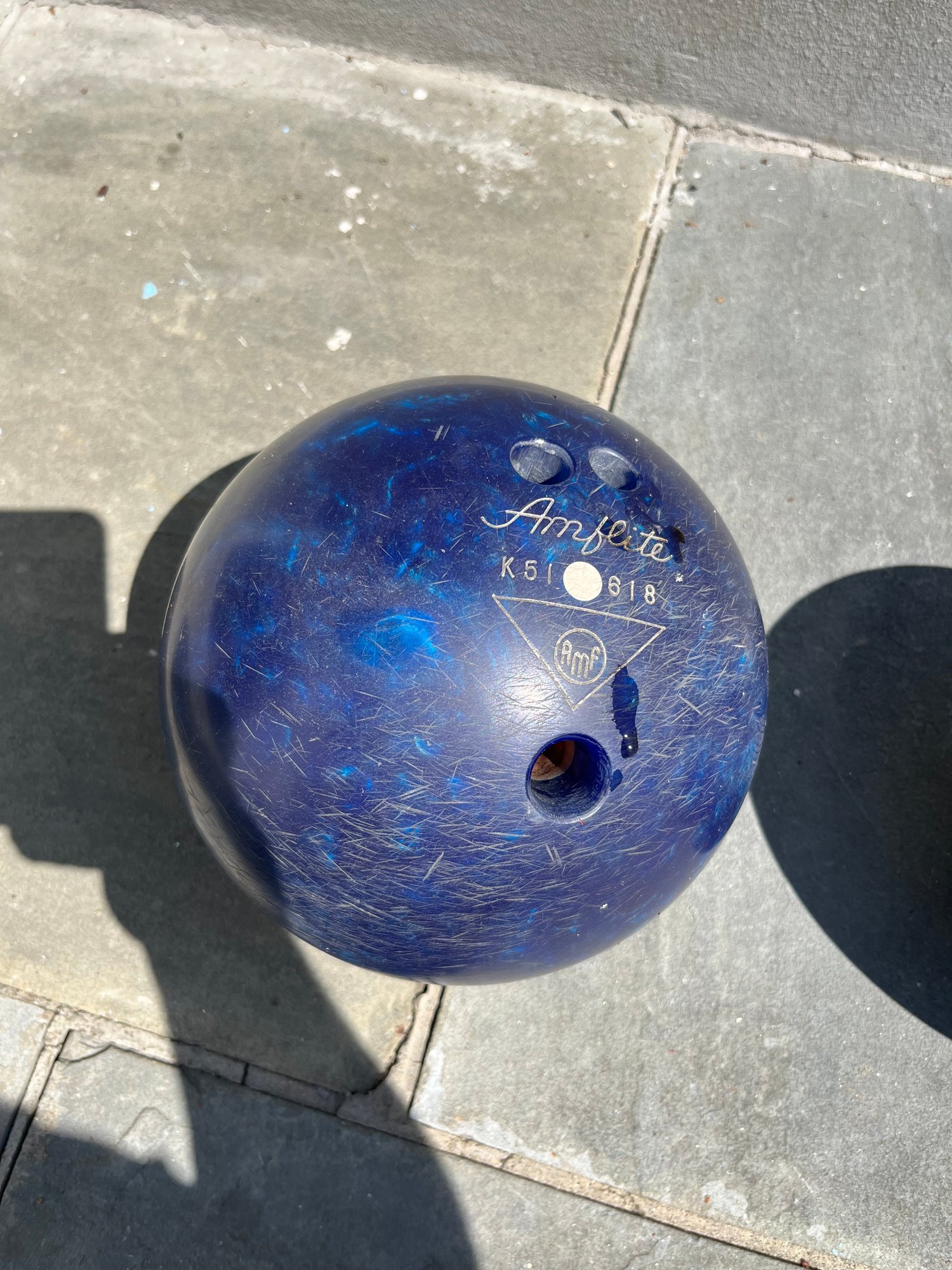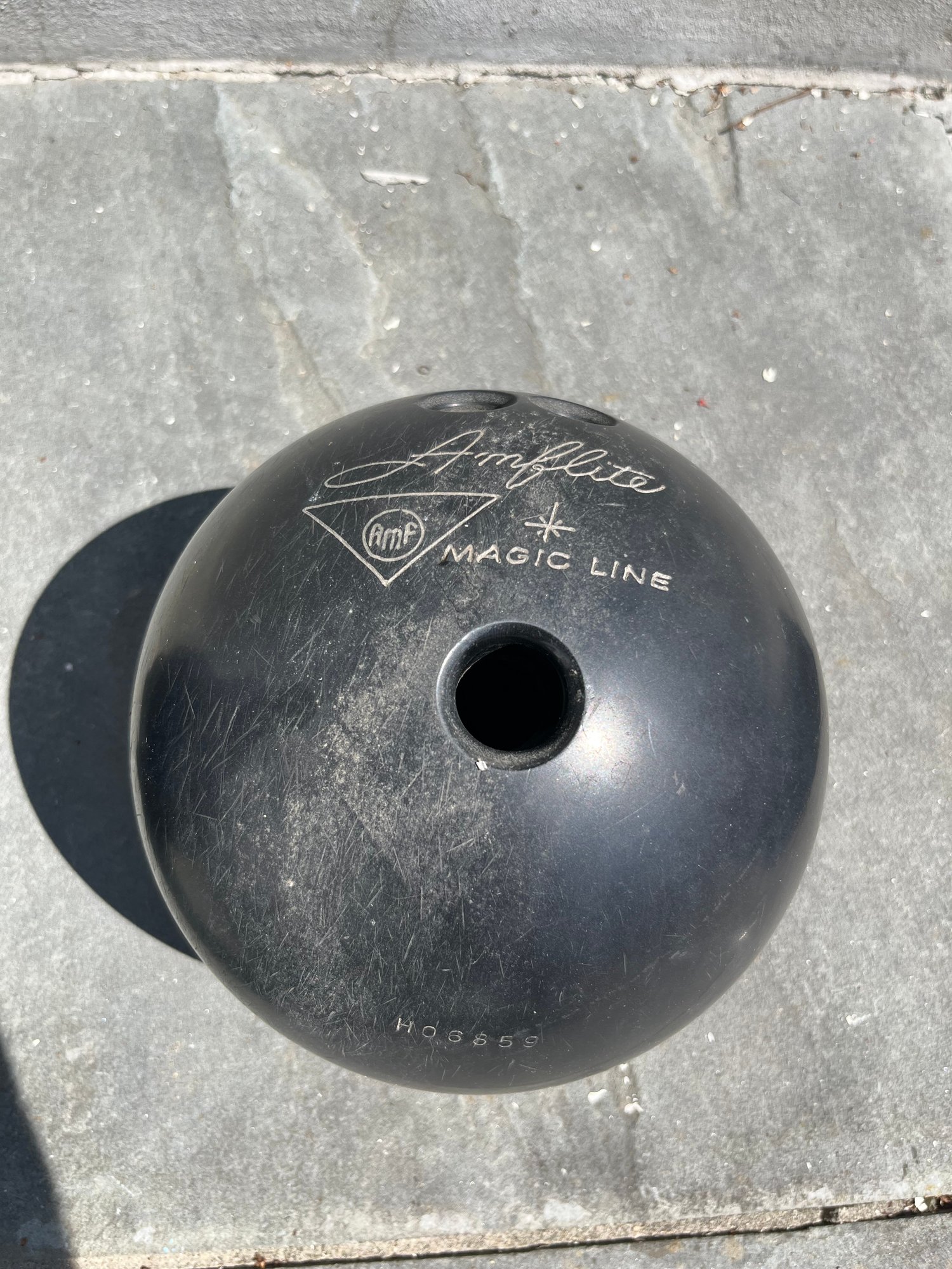 A rare opportunity for the discerning collector or dedicated lane enthusiast — presented here is a matched pair of AMF Amflite Magic Line vintage bowling balls, serials K51618 and H06859, representing a golden era of American bowling culture that today's mass-produced equipment simply cannot replicate.