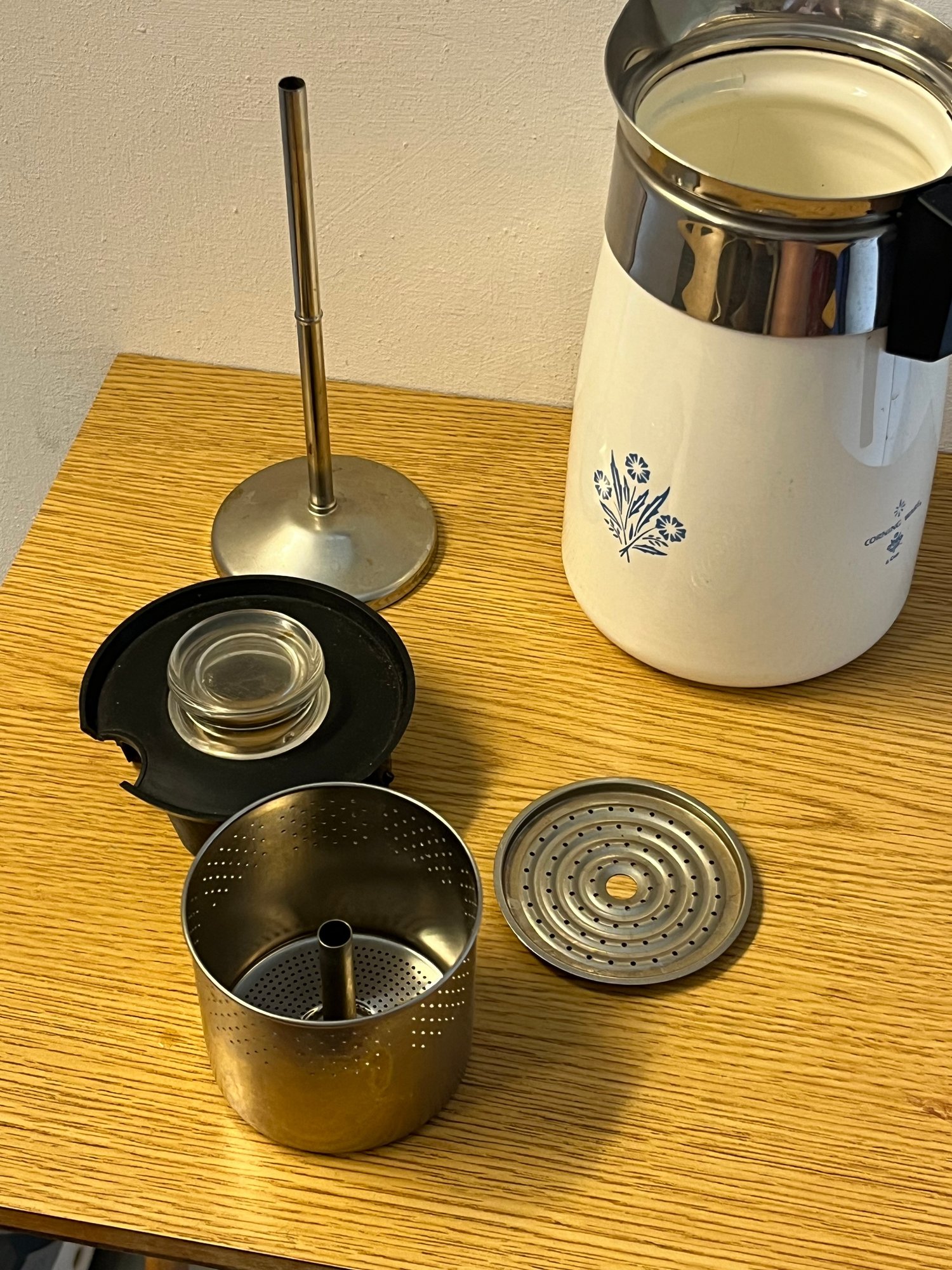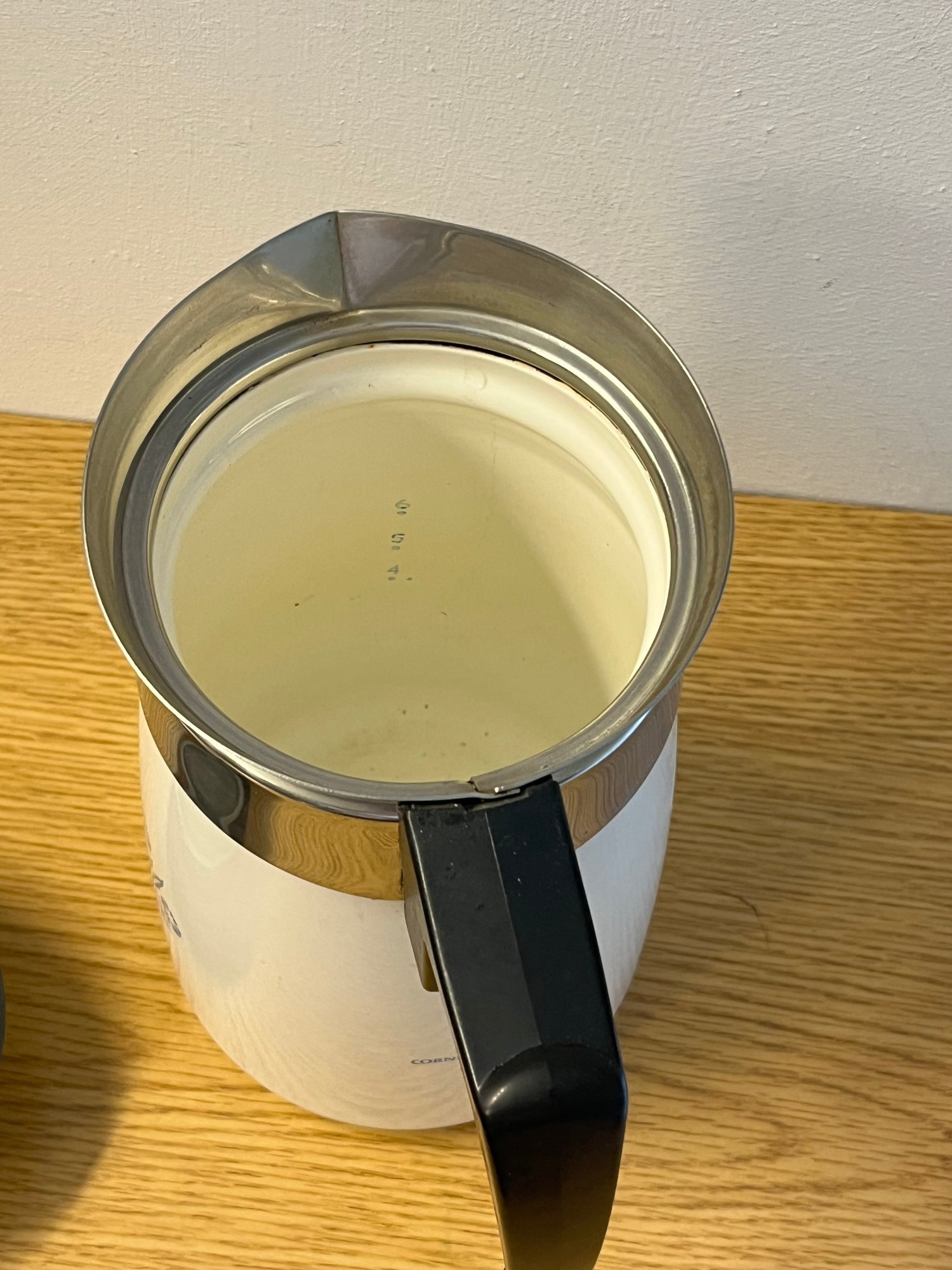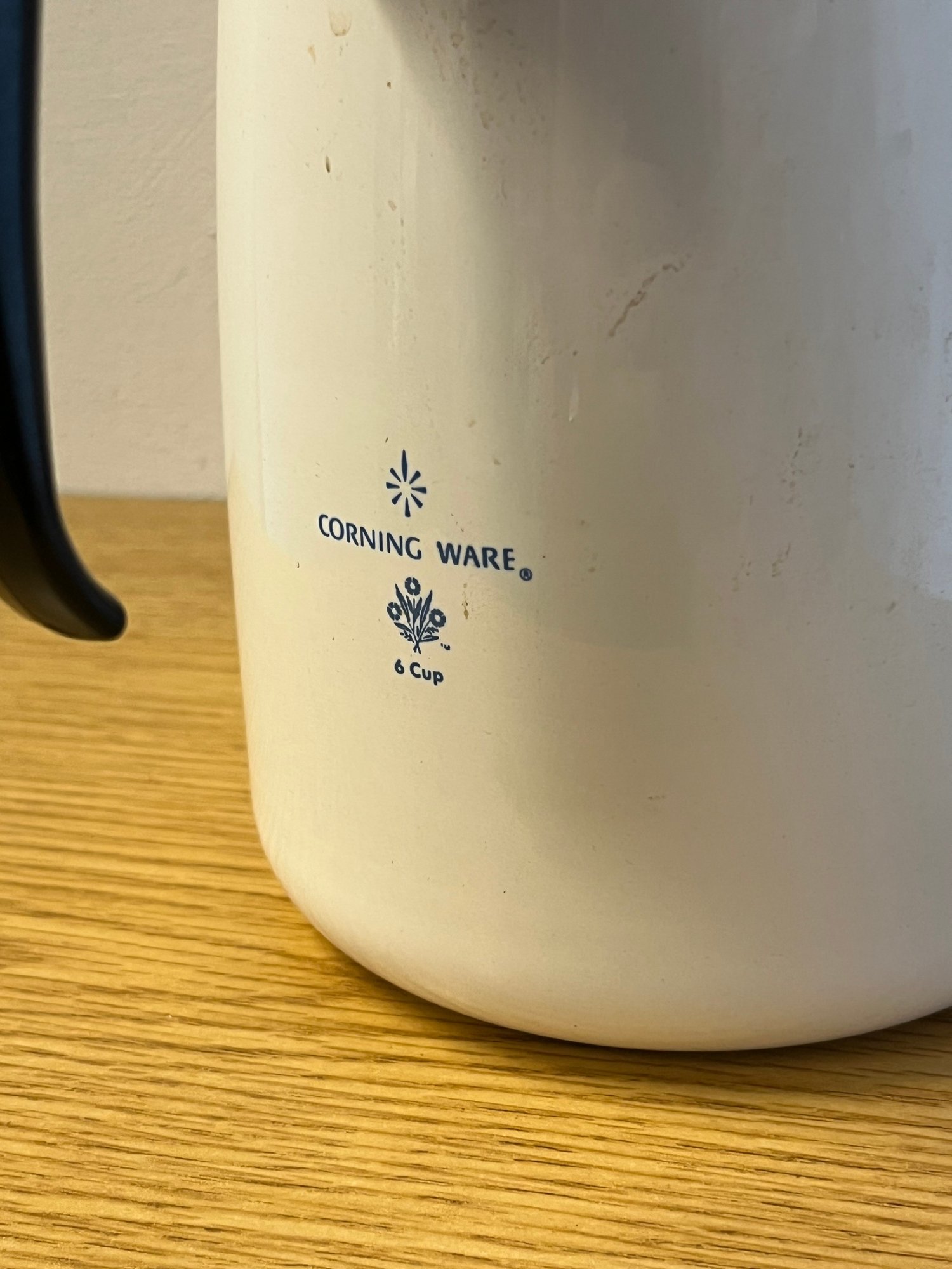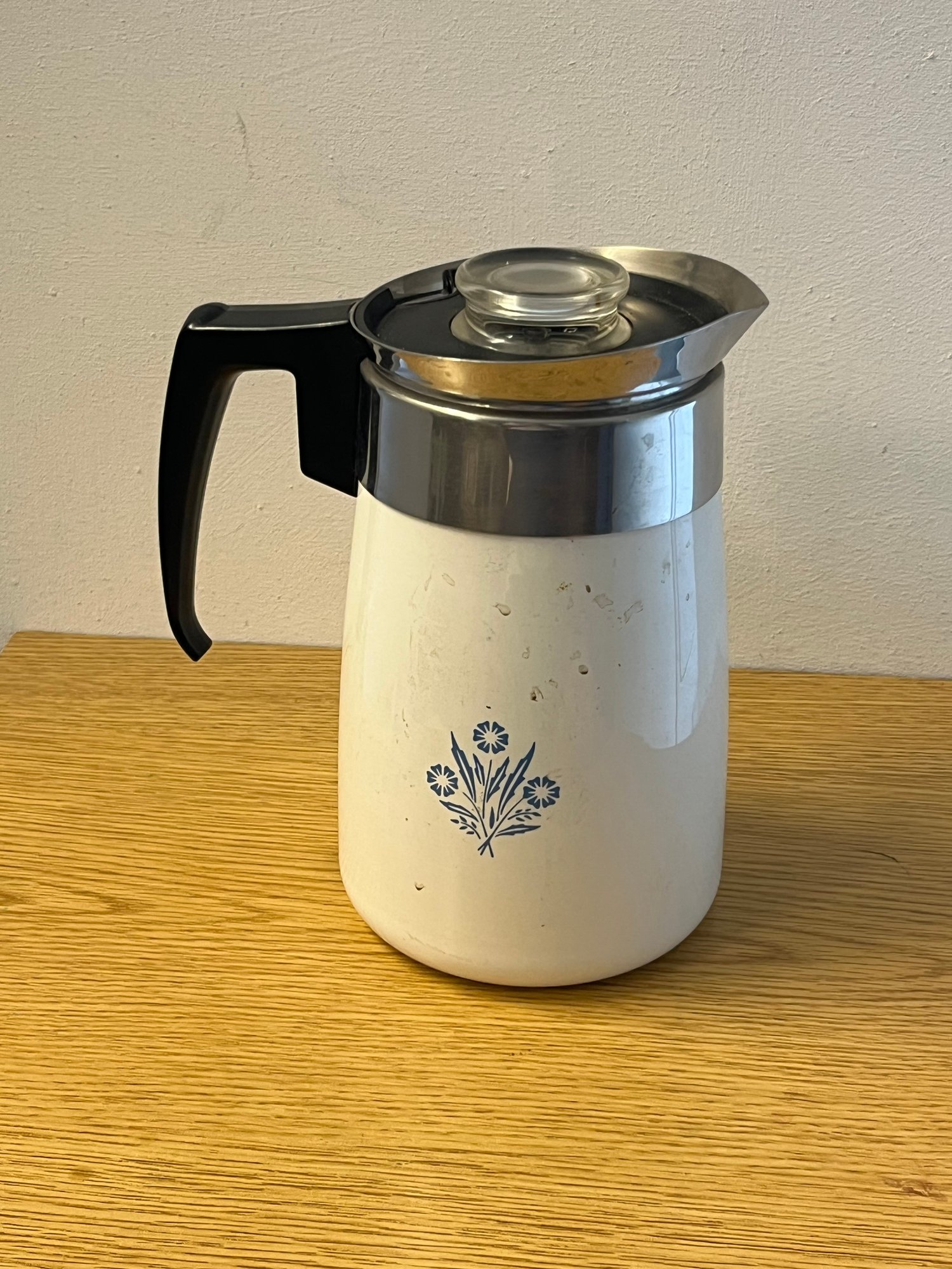 A quiet icon of the American kitchen, this vintage Corning Ware pitcher carries with it the unmistakable charm of mid-century domestic life — a time when design and durability were considered inseparable virtues. Corning Ware earned its legendary status not by accident but through decades of faithful service on tables across the country, and pieces like this one have become genuine touchstones for collectors who understand that the best kitchenware tells a story.
