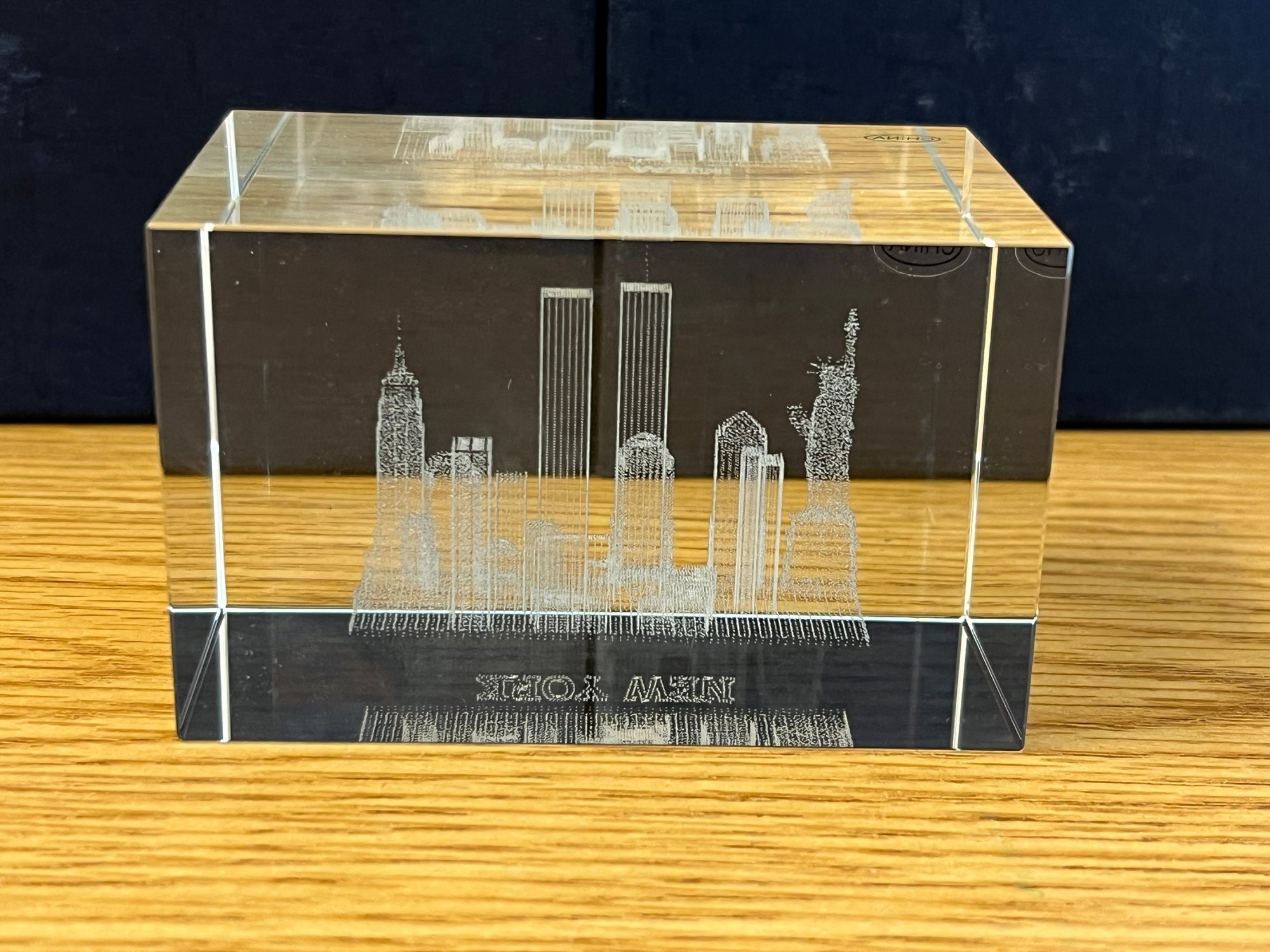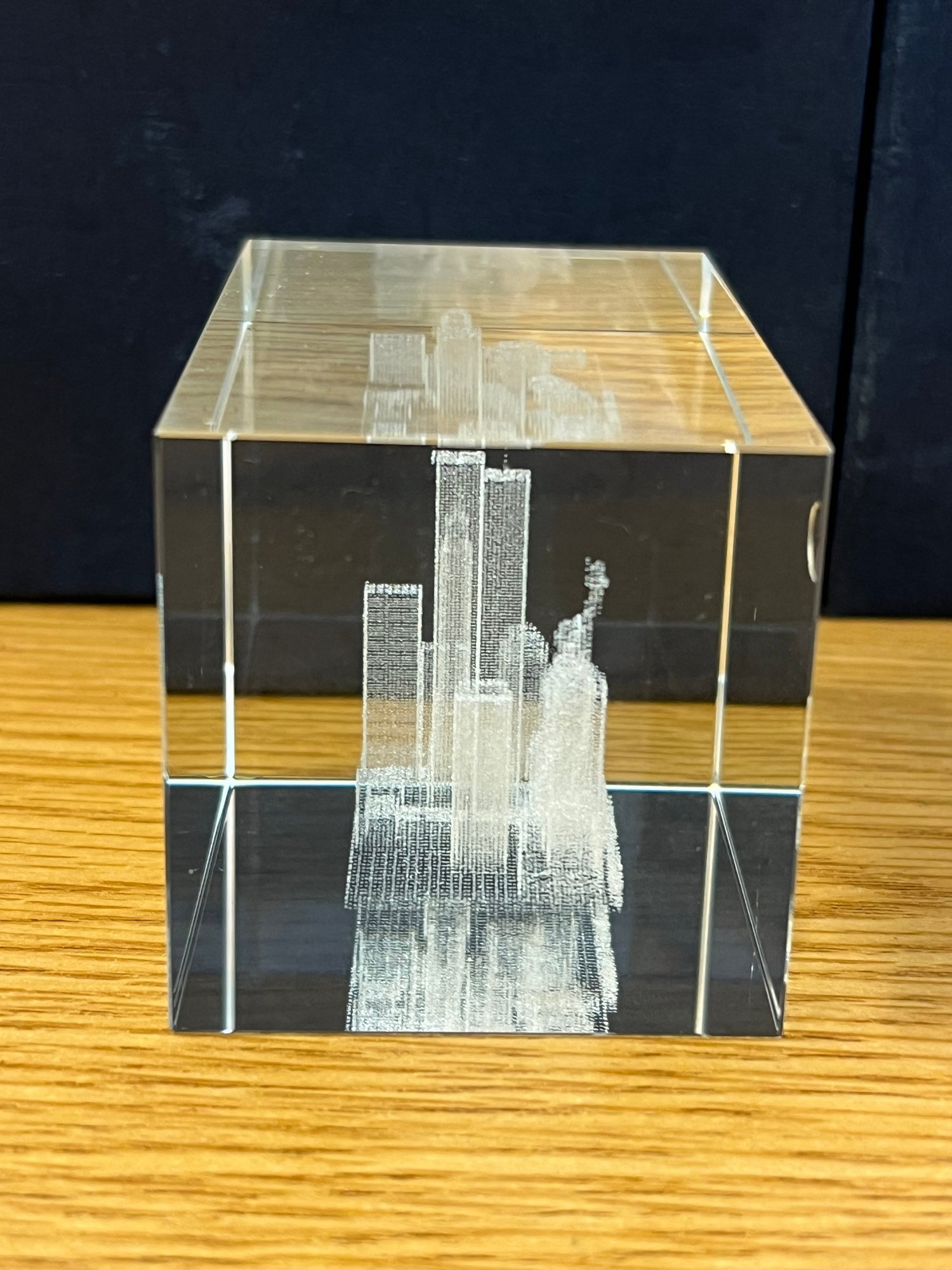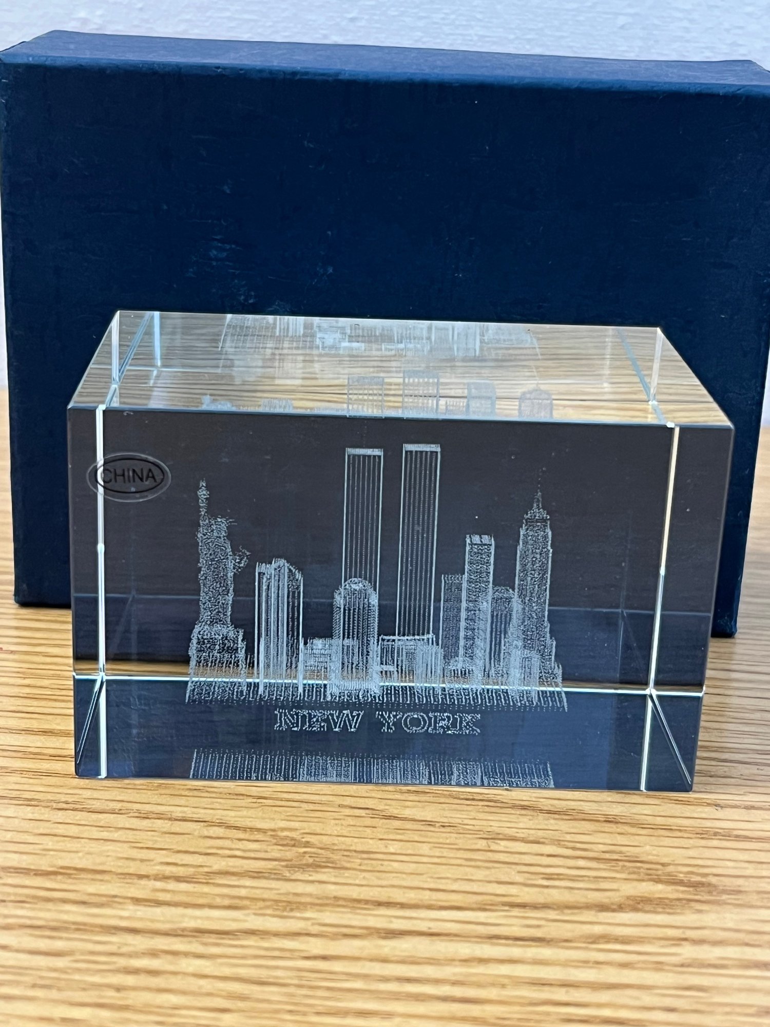 Whether displayed on a desk, a bookshelf, or within a curated collection of New York City memorabilia, this paperweight commands attention not through grandeur but through meaning. The World Trade Center looms within the glass as it once loomed over Lower Manhattan — proud, eternal, and irreplaceable.