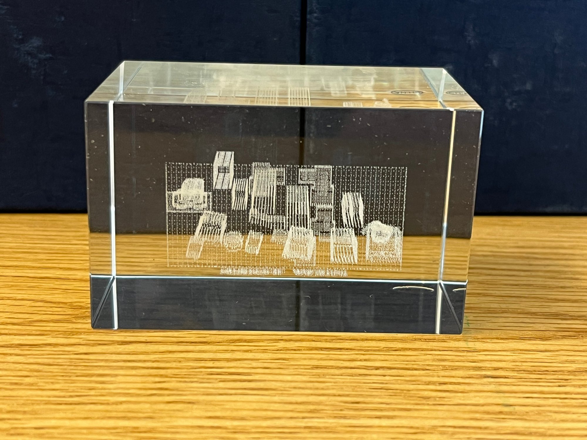 A relic of a New York that lives now only in memory, this vintage glass paperweight captures the iconic Twin Towers in their full, commanding presence — a skyline silhouette that once defined the most recognizable city on earth. Rendered in glass with the quiet permanence that only a well-crafted souvenir can carry, this piece transcends its humble origins as a keepsake and arrives today as something far more significant: a tangible connection to a lost era.