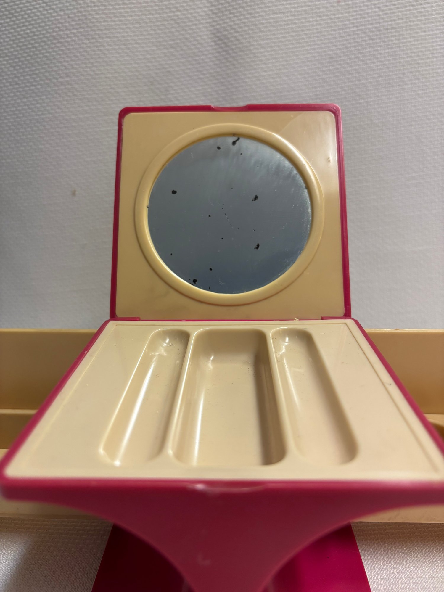Step back in time with this exquisite vintage makeup box – a true gem for collectors and vintage beauty enthusiasts! This carefully preserved piece isn't just storage; it's a beautiful glimpse into the glamorous beauty rituals of yesteryear.