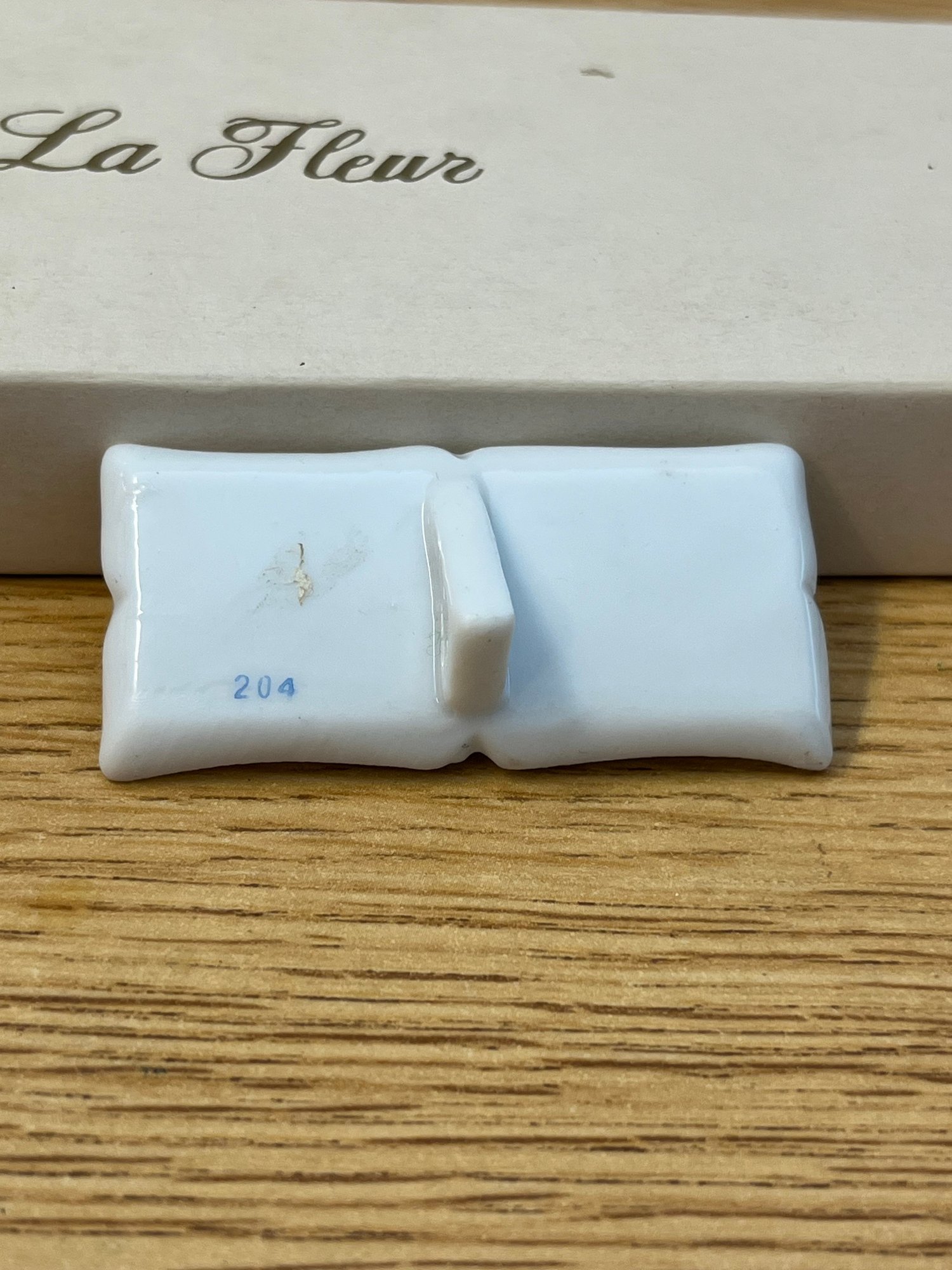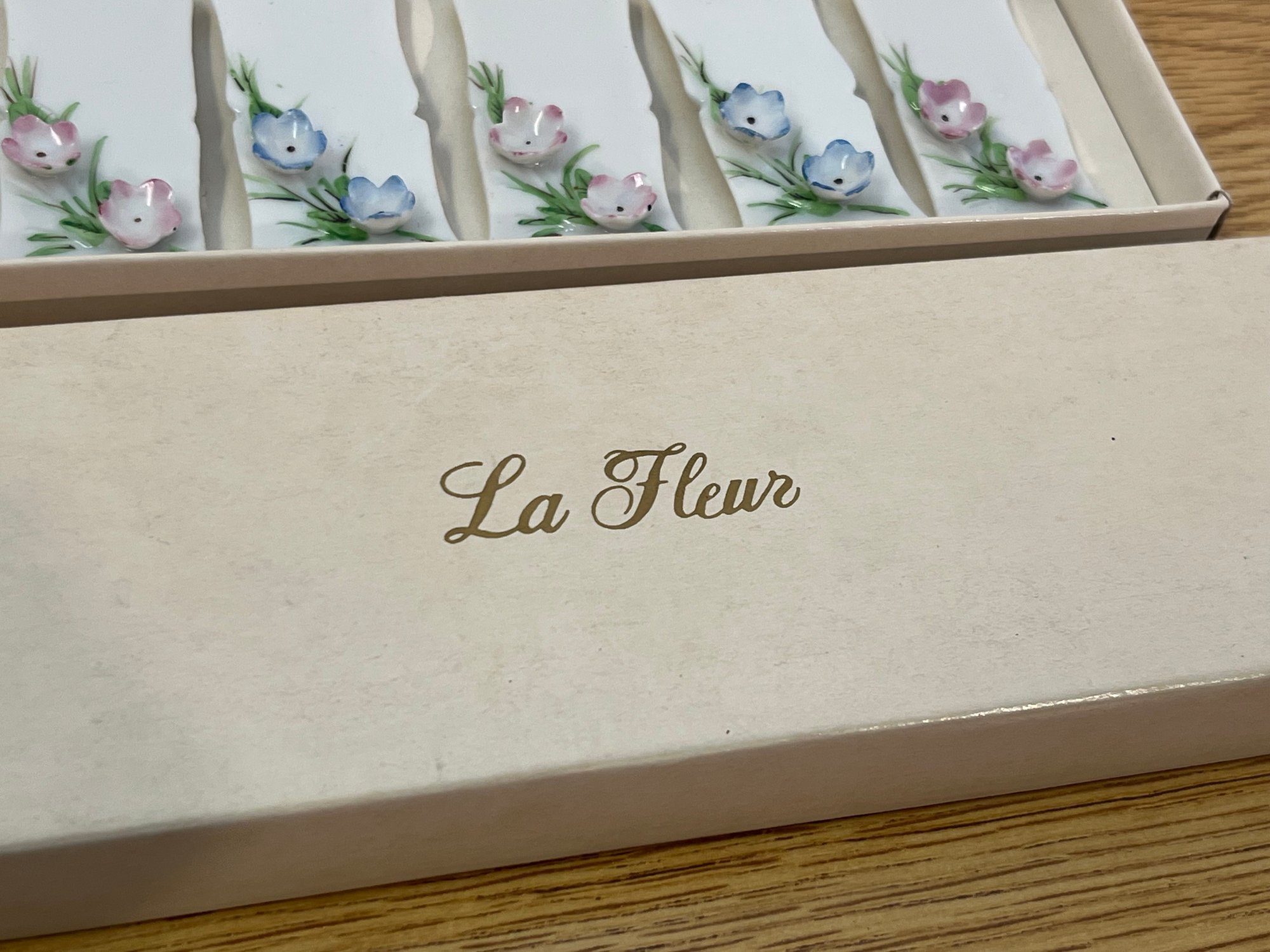 Elevate your table with the quiet elegance of a bygone era. This charming set of vintage porcelain name place cards, bearing the evocative La Fleur designation, speaks to a time when formal dining was an art form — when every detail, from the centerpiece to the place setting, was chosen with deliberate grace.