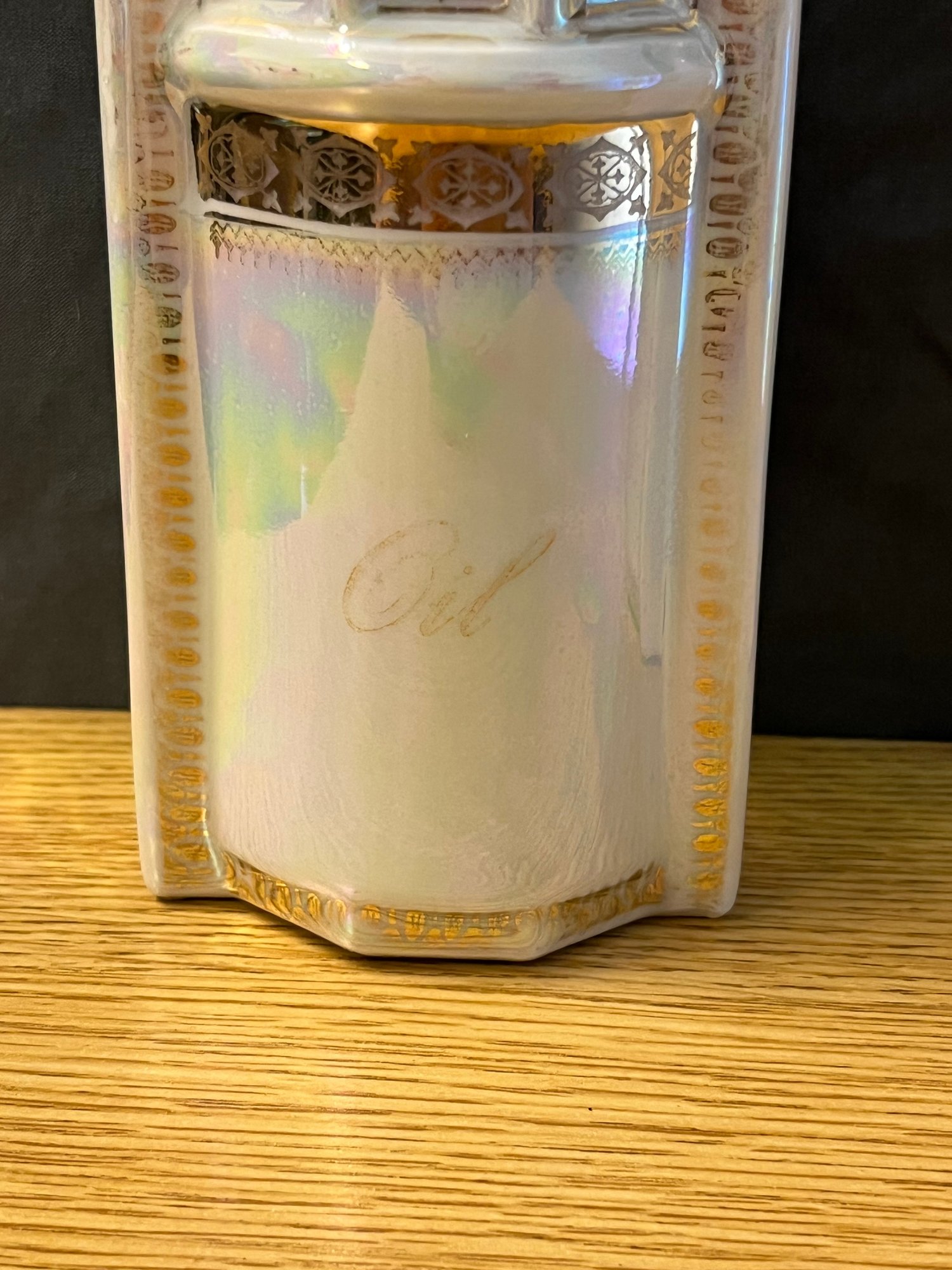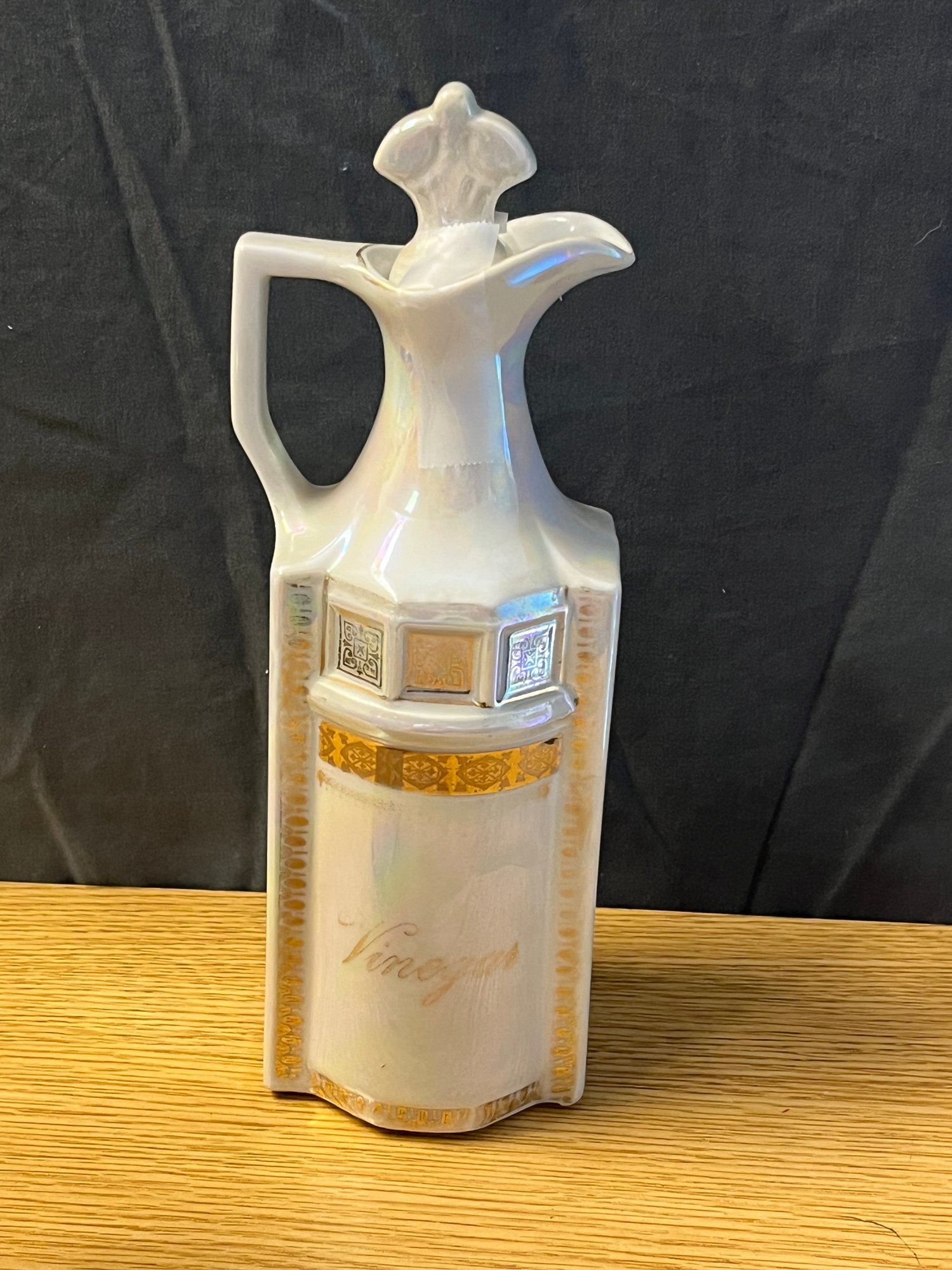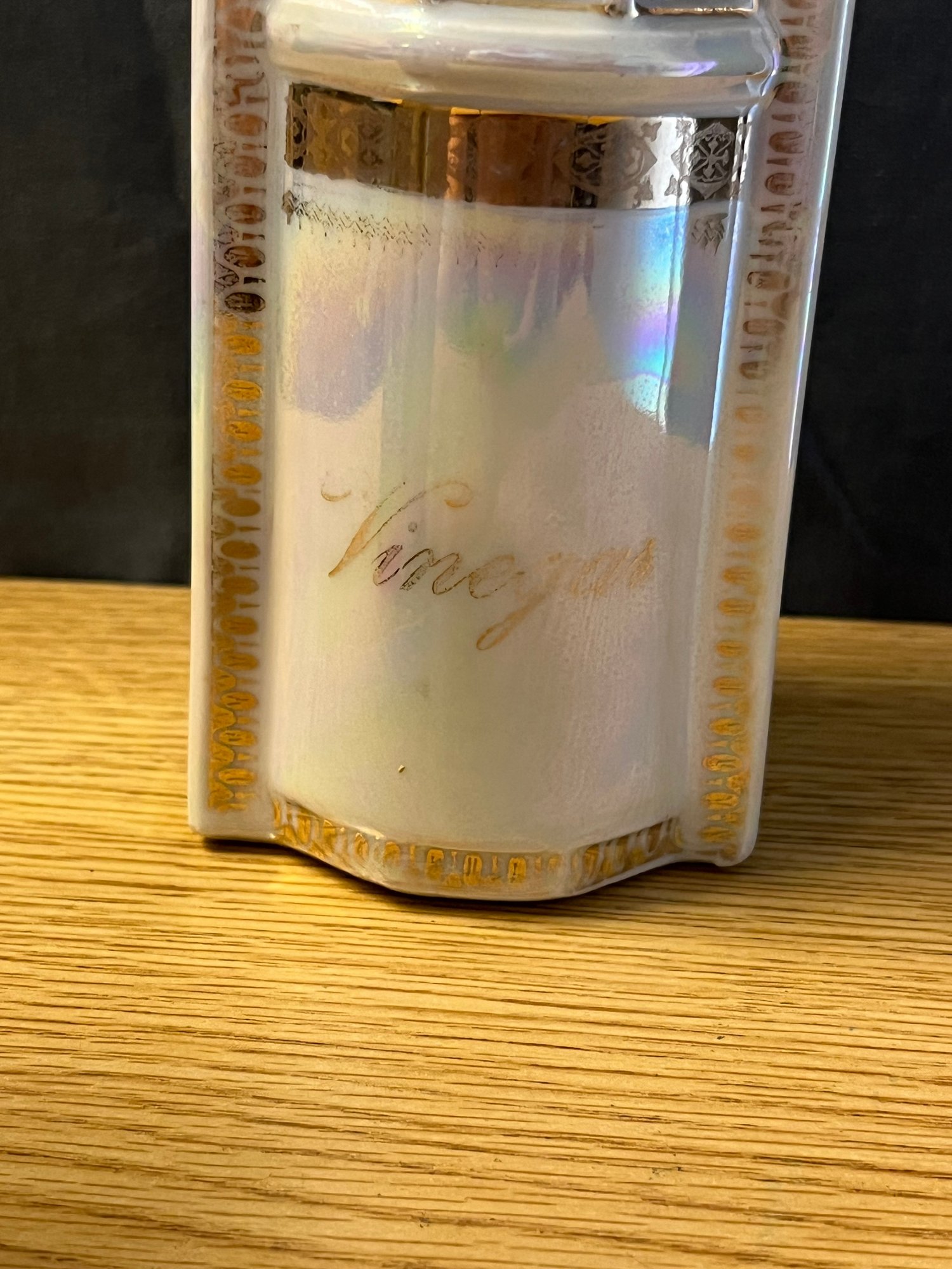 There is something quietly elegant about a well-appointed table, and this vintage porcelain oil and vinegar set delivers precisely that understated refinement. A hallmark of gracious dining from a bygone era, this charming cruet set speaks to a time when every detail of the table setting was considered with care and intention.