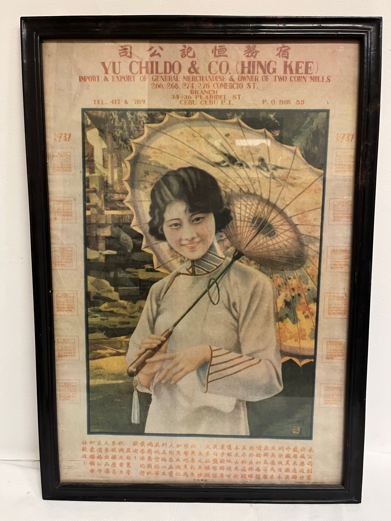 Step into a world of elegant nostalgia with this captivating lithograph that captures the delicate essence of traditional Asian artistry. Created by the renowned Yu Childo & Co Hing Kee, this exquisite piece showcases a graceful lady sheltered by an intricate umbrella, embodying the subtle beauty of mid-century artistic expression. This lithograph is more than just a piece of art – it's a window into a bygone era, carefully preserved and ready to become the centerpiece of a discerning collector's gallery. The detailed craftsmanship speaks to the rich artistic traditions that make such pieces truly remarkable. While the exact provenance requires further research, the artwork demonstrates exceptional quality and historical significance.