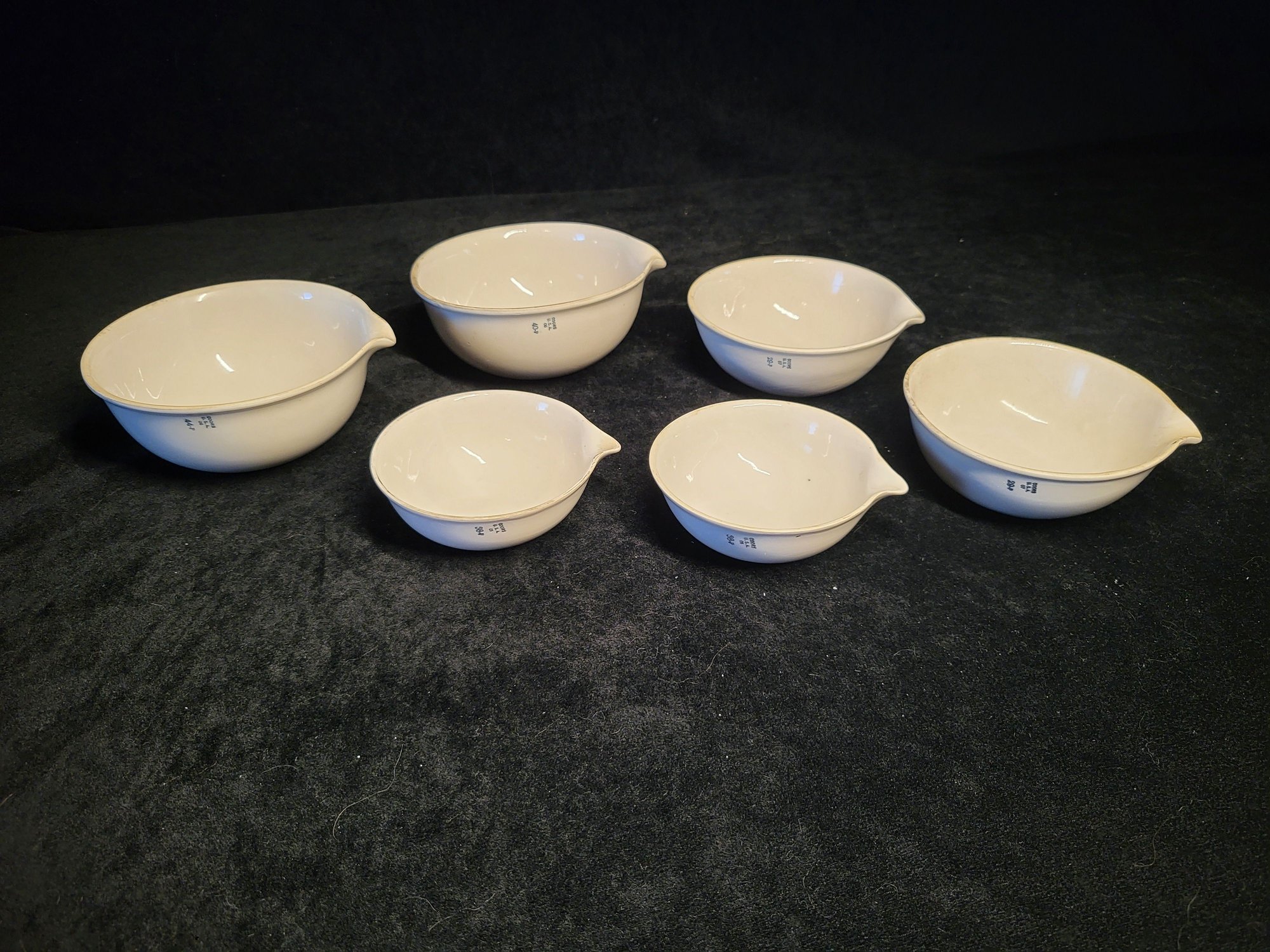 Set includes two 29-p, two 38-p, one 40-p, and one 44-p dishes. Each dish stamped with Coors U.S.A. logo and size.