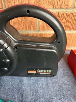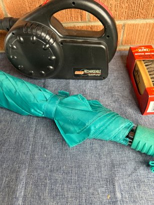 Umbrella, Shine Brush And Coleman Rechargeable Quick Pump