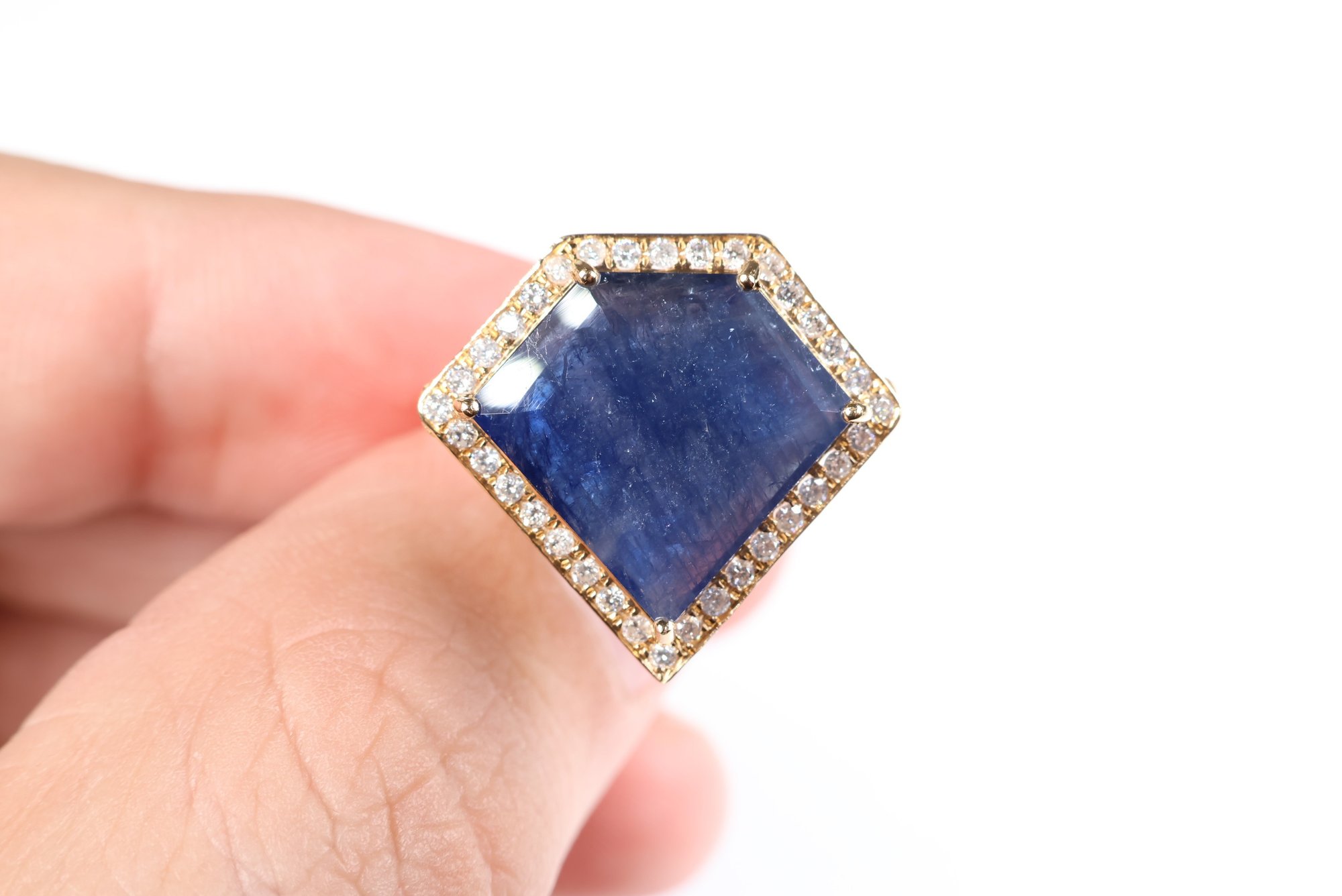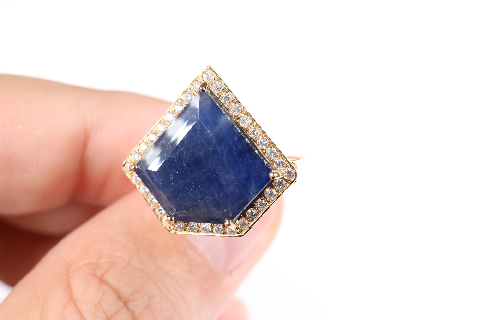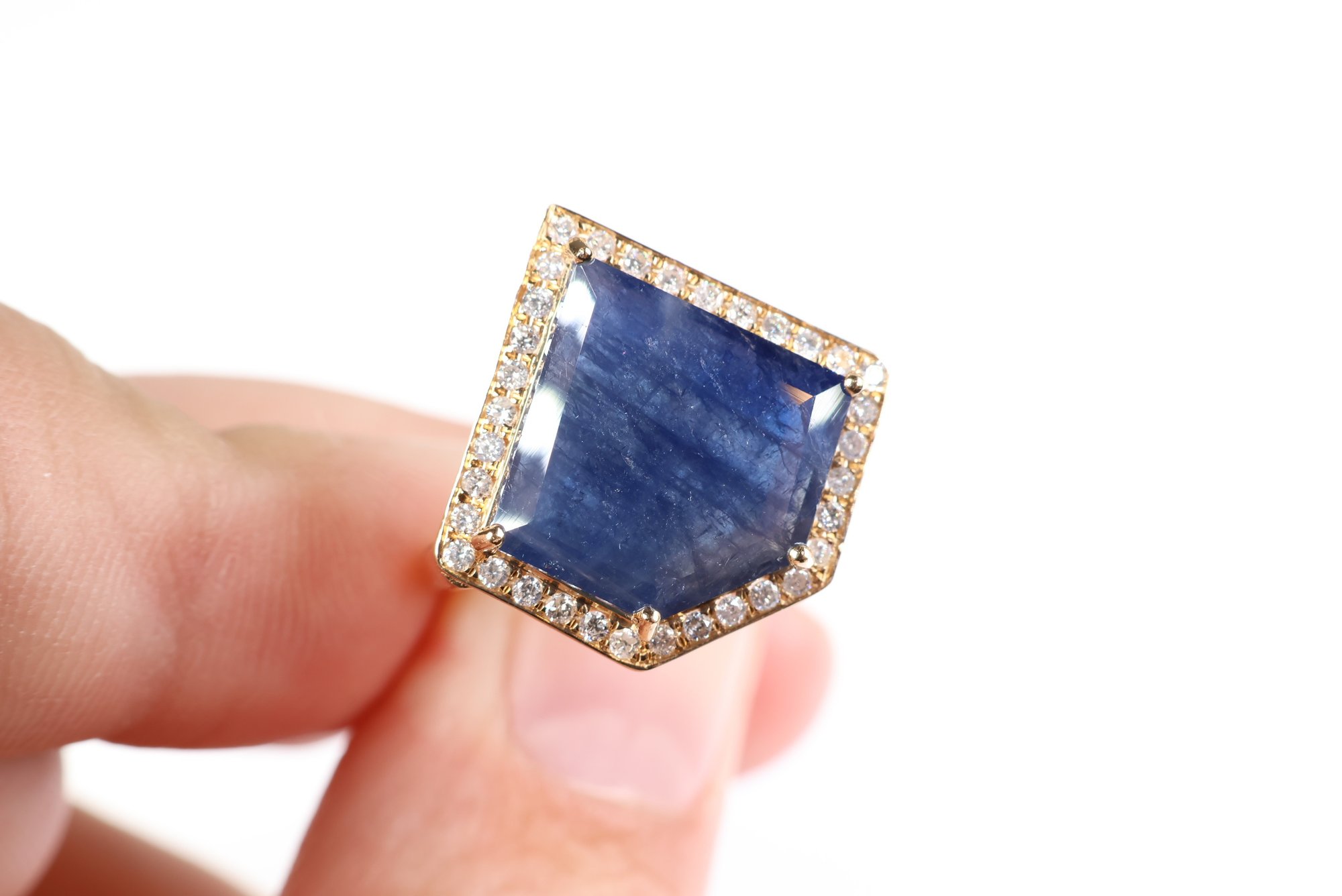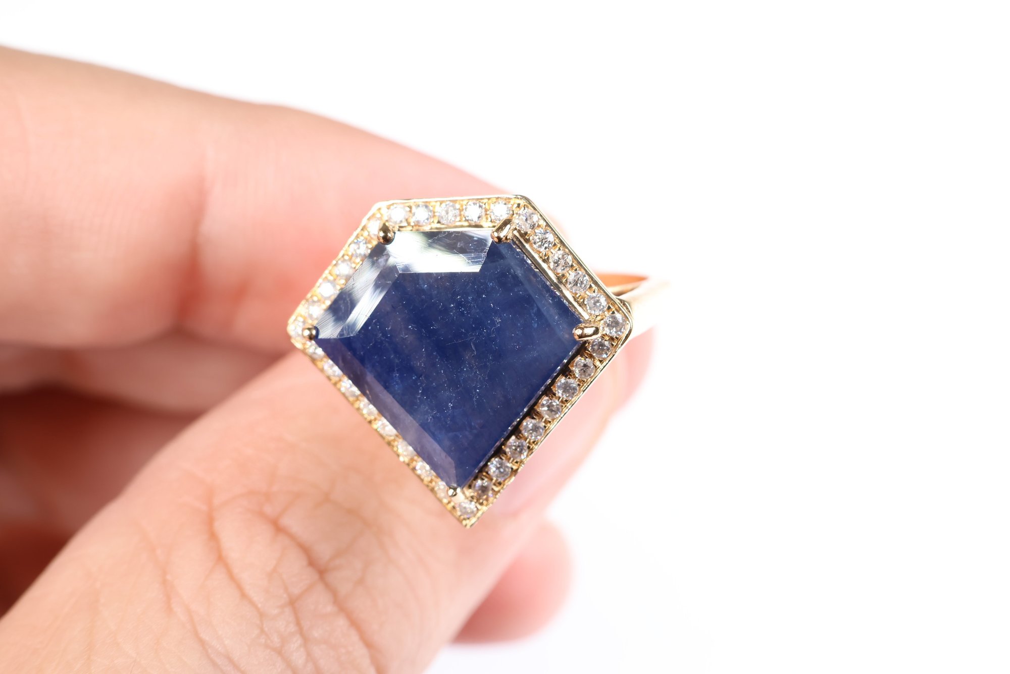 sapphire: 14.00 x 15.00 x 3.50 mm schiller or aventurescence effect under strong lighting