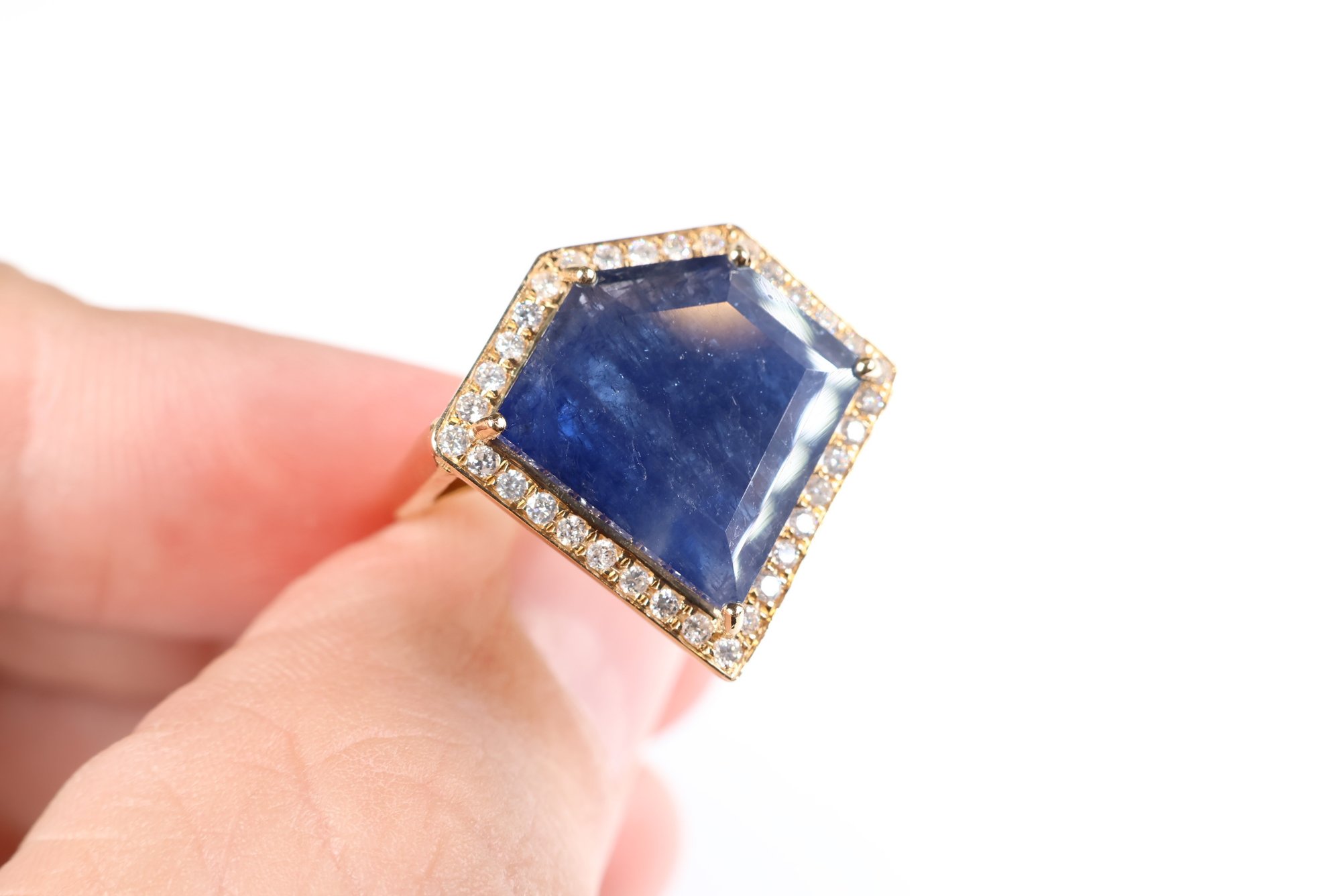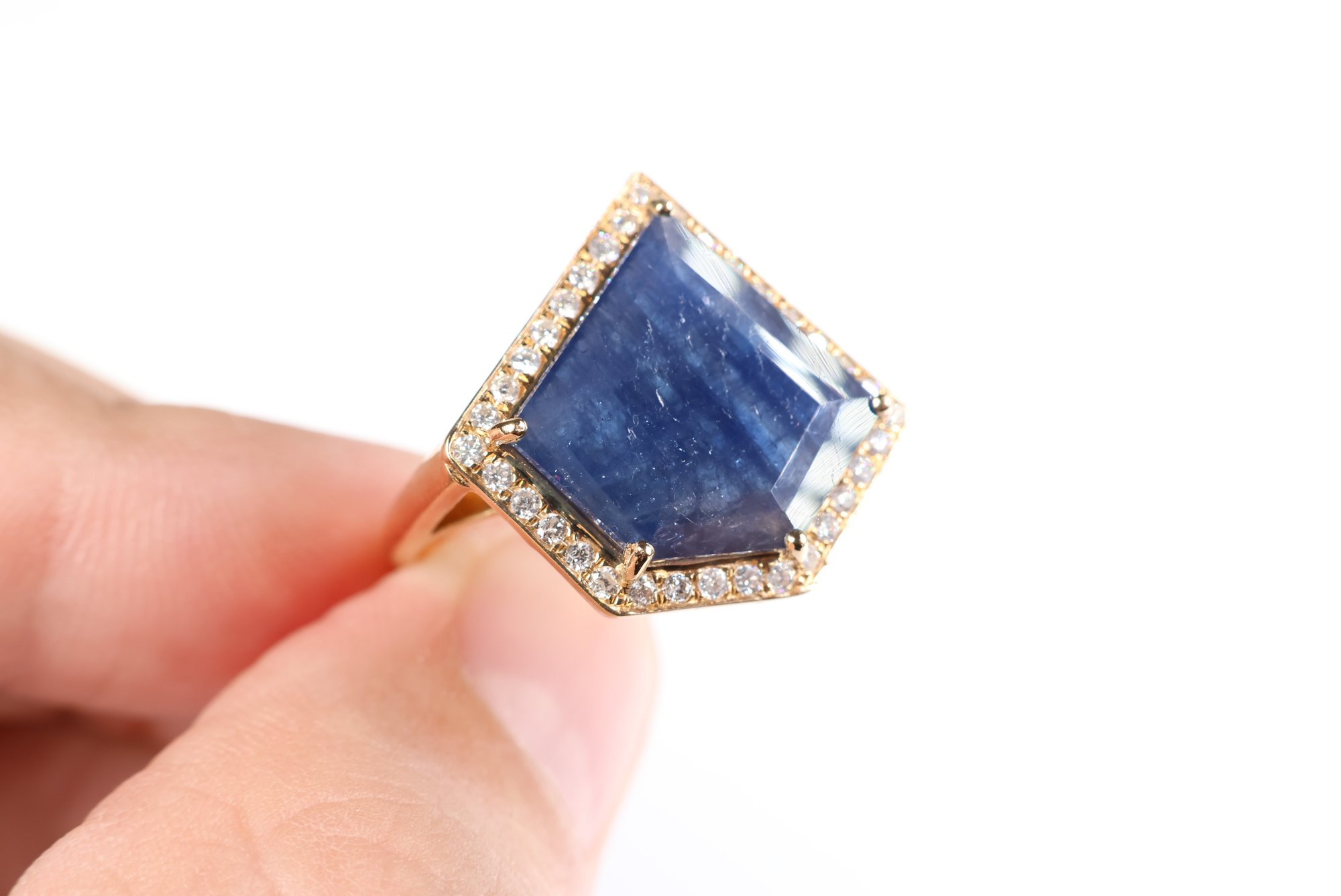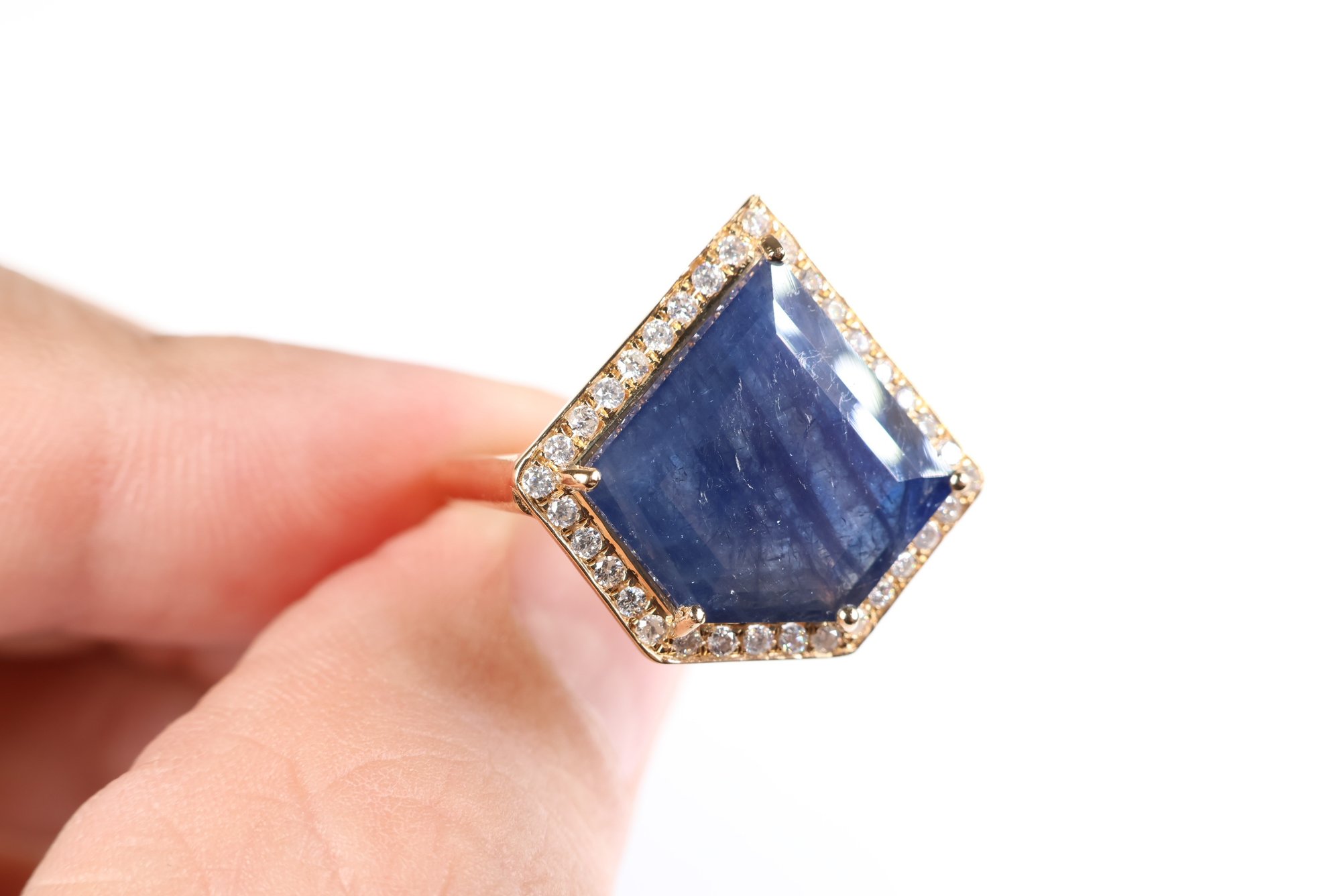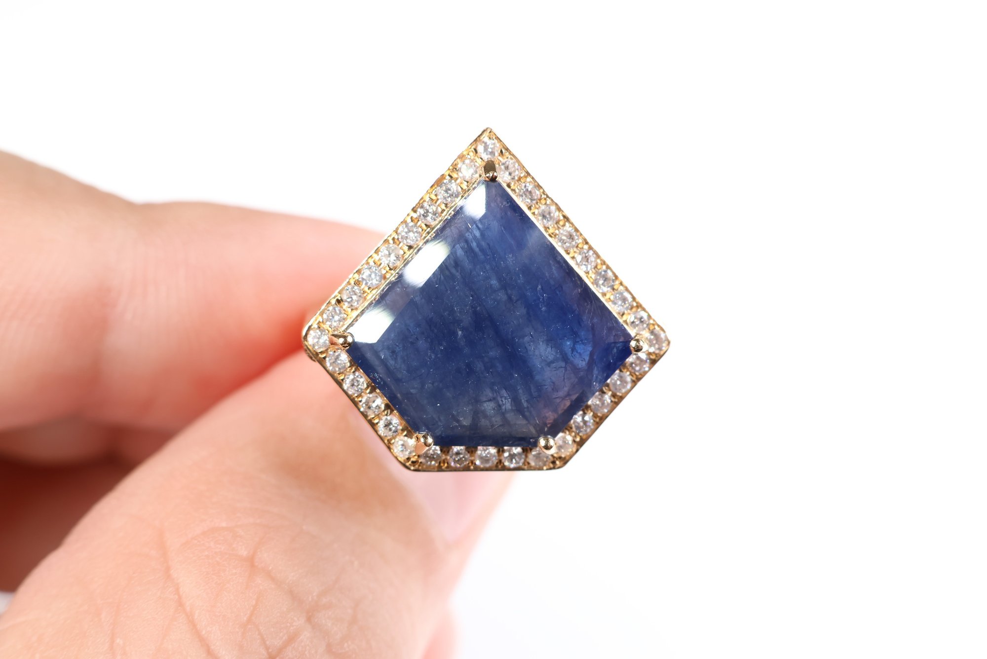 sapphire: 14.00 x 15.00 x 3.50 mm schiller or aventurescence effect under strong lighting