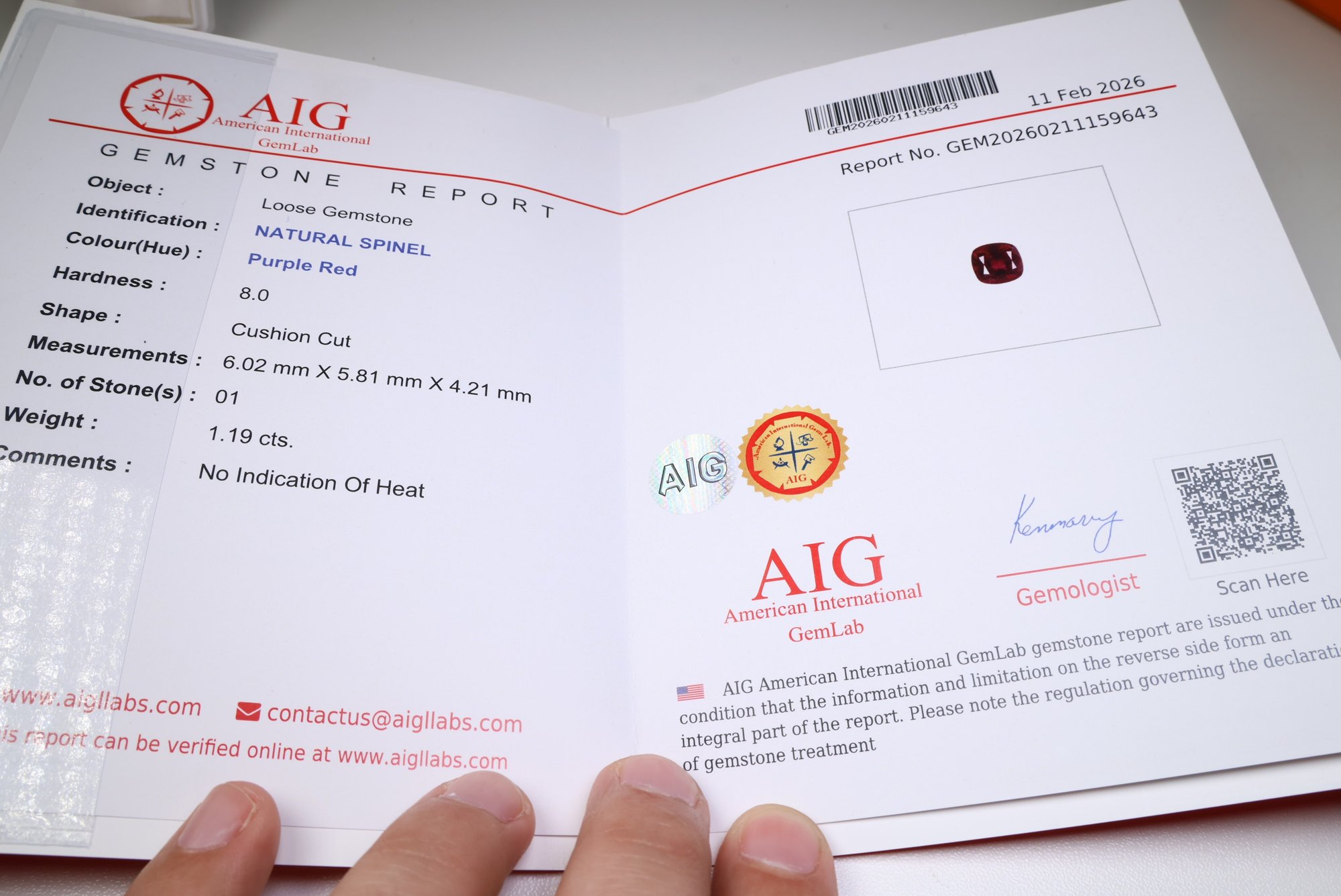 Natural Spinel 1.19ct AIG Report Gemstone Jewelry