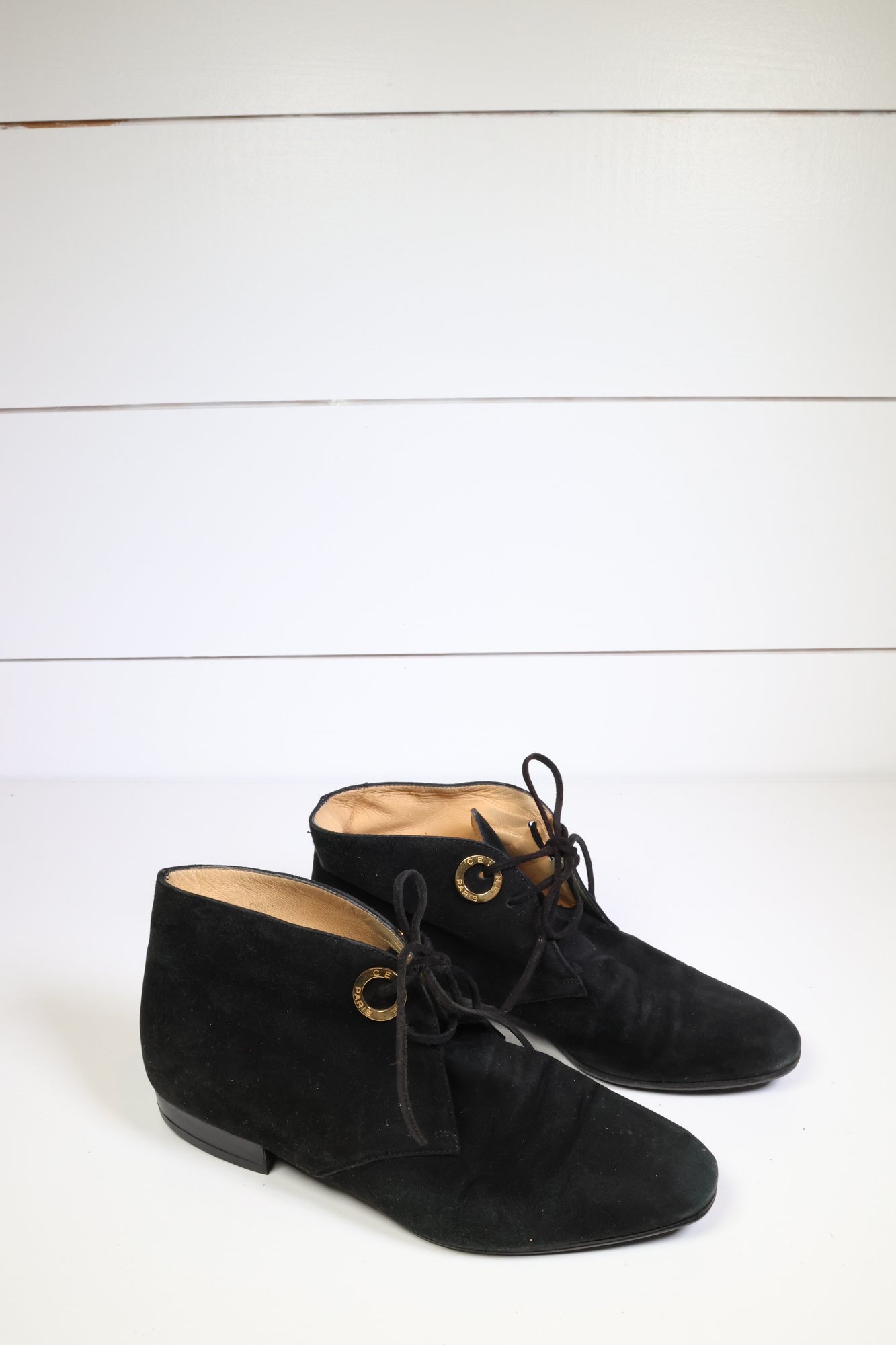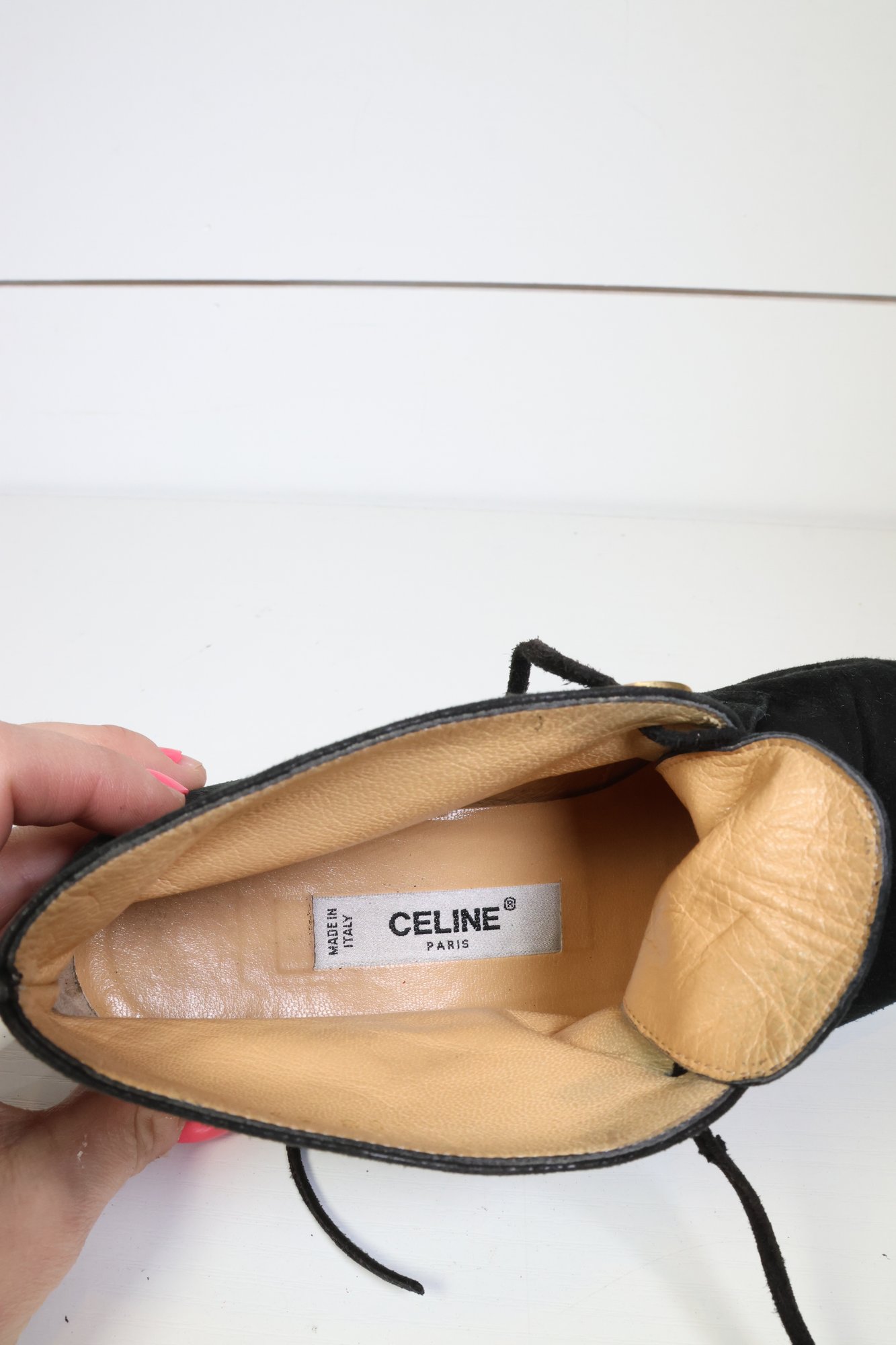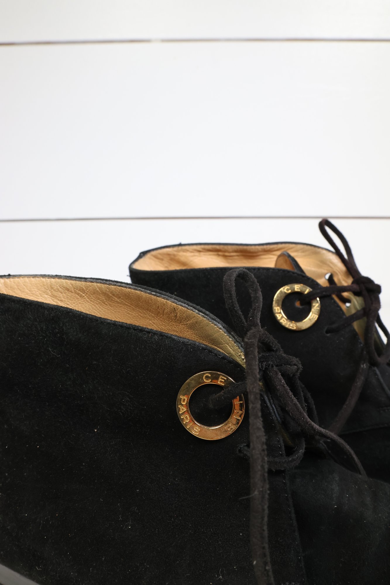 CELINE Black Suede High-Cut Lace-Up Shoe Size 34 1/2