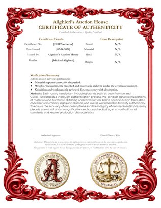 We work hard to provide accurate descriptions and professional evaluations. Luxury items (including brands such as Louis Vuitton and Gucci) undergo authentication checks such as material quality, craftsmanship, brand-specific traits, and serial/production identifiers. Metals may be acid tested, and gemstones may be evaluated using tools including a Presidium Gem Tester II, UV fluorescence, a polariscope, and a trinocular stereoscope (up to 90x magnification). However, these efforts do not constitute a warranty or guarantee, and all items remain sold as-is, where-is.