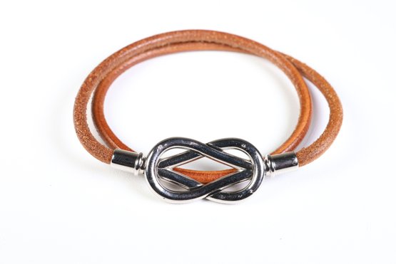 Hermes Ataume Choker Bracelet Brown & Silver Leather