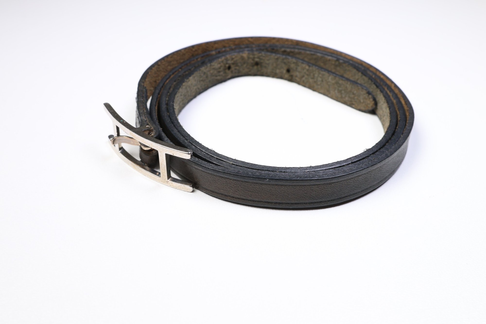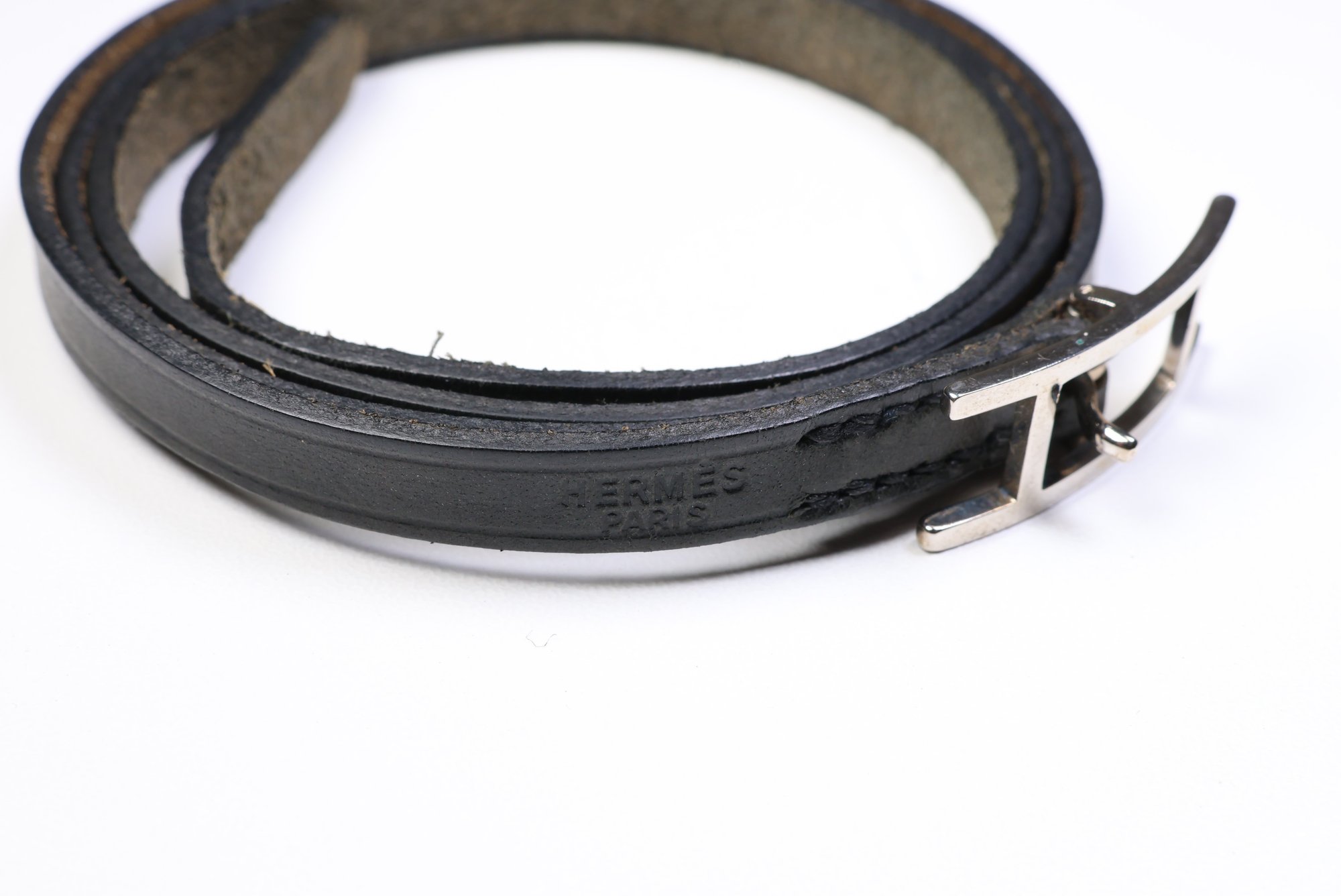 HERMES Belt Buckle Bracelet & Choker Palladium Hardware & Black Leather Authentic