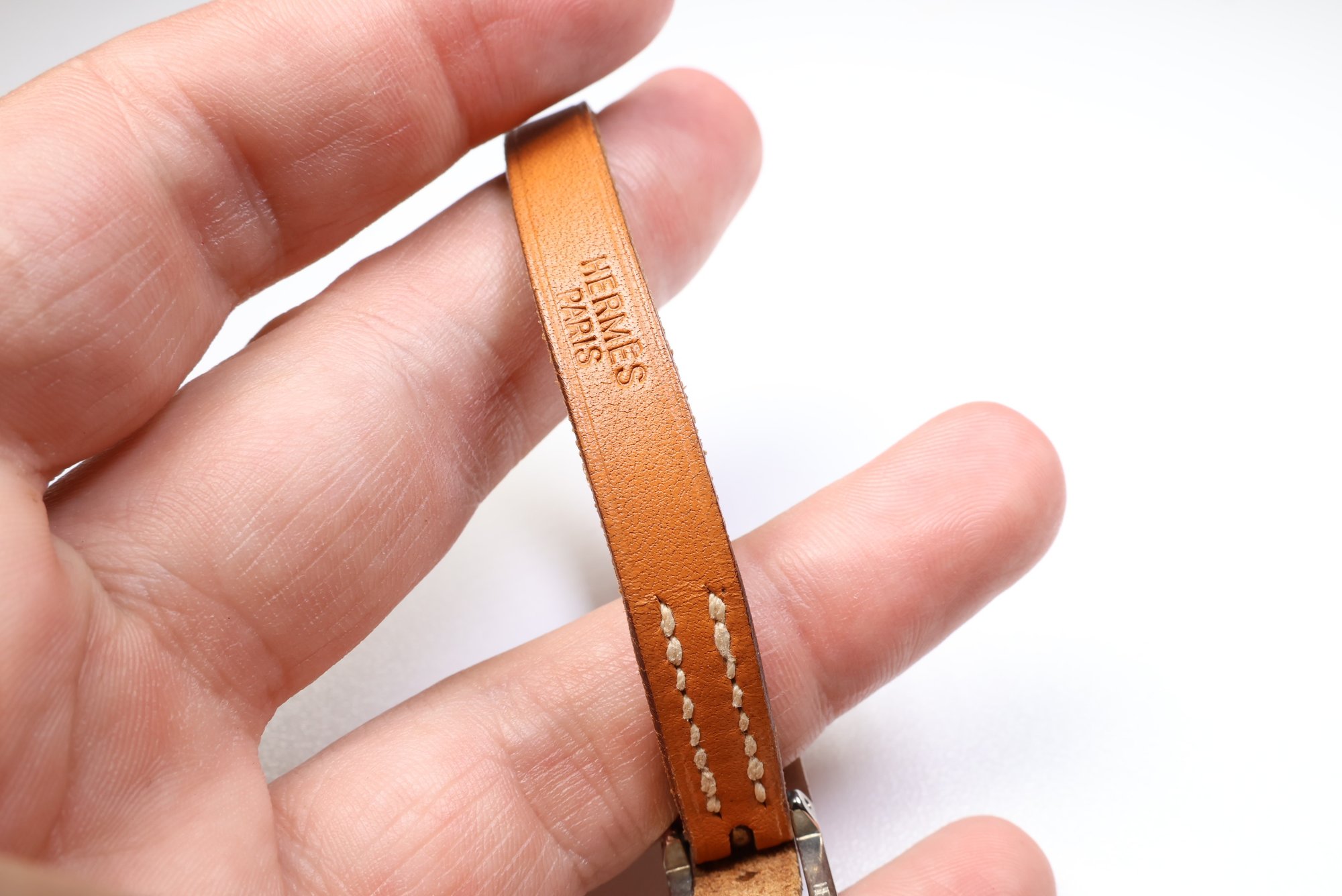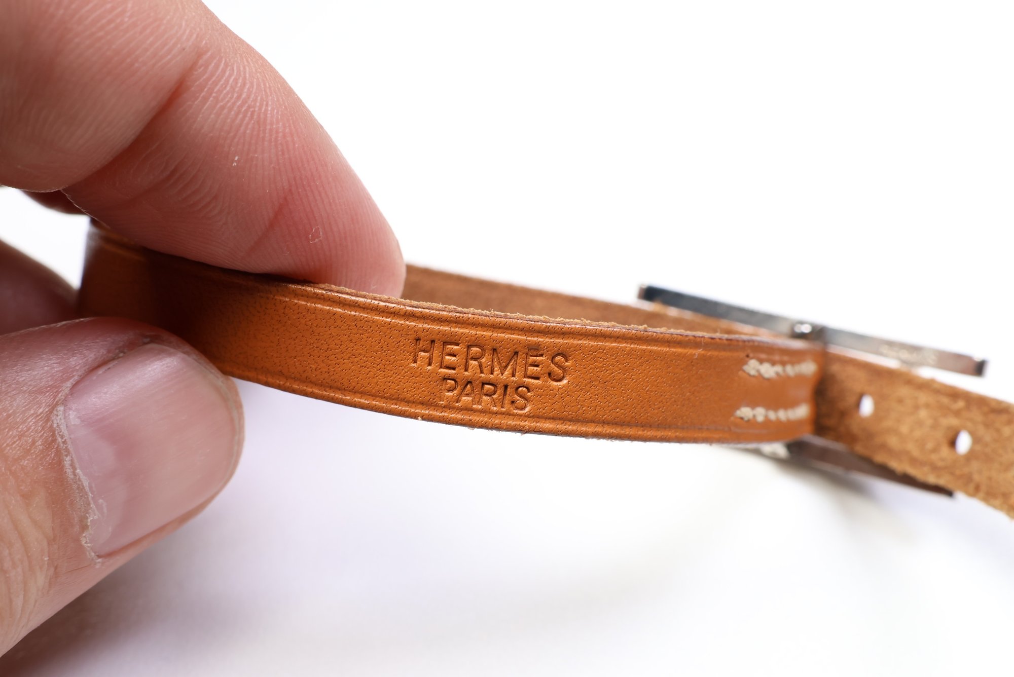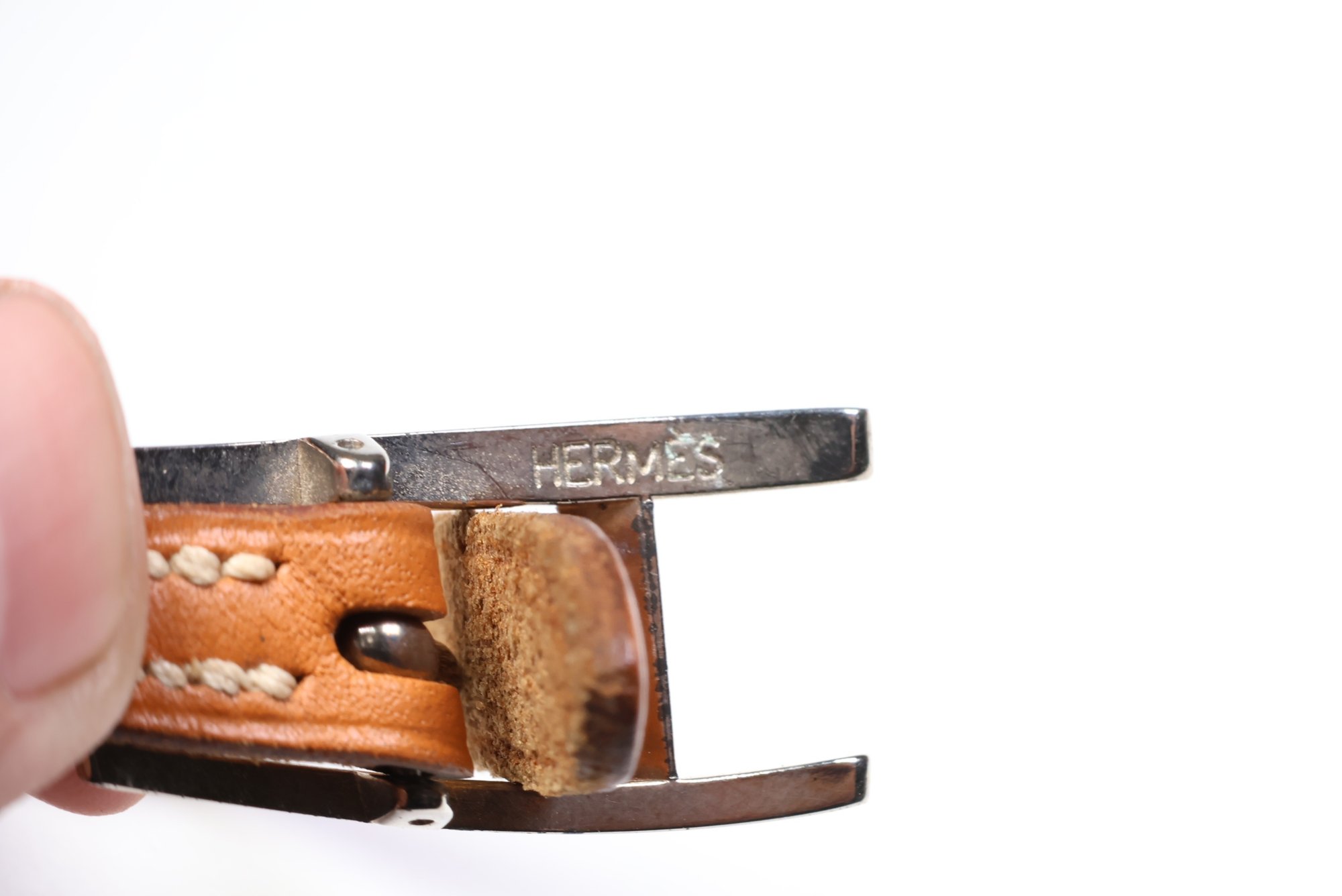 HERMES Belt Buckle Bracelet & Choker Palladium Hardware & Brown Leather Authentic