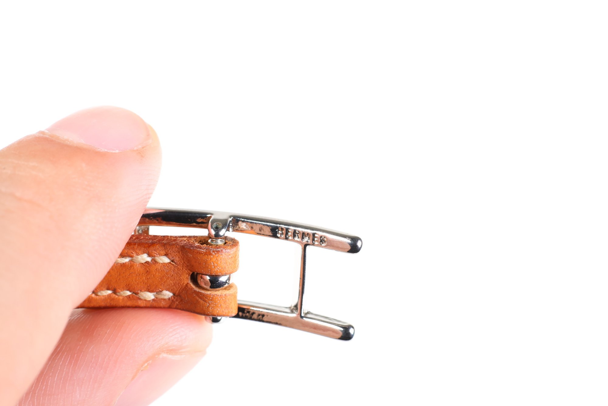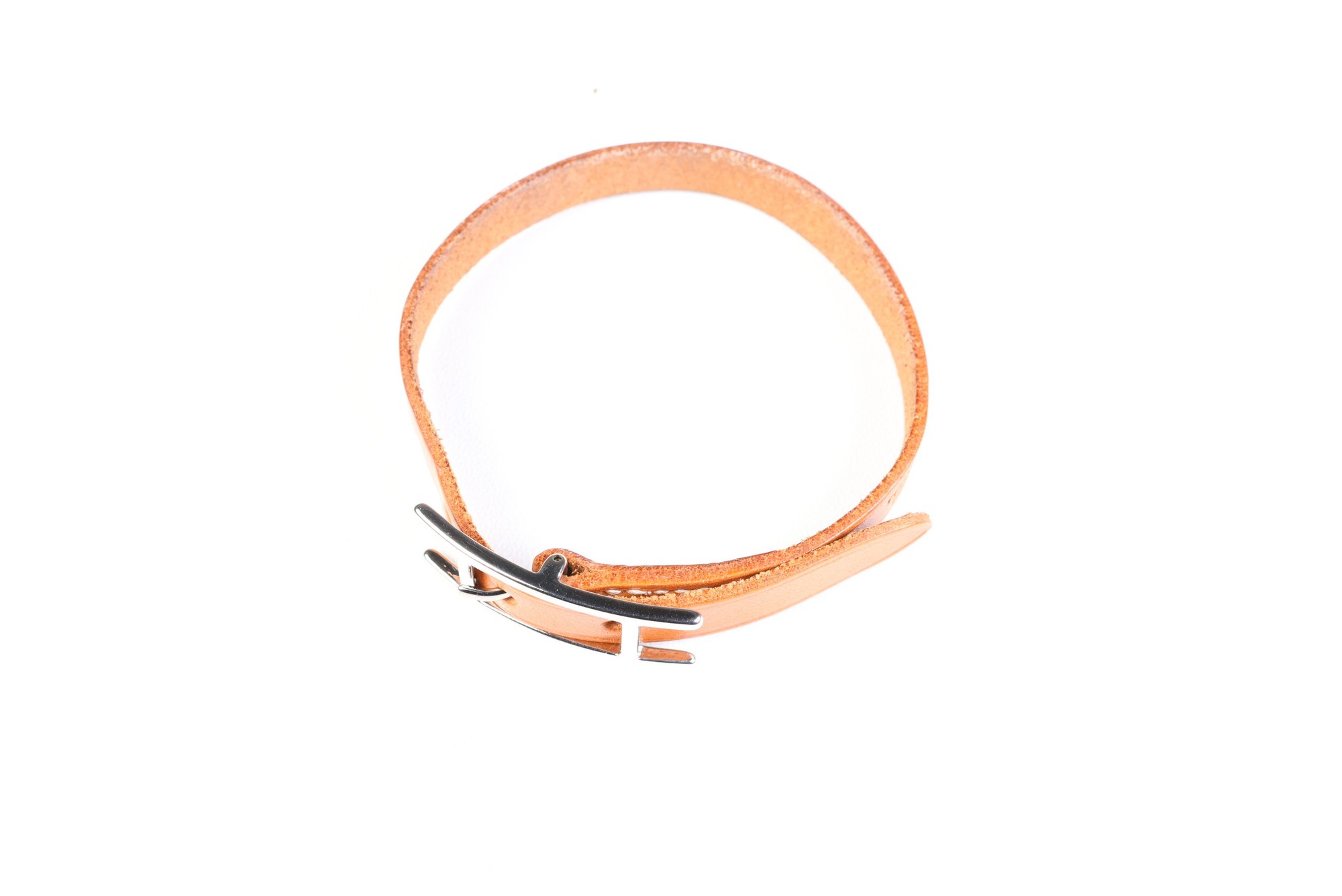 HERMES Belt Buckle Bracelet Palladium Hardware & Brown Leather Authentic
