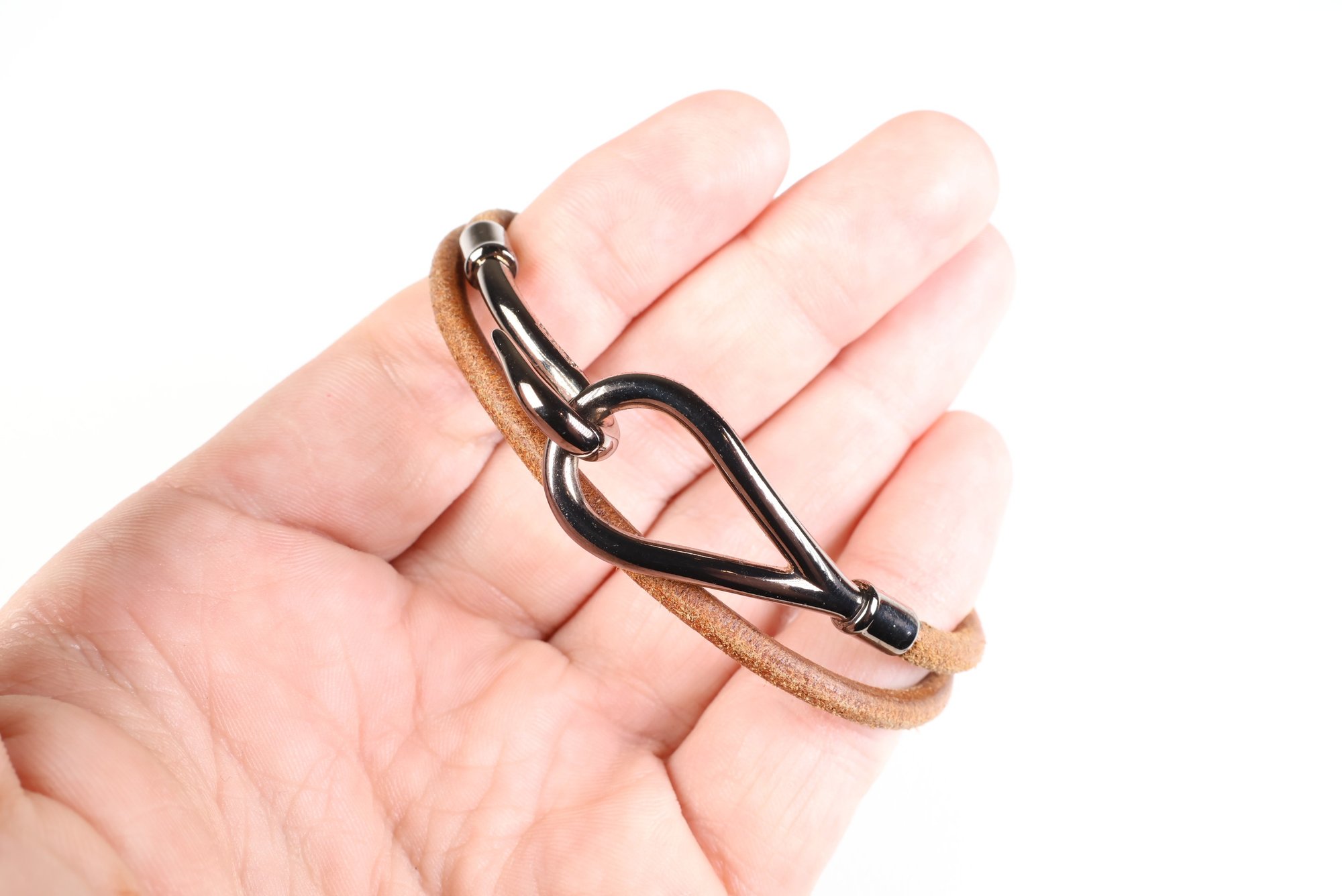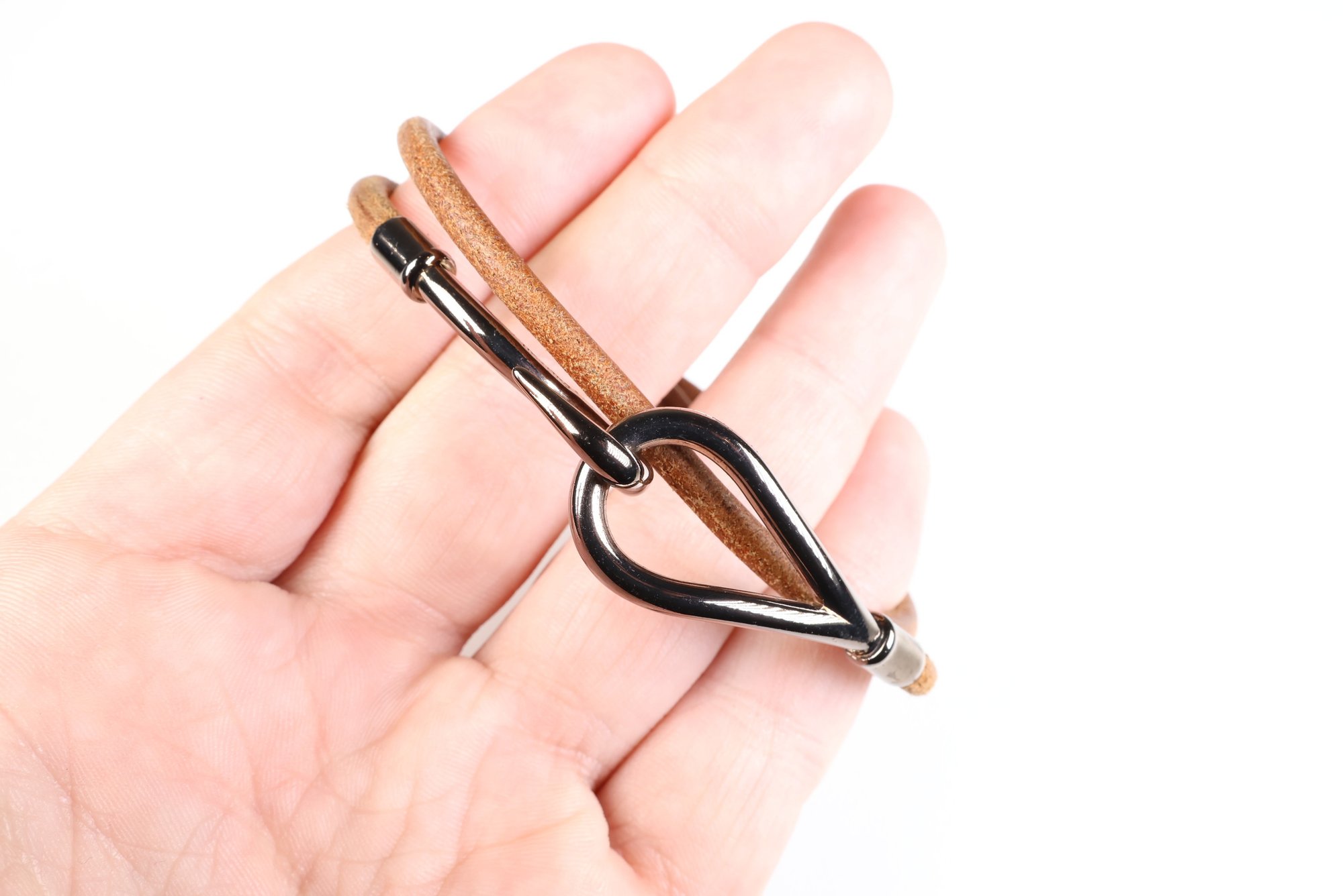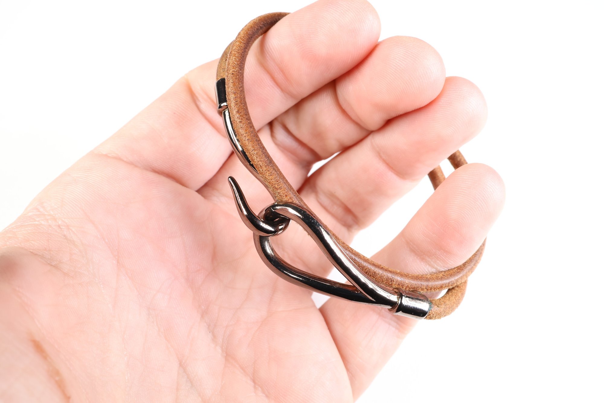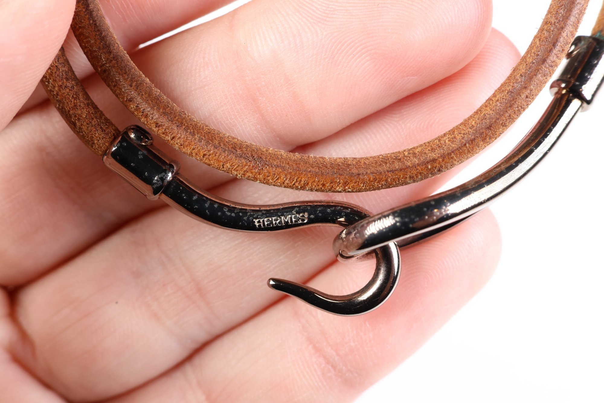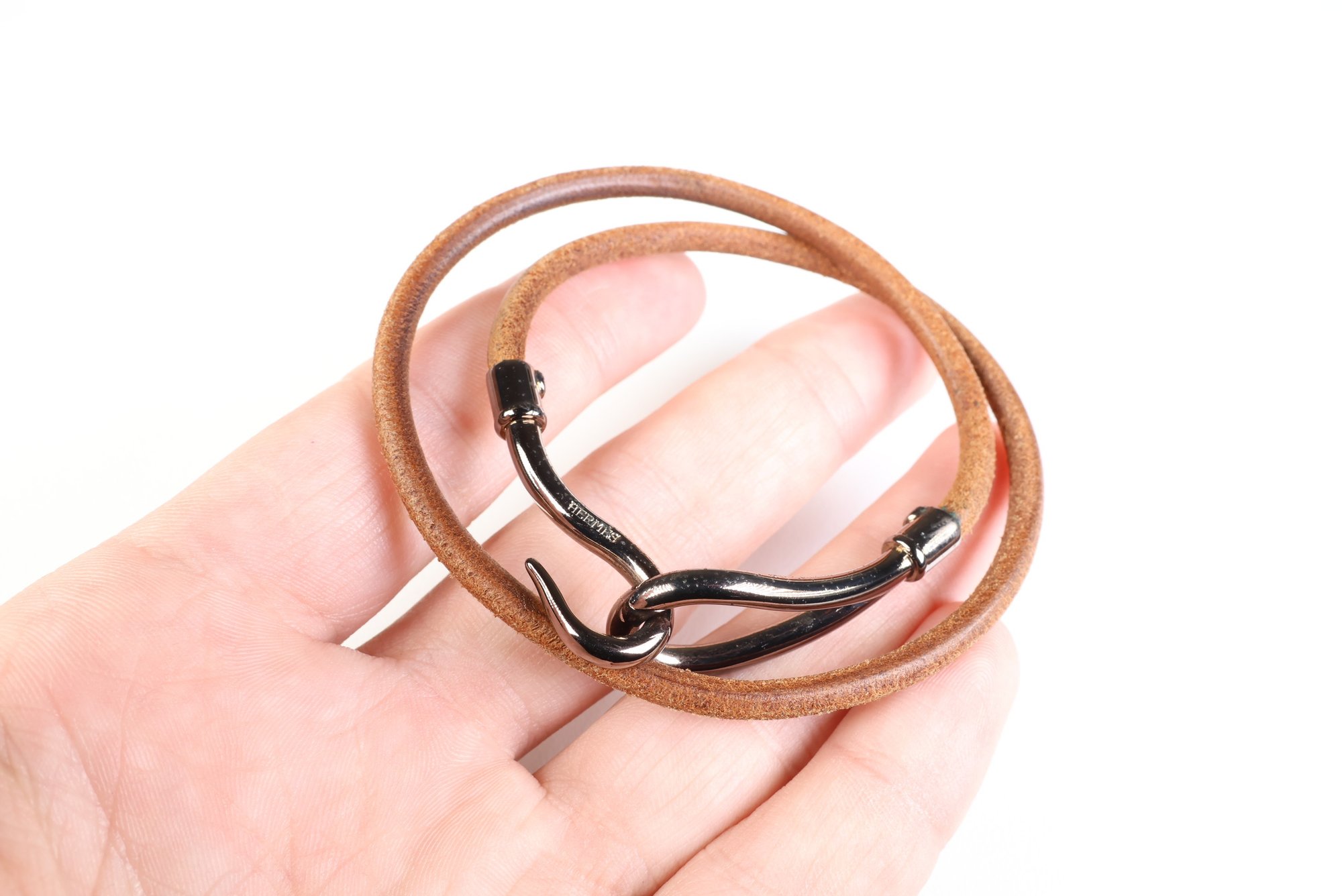 HERMES Jumbo Hook Double Tour Bracelet Gunmetal Hardware & Brown Leather Authentic