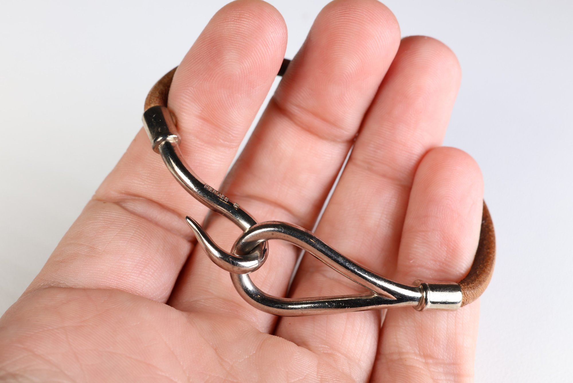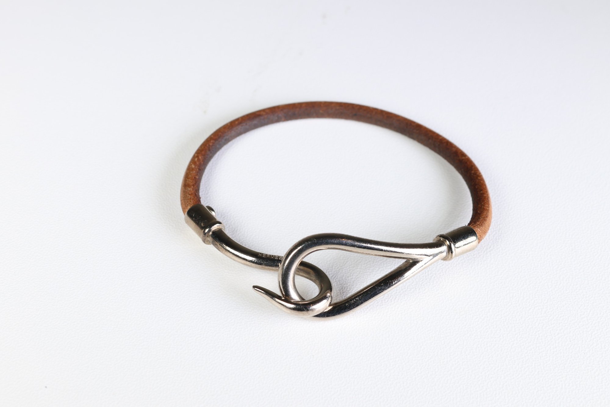 Hermes Jumbo Hook Tour Bracelet Palladium Hardware & Brown Leather