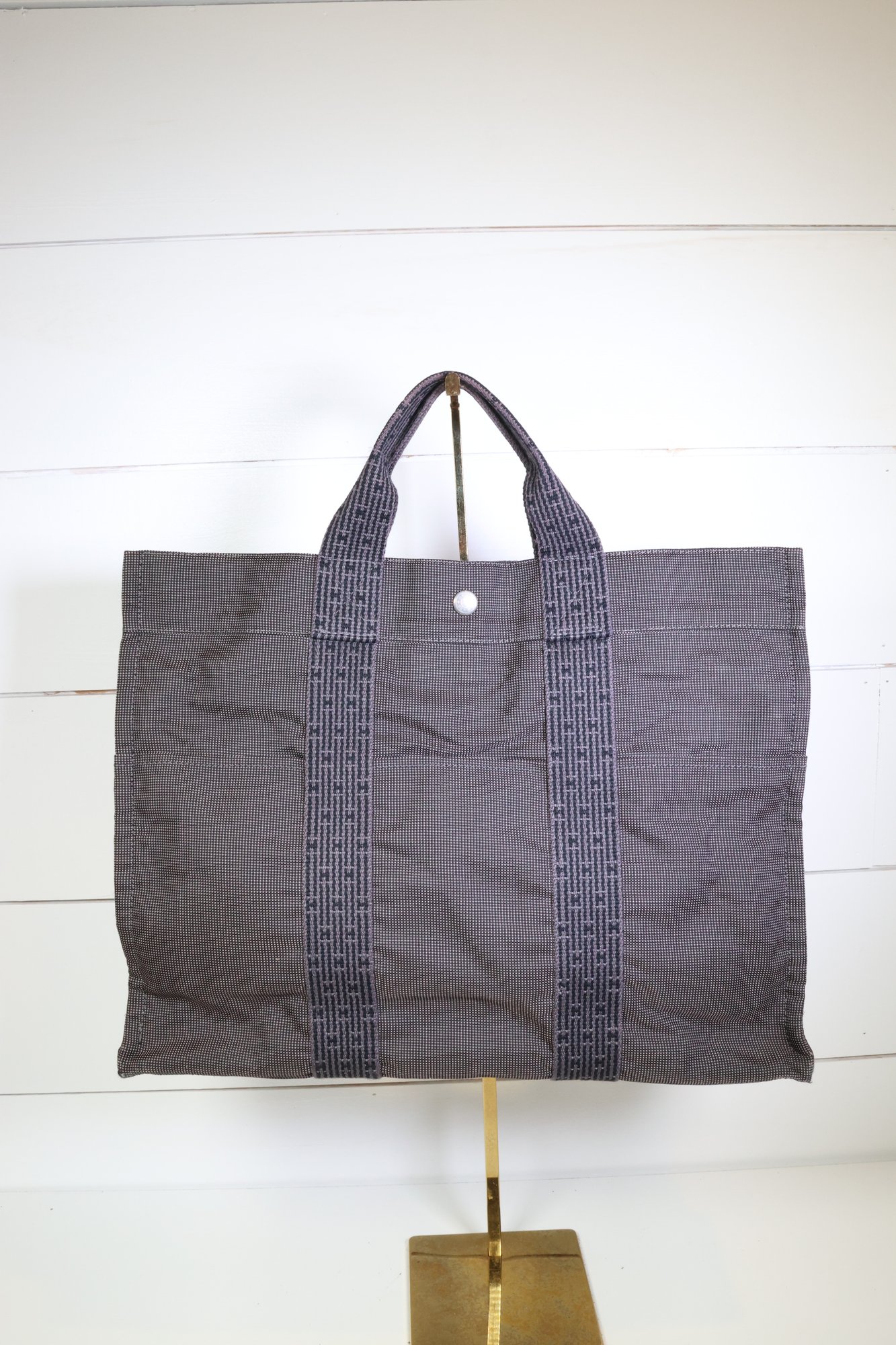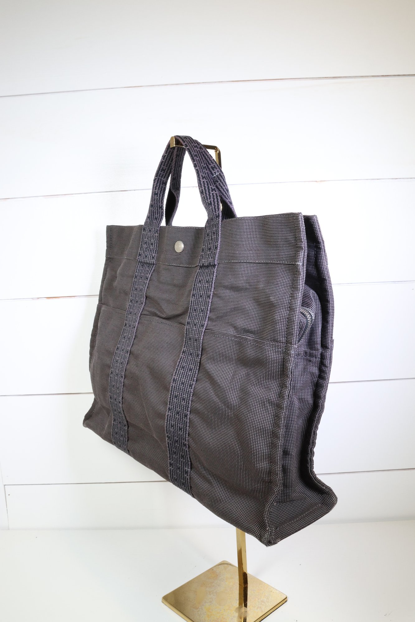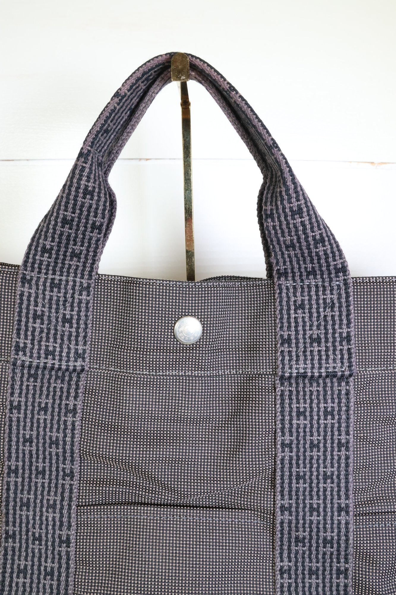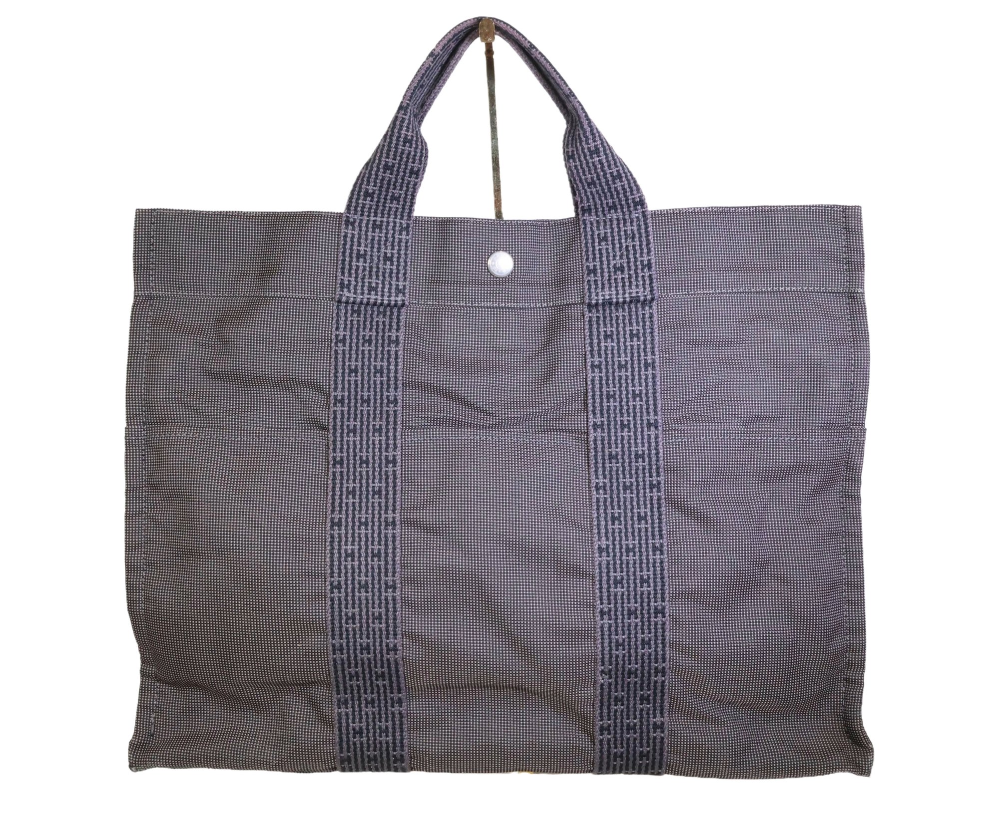Herms Toile Herline MM Grey Handle Bag Handbag Purse