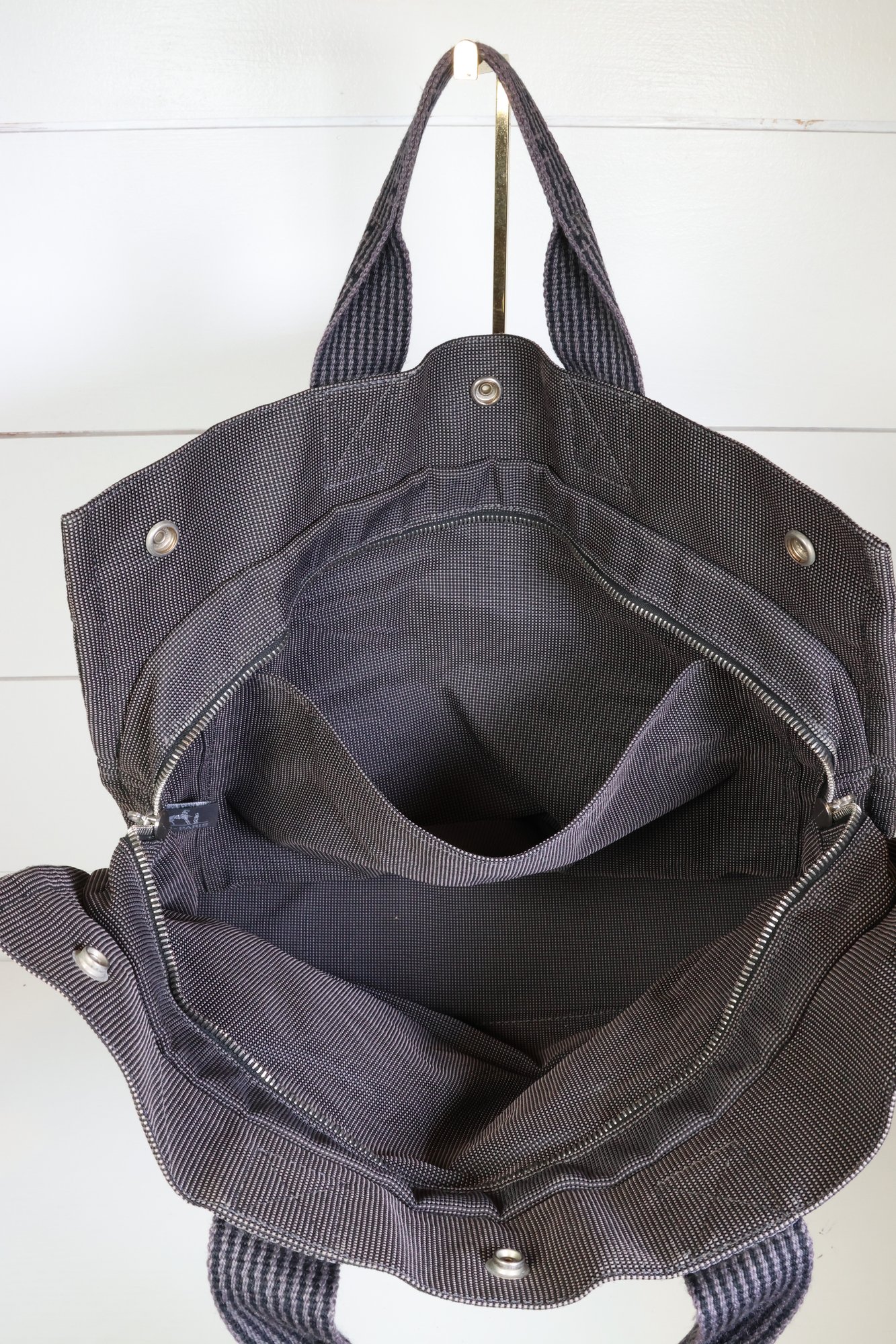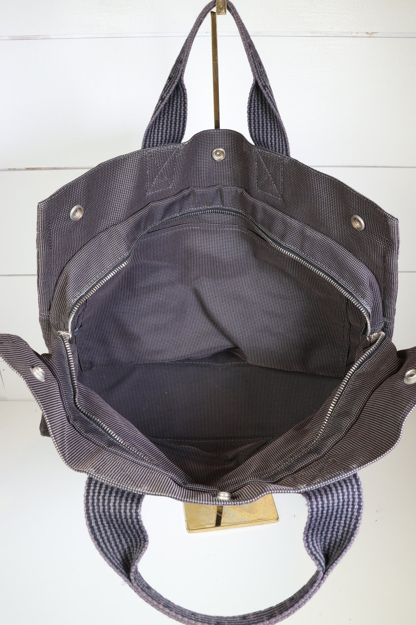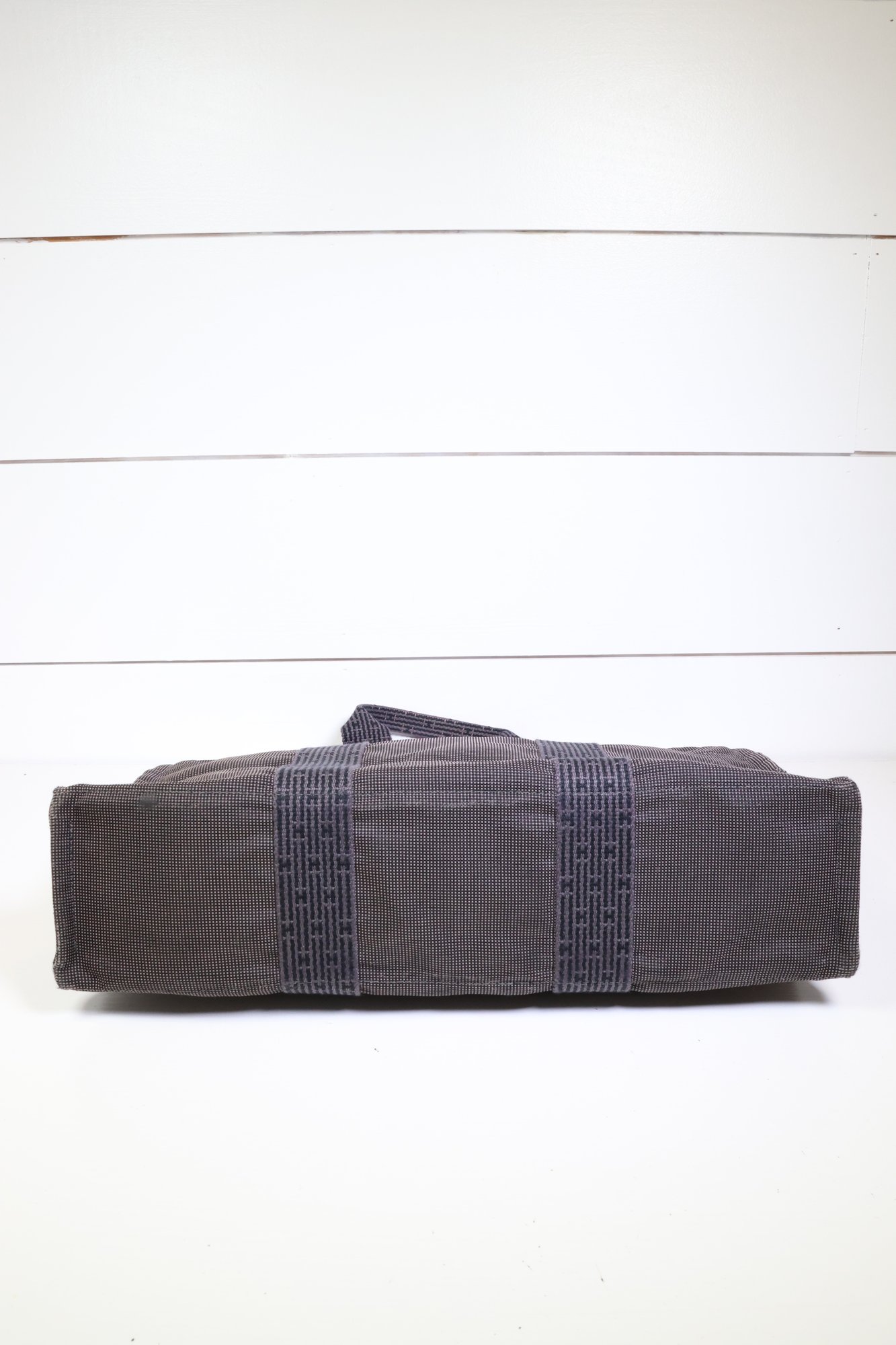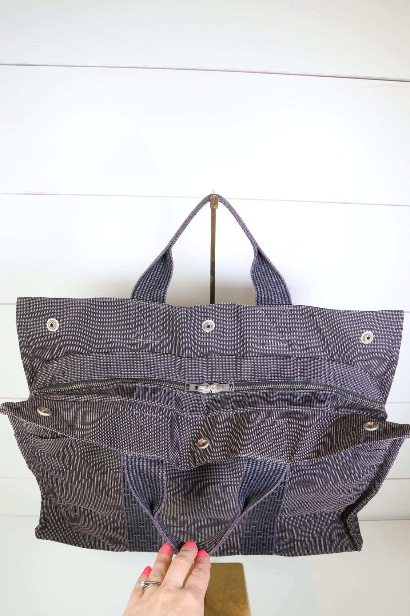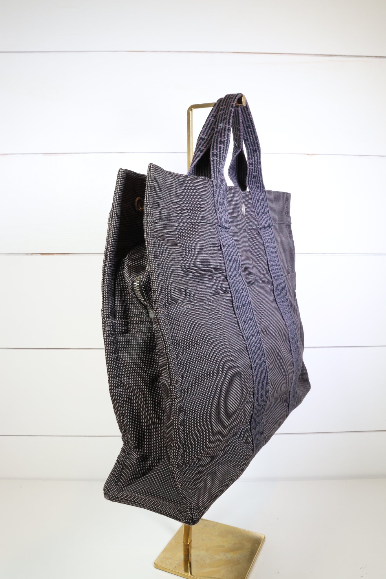 Herms Toile Herline MM Grey Handle Bag Handbag Purse