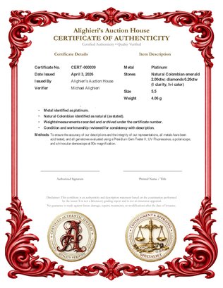 Welcome to Alighieri's Auction House and our fine jewelry, gemstones, luxury, and collectible auctions. Please read the following terms carefully before bidding. By registering and/or placing a bid, you acknowledge and agree to all terms below.