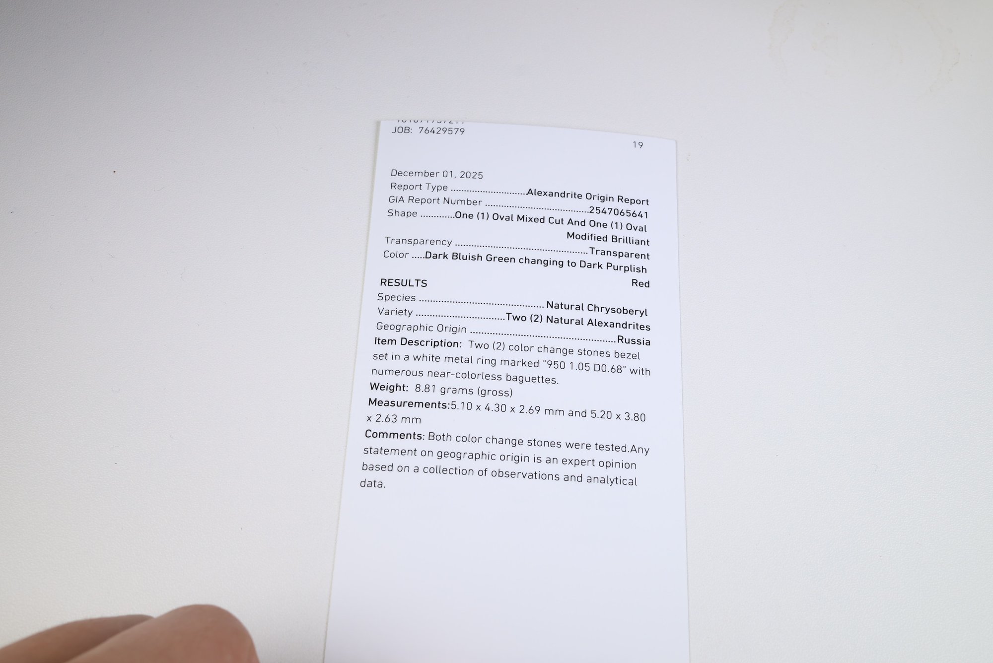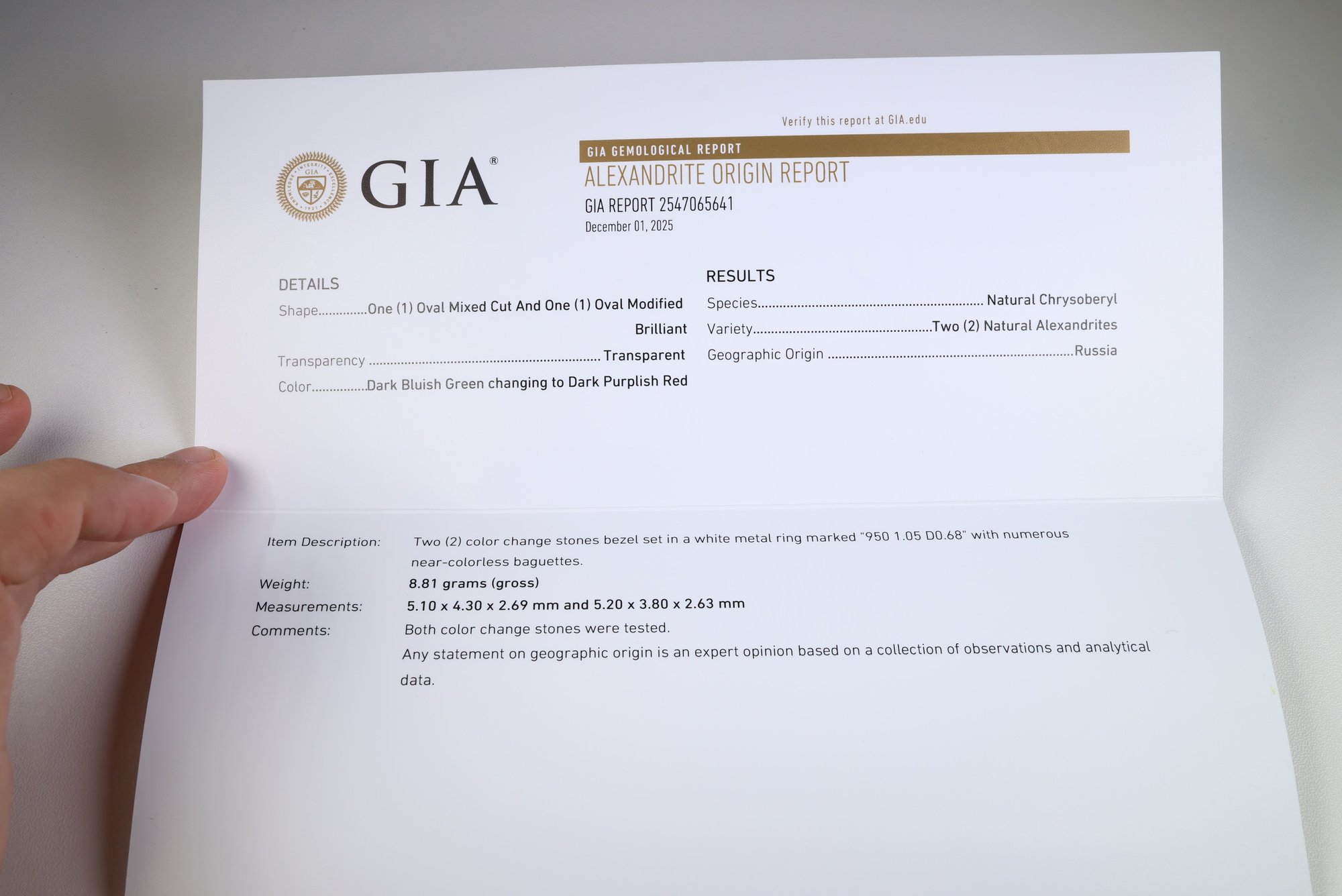 GIA certified natural Russian alexandrite 1.05ct GIA REF : 2547065641
