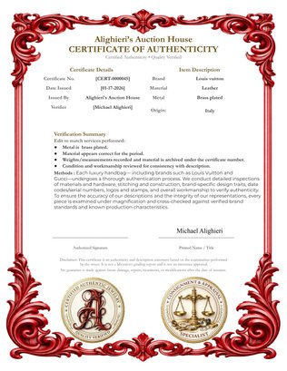 We work hard to provide accurate descriptions and professional evaluations. Luxury items (including brands such as Louis Vuitton and Gucci) undergo authentication checks such as material quality, craftsmanship, brand-specific traits, and serial/production identifiers. Metals may be acid tested, and gemstones may be evaluated using tools including a Presidium Gem Tester II, UV fluorescence, a polariscope, and a trinocular stereoscope (up to 90x magnification). However, these efforts do not constitute a warranty or guarantee, and all items remain sold as-is, where-is.