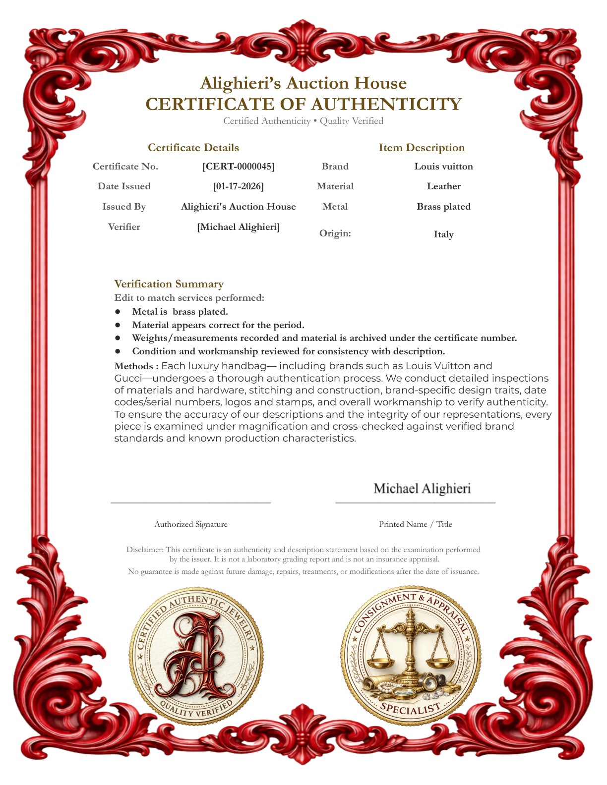 Welcome to Alighieri’s Auction House and our fine jewelry, gemstones, luxury, and collectible auctions. Please read the following terms carefully before bidding. By registering and/or placing a bid, you acknowledge and agree to all terms below.