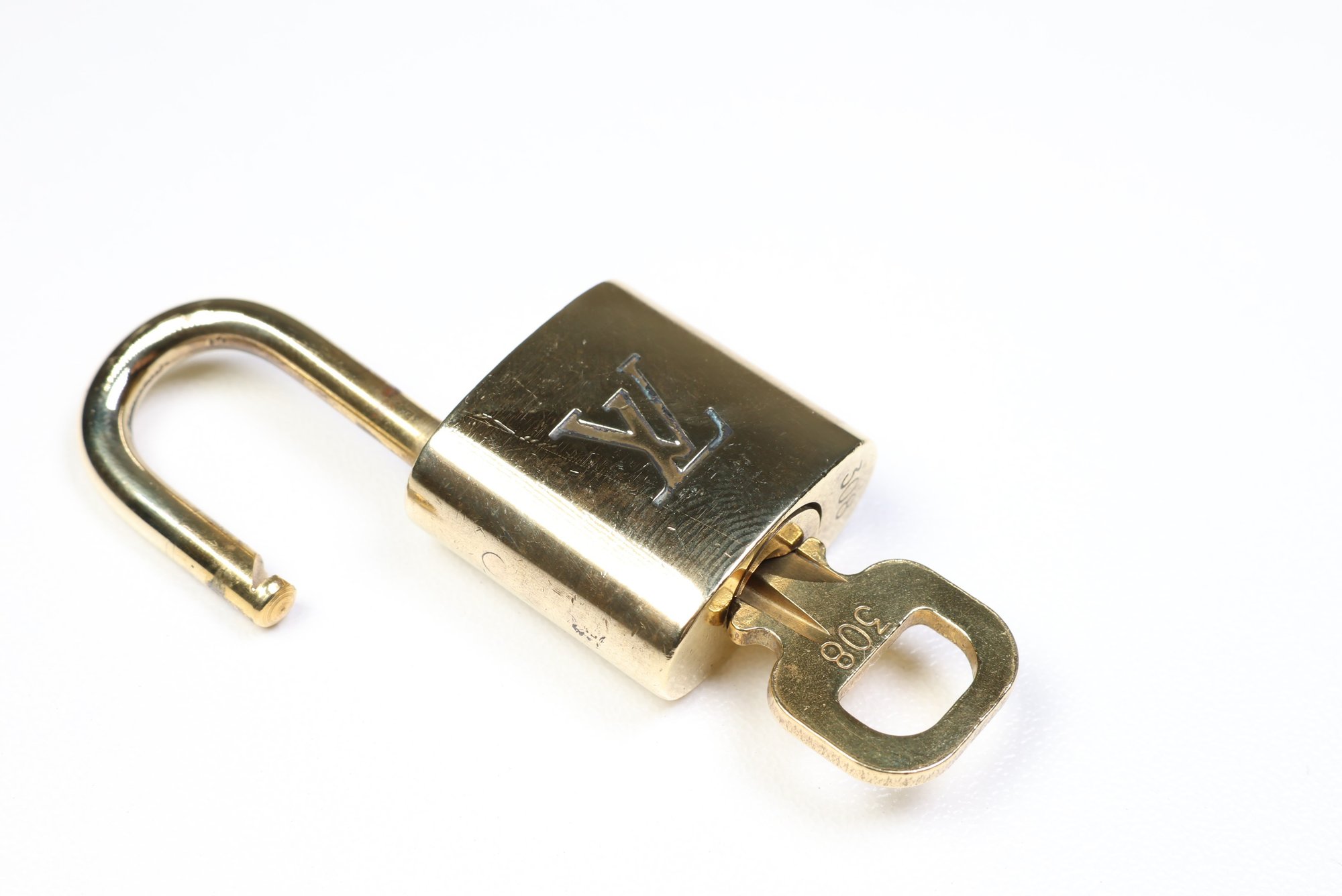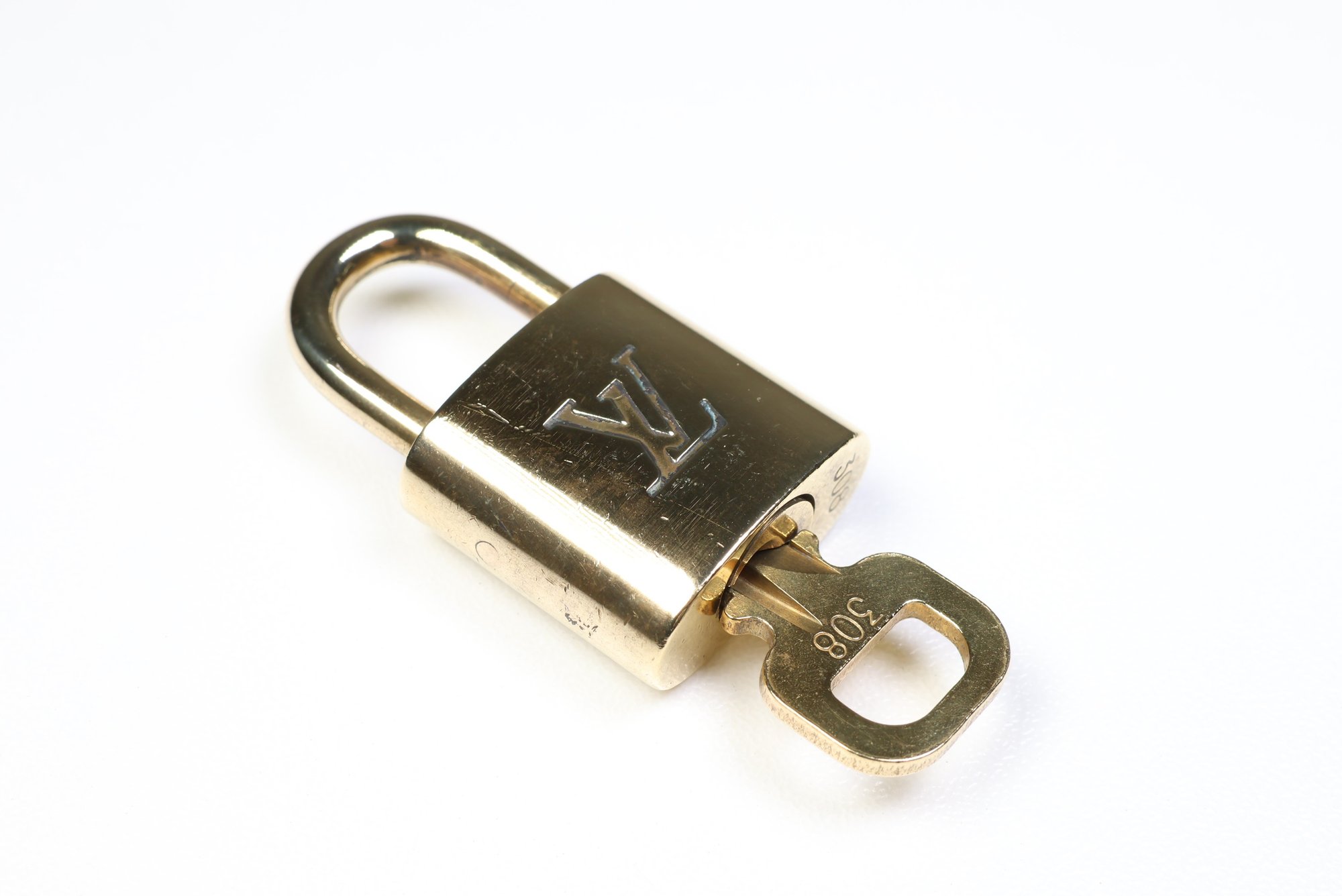 Louis Vuitton Pad Lock Lock & Key Brass Gold Key Number 308 Authentic