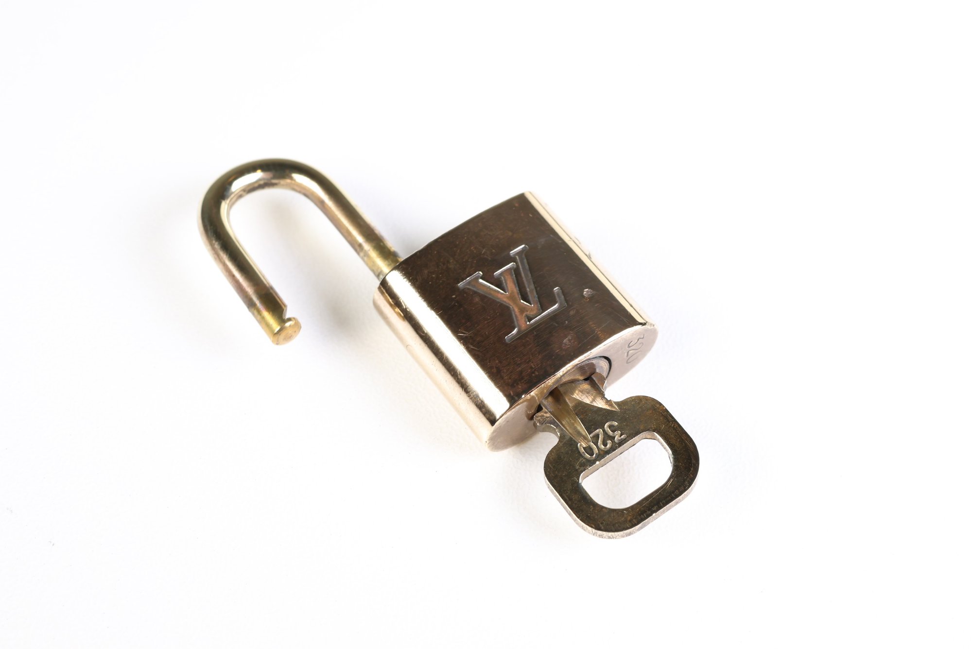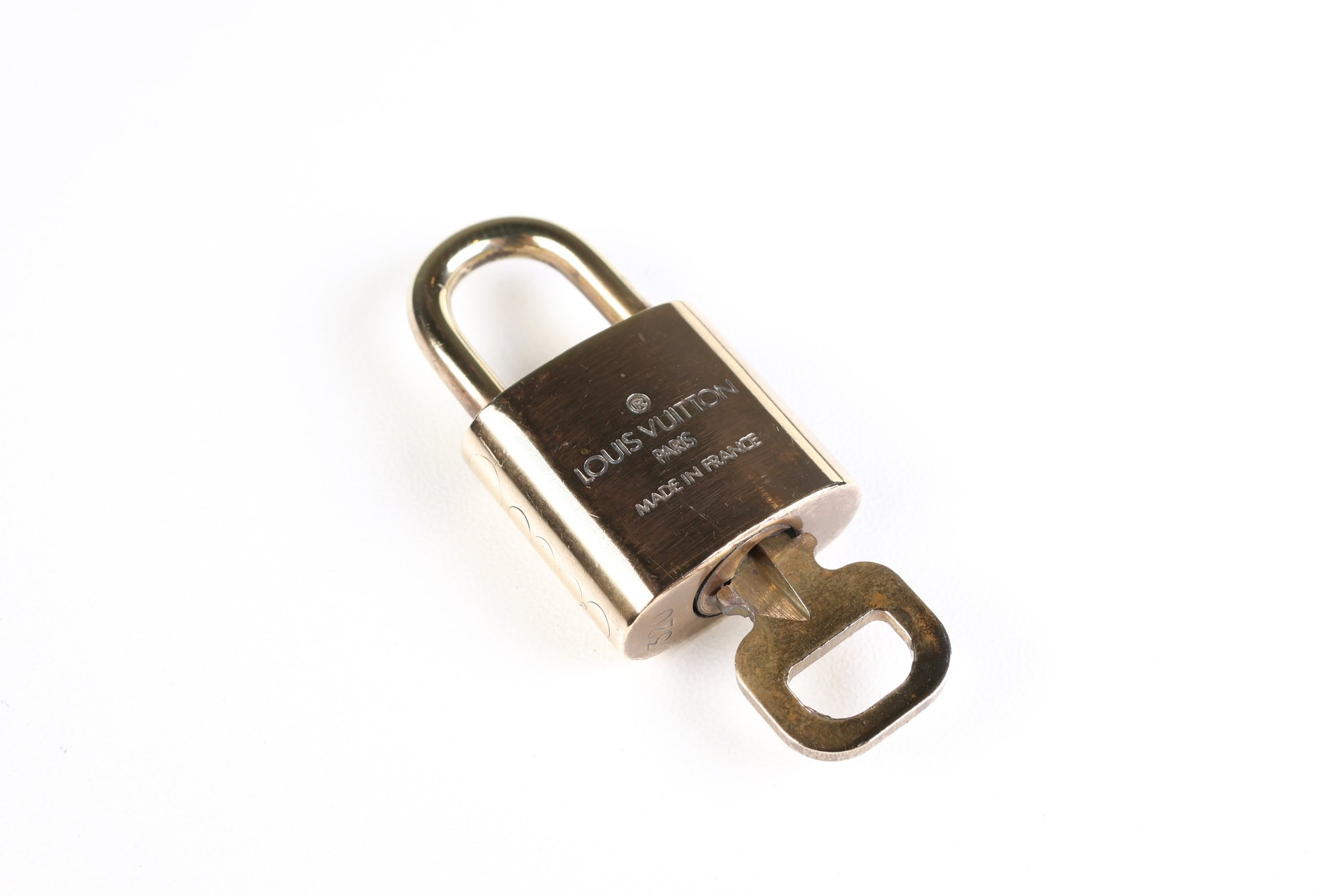Louis Vuitton Pad Lock Lock & Key Brass Gold Key Number 320 Authentic