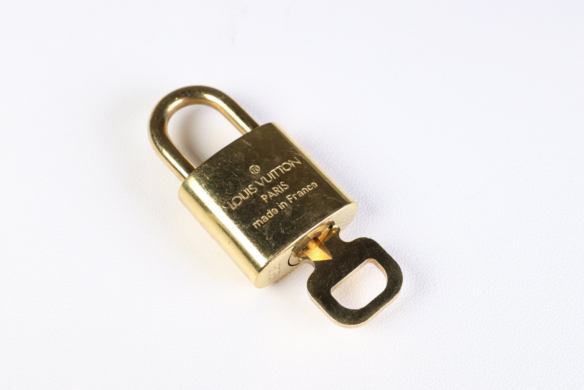 Louis Vuitton Pad Lock Lock & Key Brass Gold Key Number 323 Authentic