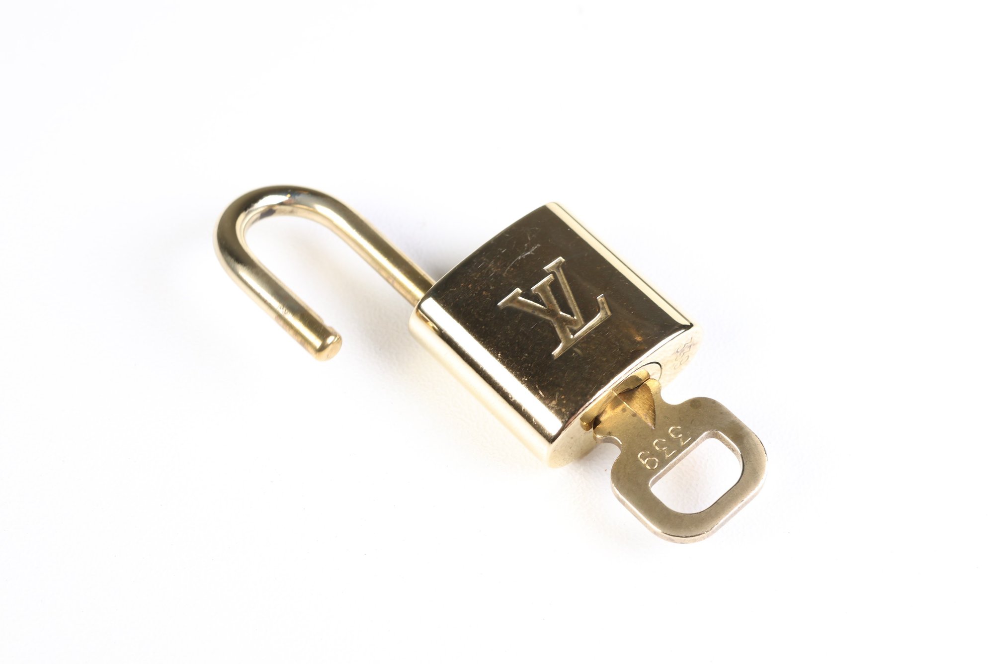 Louis Vuitton Pad Lock Lock & Key Brass Gold Key Number 339 Authentic