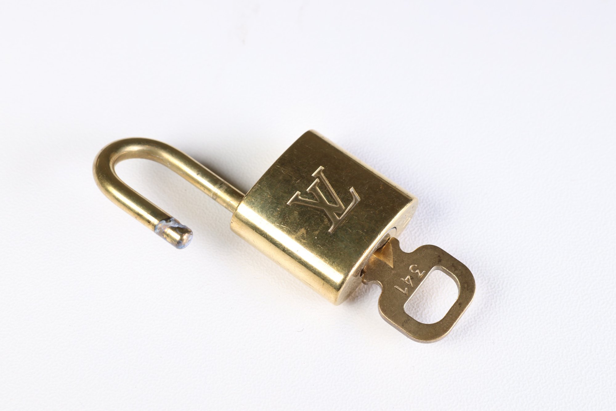 Louis Vuitton Pad Lock Lock & Key Brass Gold Key Number 341 Authentic