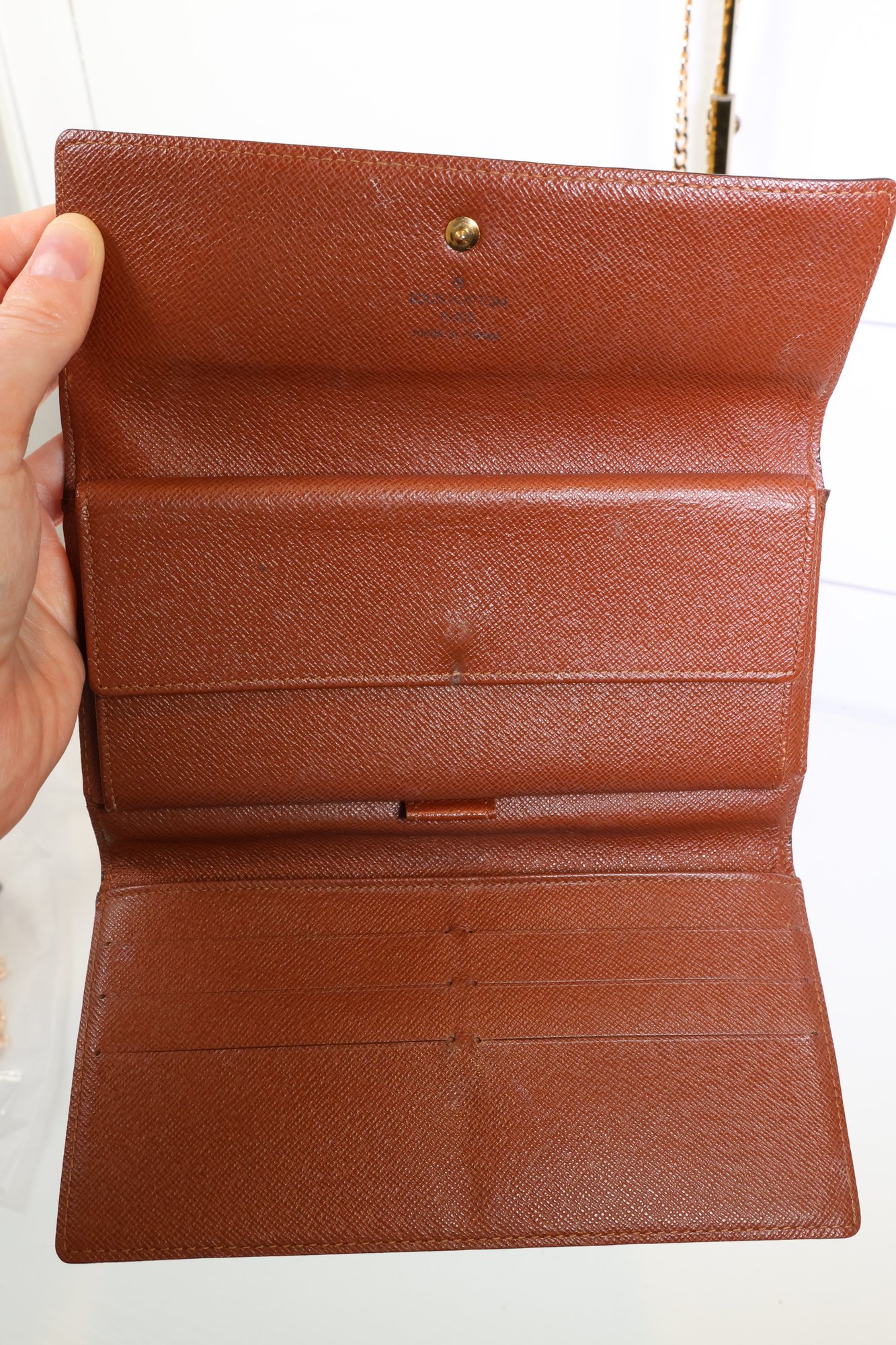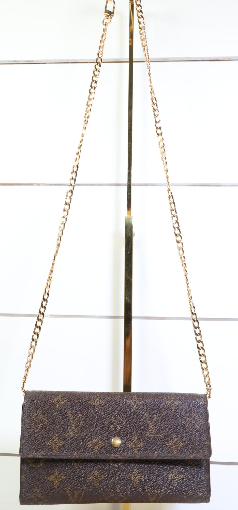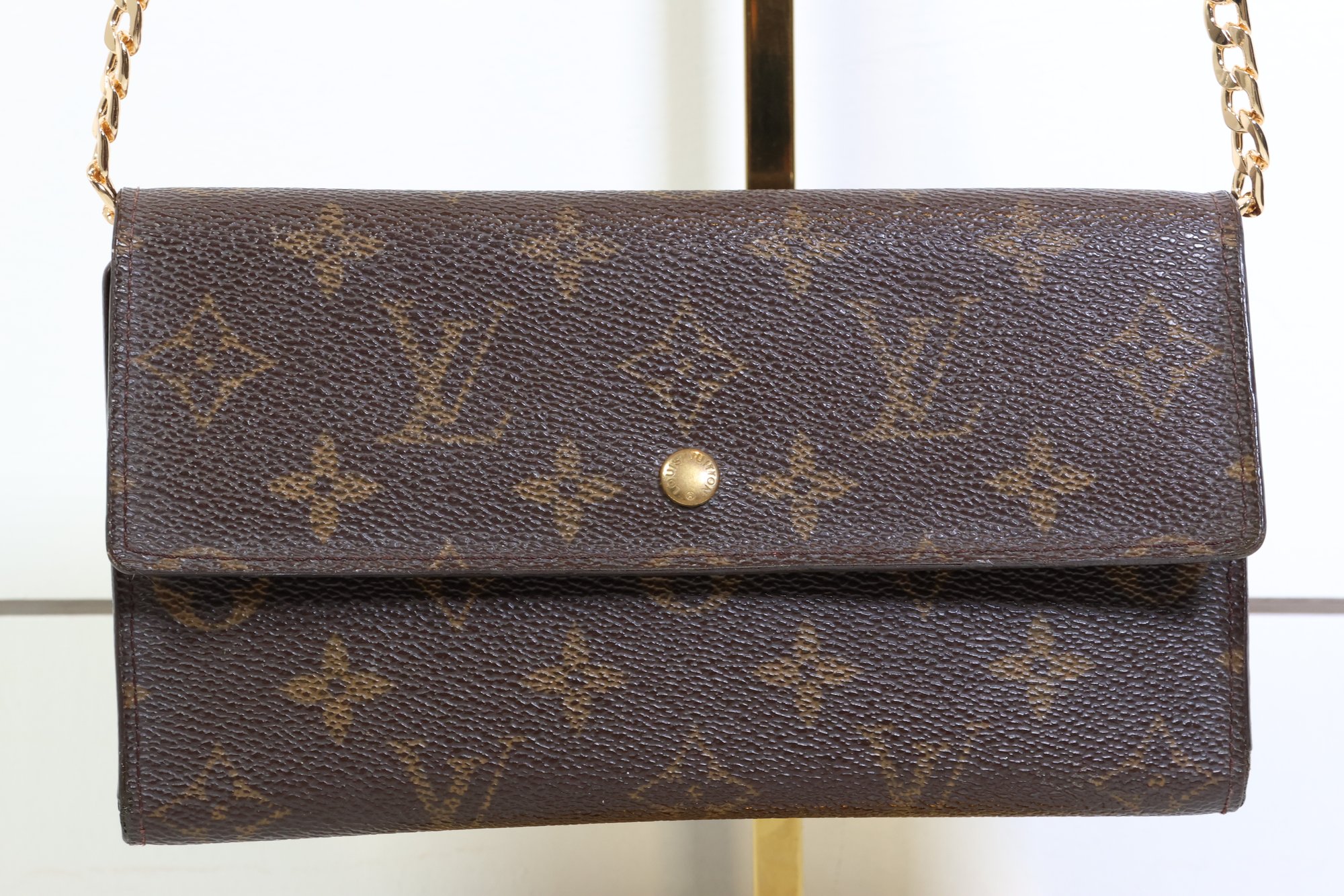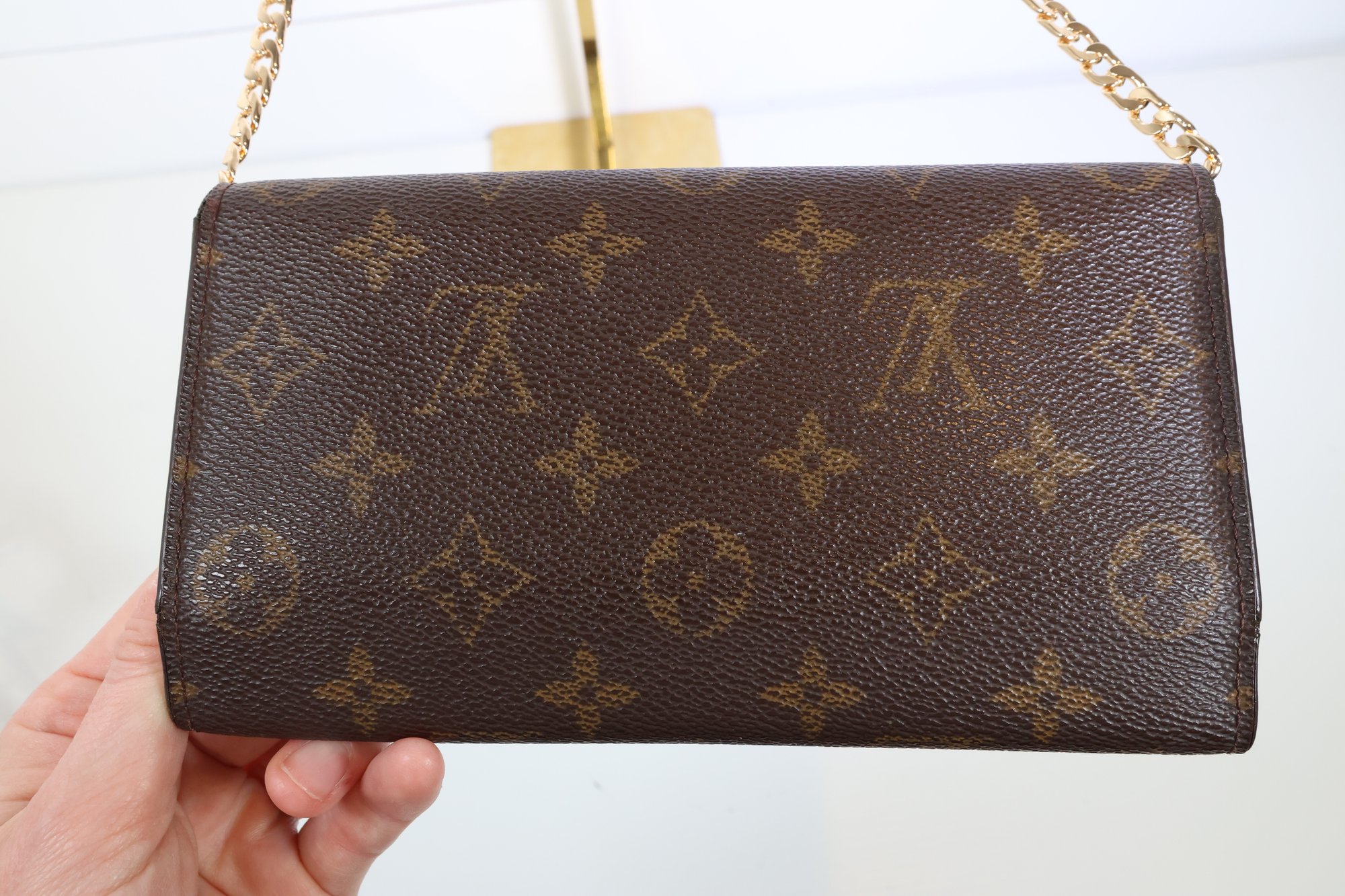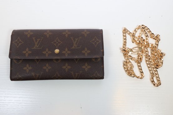 Louis Vuitton Sarah Wallet In The Monogram Canvas Leather With A Gold-tone Chain